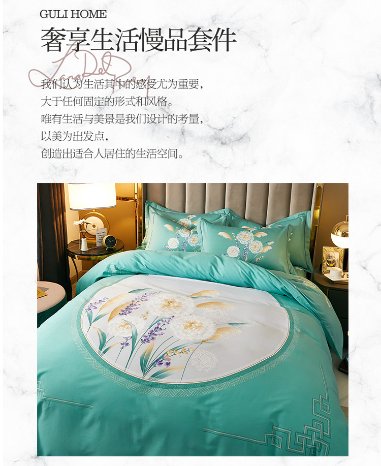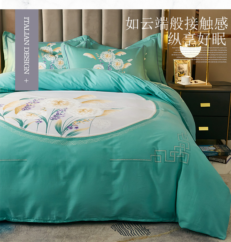 (总)雲归梦 2021新款全棉生态磨毛刺绣四件套,慕思-橙色,慕思-粉紫,慕思-灰,慕思-米黄,慕思-青绿,慕思-天蓝