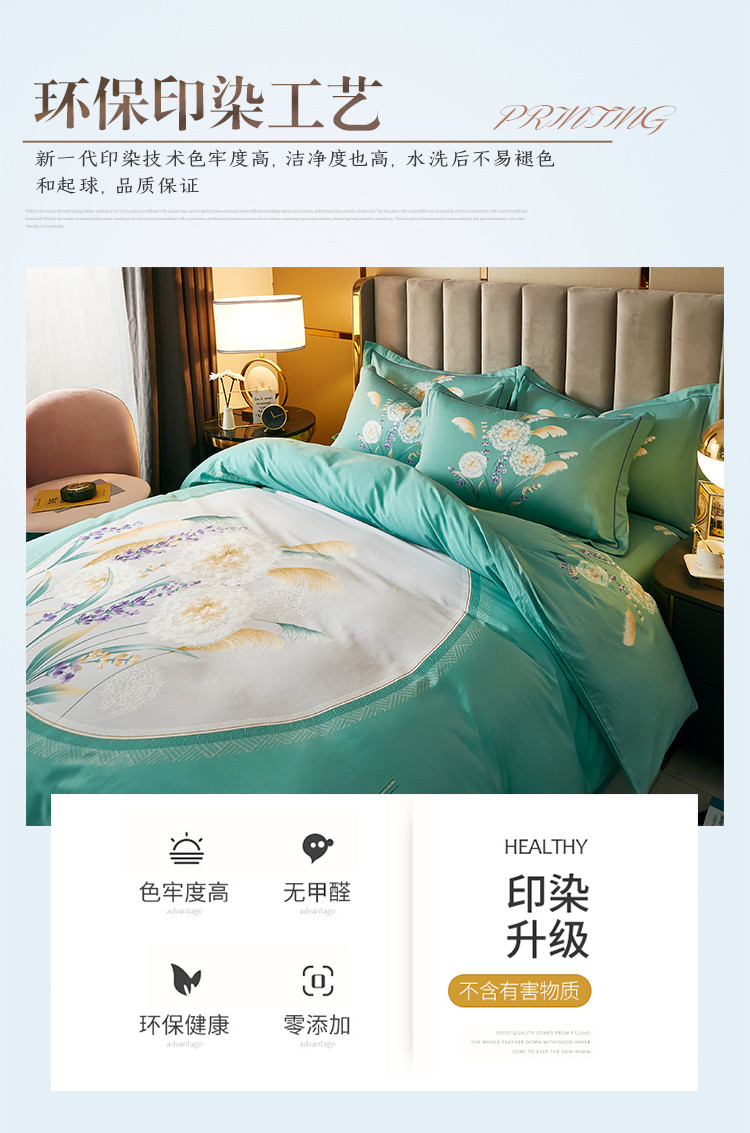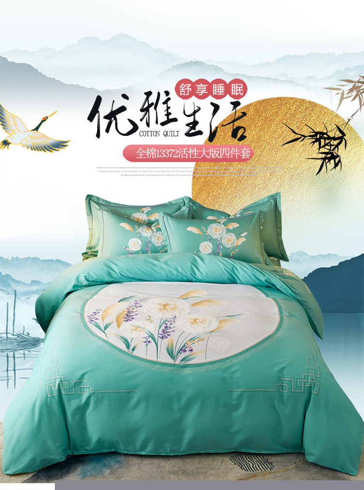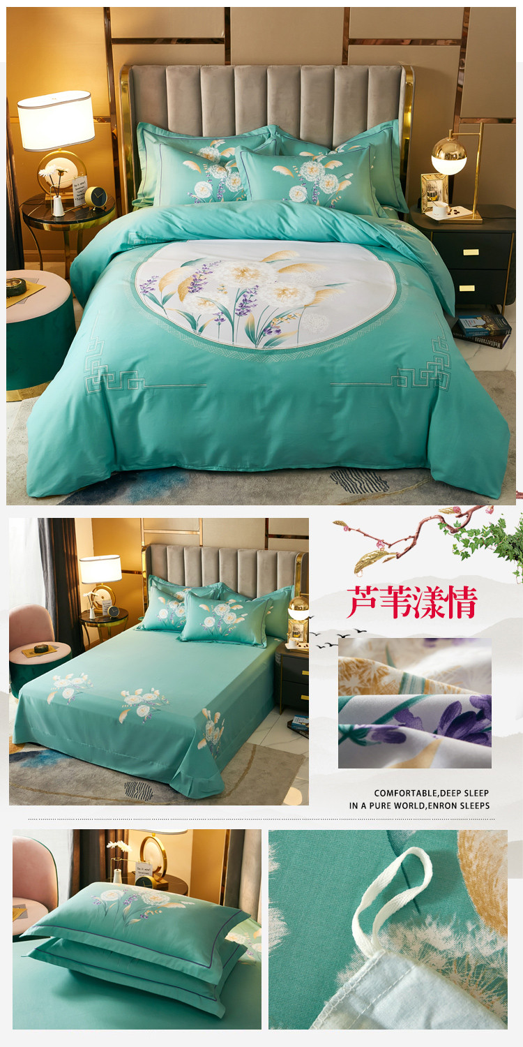 雲归梦 2021全棉大版四件套中国风花卉芦苇漾情