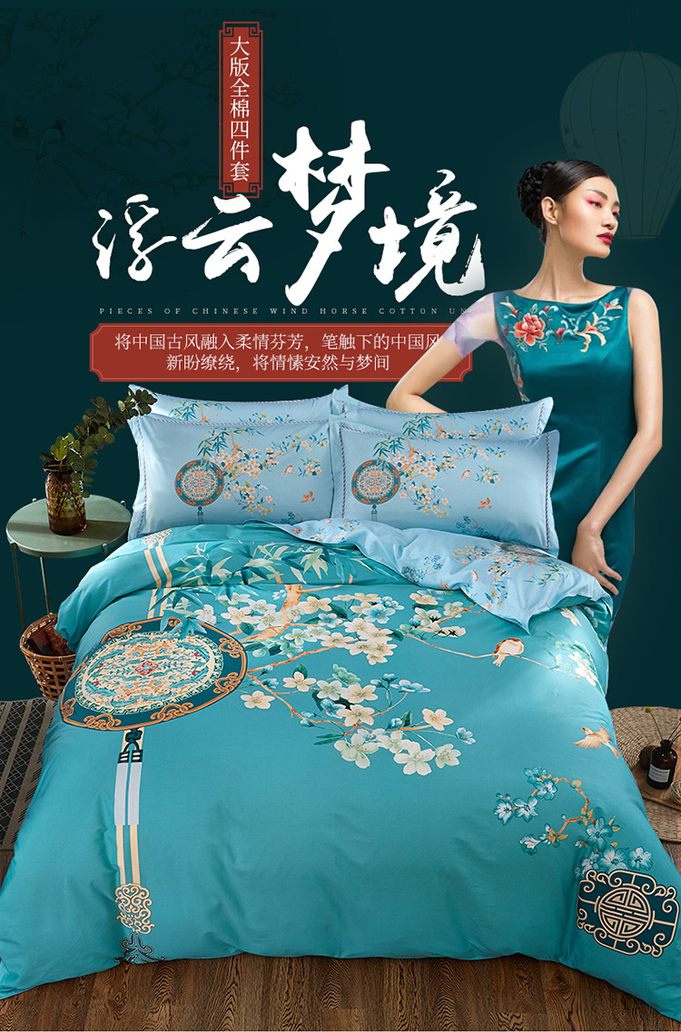 商品名称:雲归梦 2021全棉大版四件套中国风花卉 竹林风
