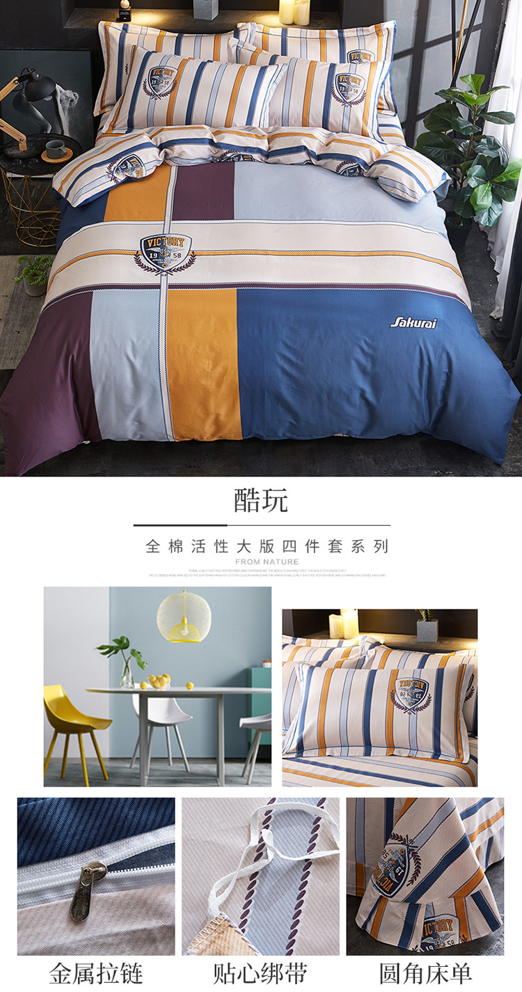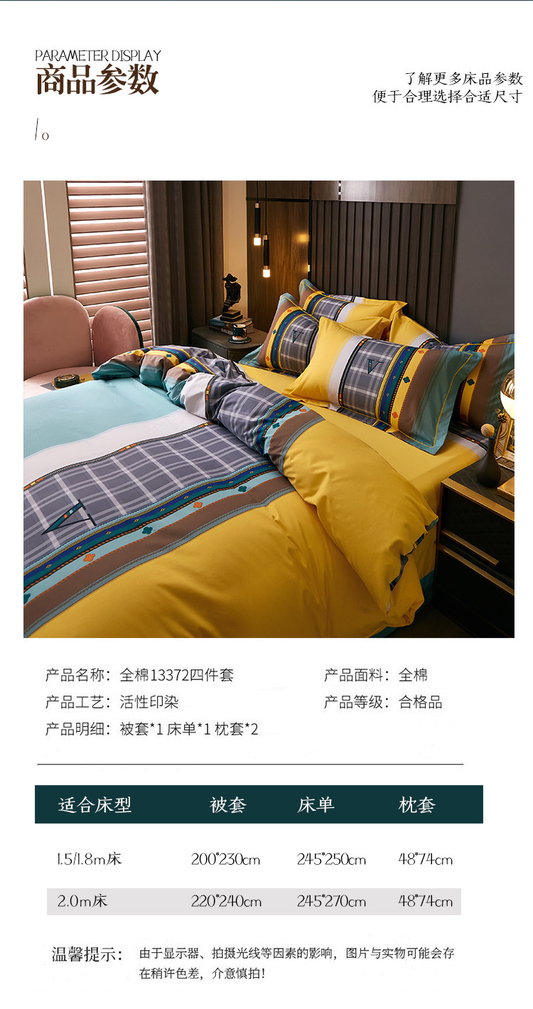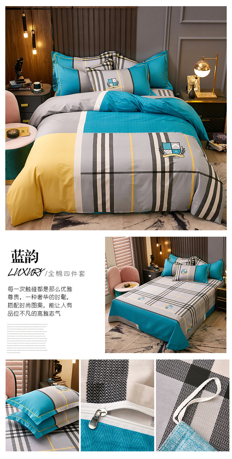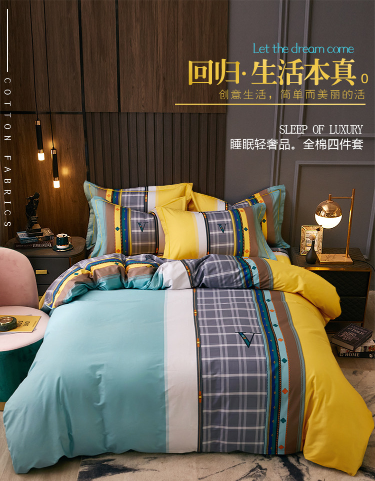 商品名称:(总)雲归梦 2021全棉大版四件套休闲格条系列