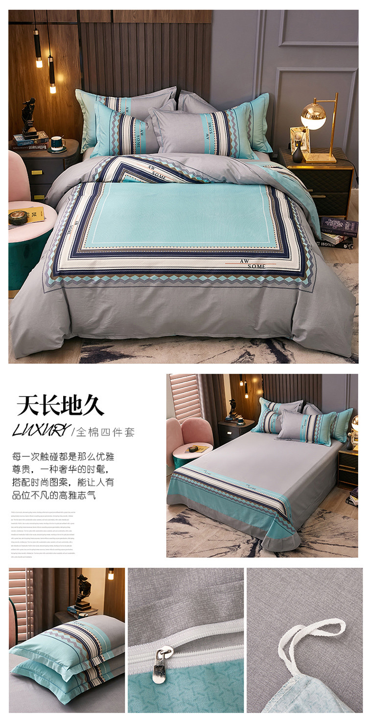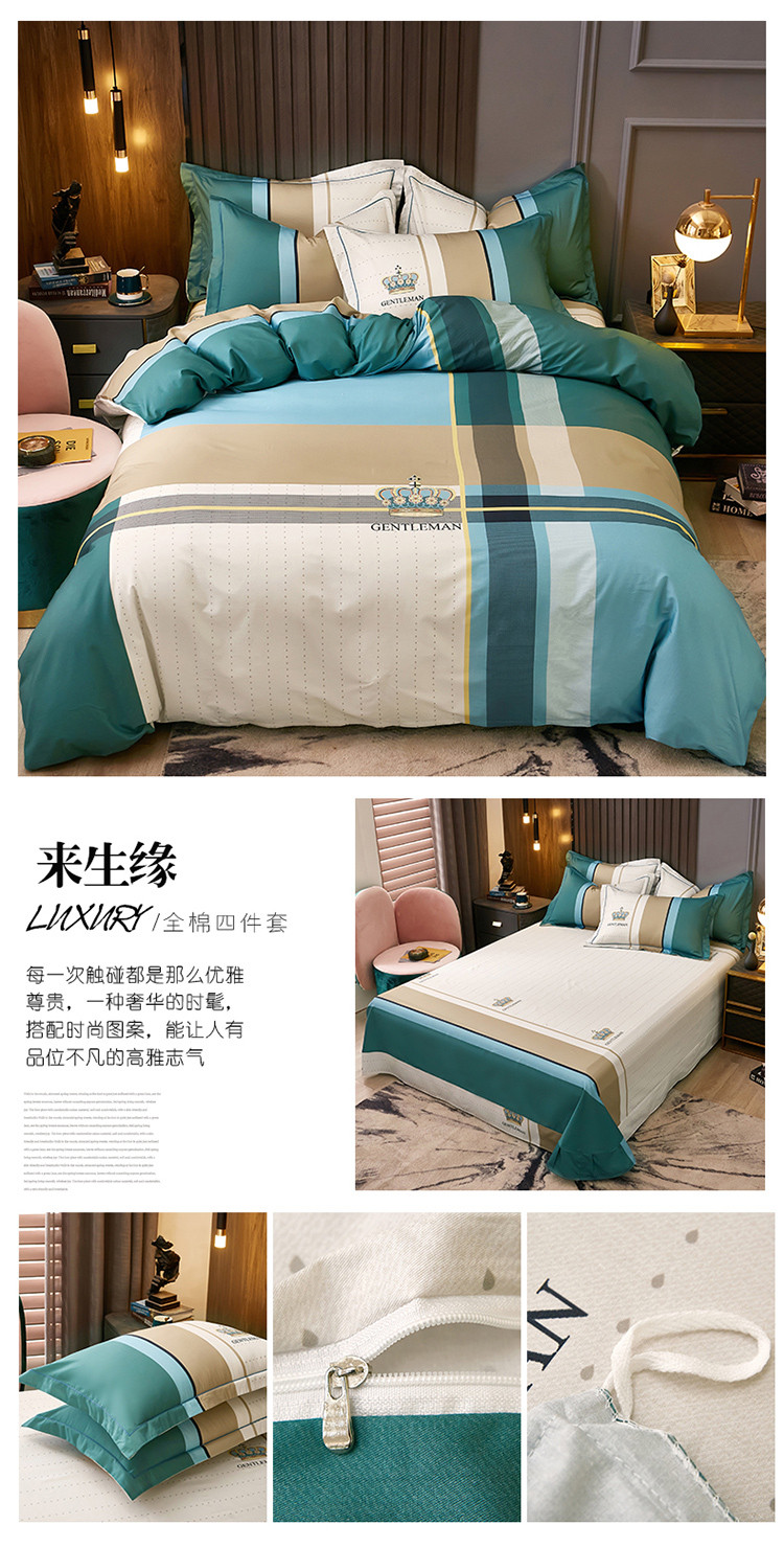 (总)雲归梦 2021全棉大版四件套休闲格条系列