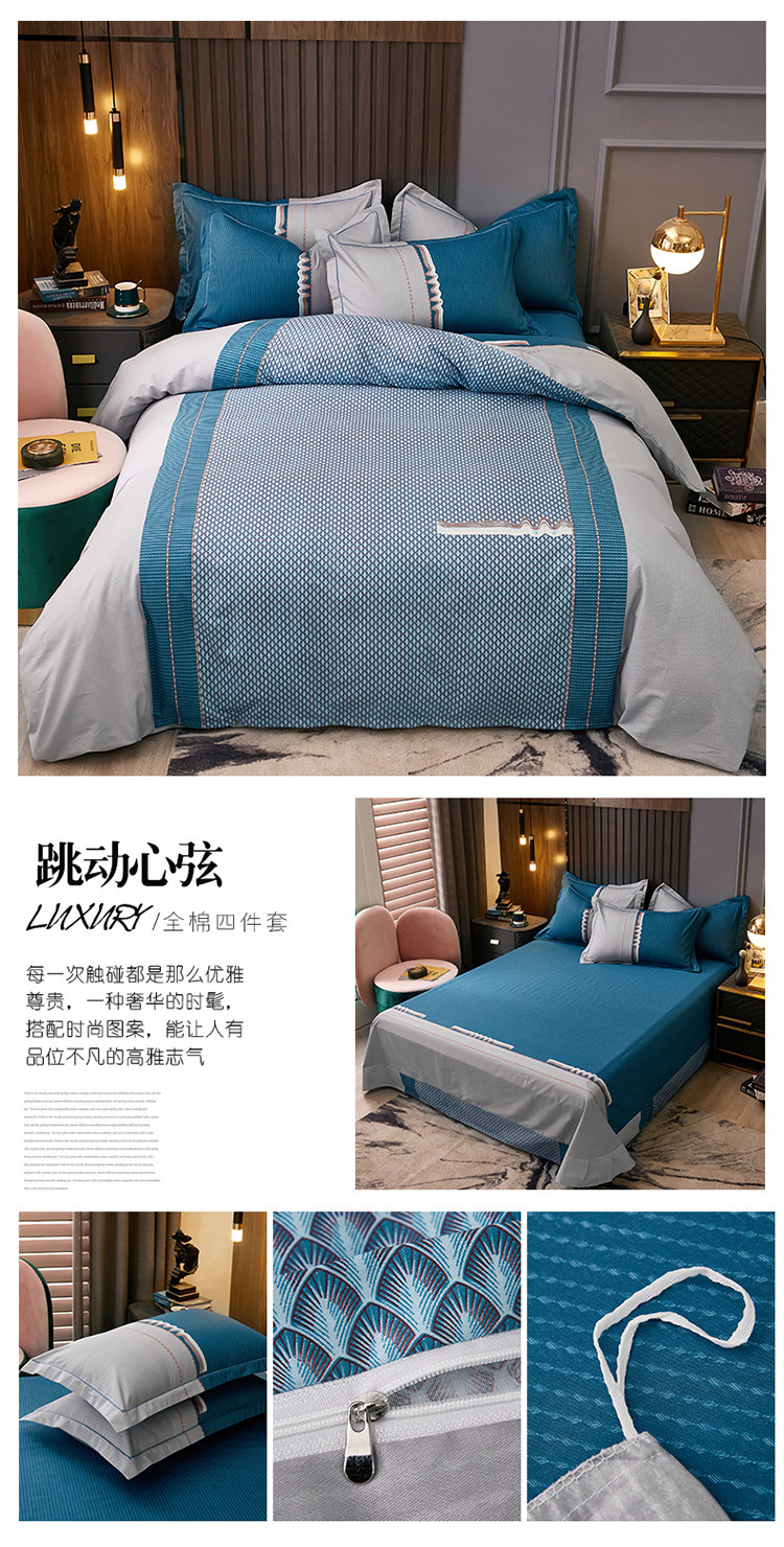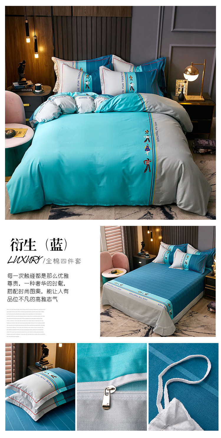 (总)雲归梦 2021新款全棉生态磨毛刺绣四件套,慕思-橙色,慕思-粉紫,慕思-灰,慕思-米黄,慕思-青绿,慕思-天蓝