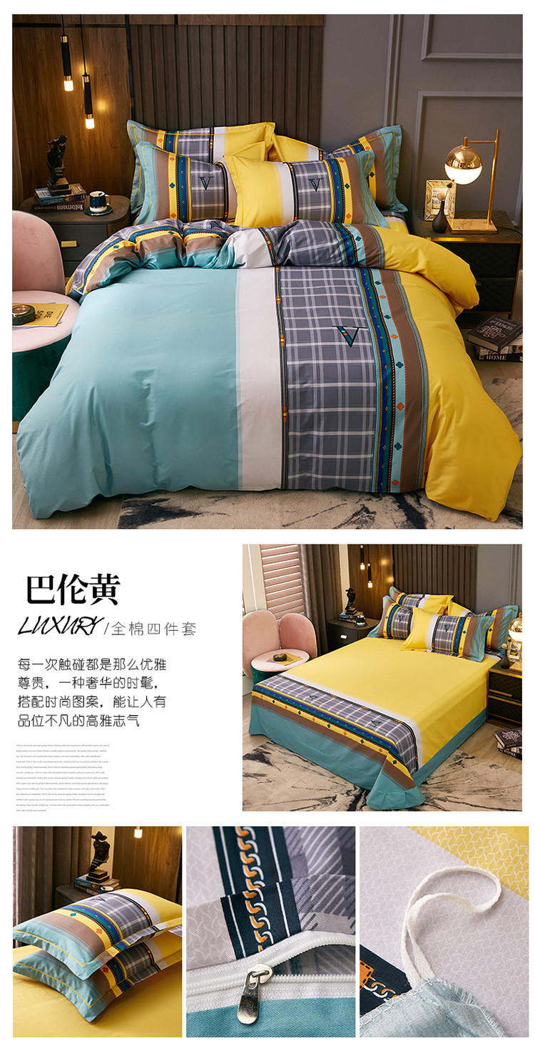 (总)雲归梦2022年新款加厚全棉大版四件套第二批-格条卡通,艾洛依-咖,巴特罗-粉,潮酷熊-咖,幻城-黄,几何空间-灰,杰罗-桔,卡尔玛-黄,兰卡斯-兰,茉伯妮-兰,莫妮卡-粉,趣萌熊-黄,森旅小鹿,天空之城,甜丫丫-桔,潮酷熊蓝