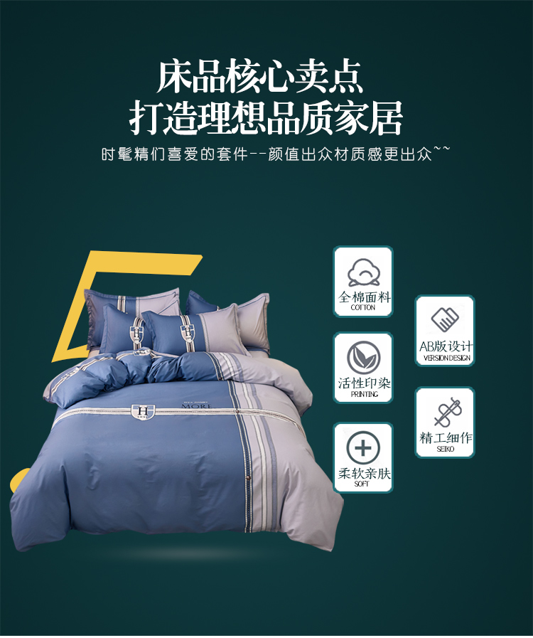 商品名称:雲归梦 2021全棉大版四件套休闲格条系列 马德里