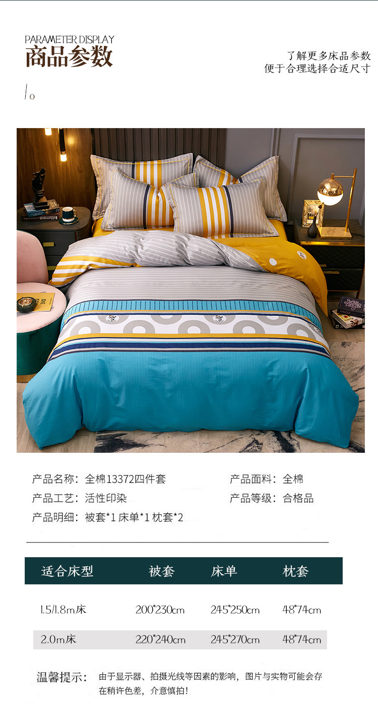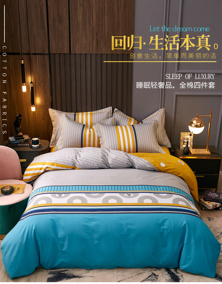 商品名称:雲归梦 2021全棉大版四件套休闲格条系列 寻彩(兰)