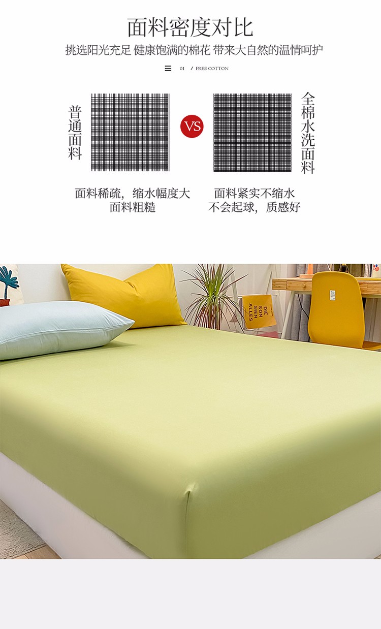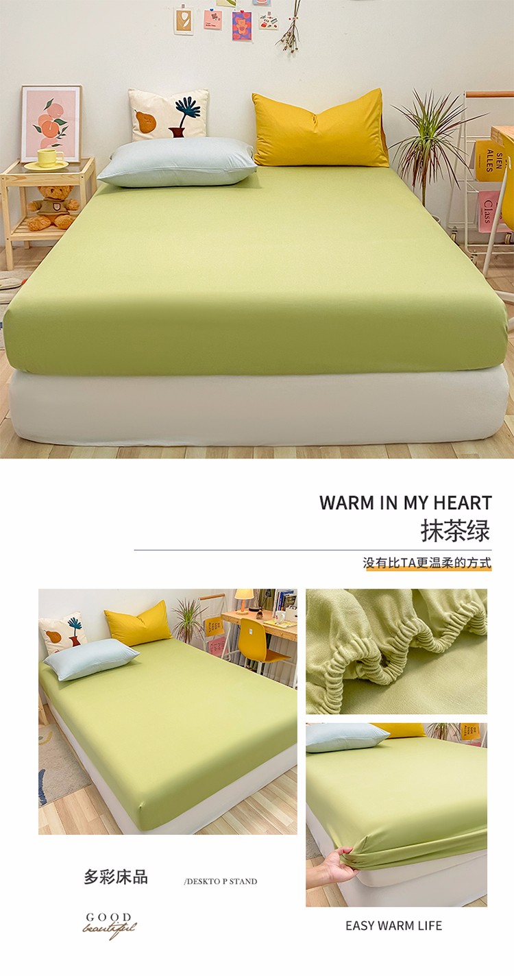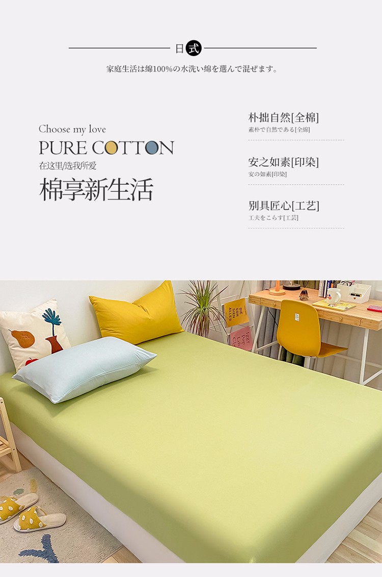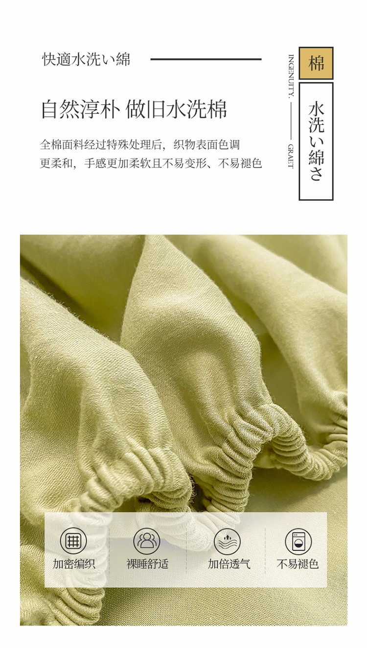 蓝巢 2021新款全棉水洗棉混搭款单床笠抹茶绿
