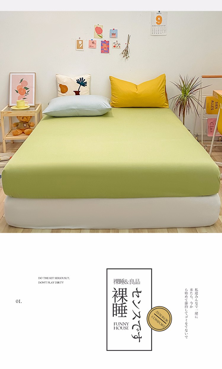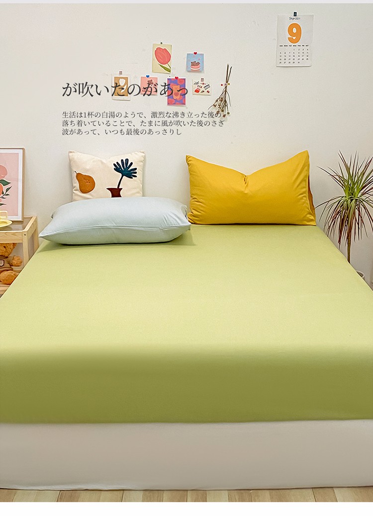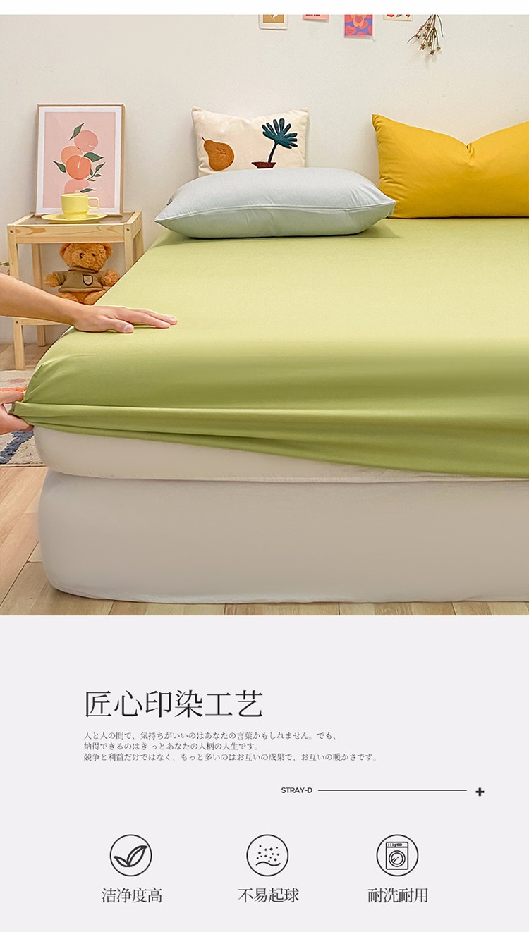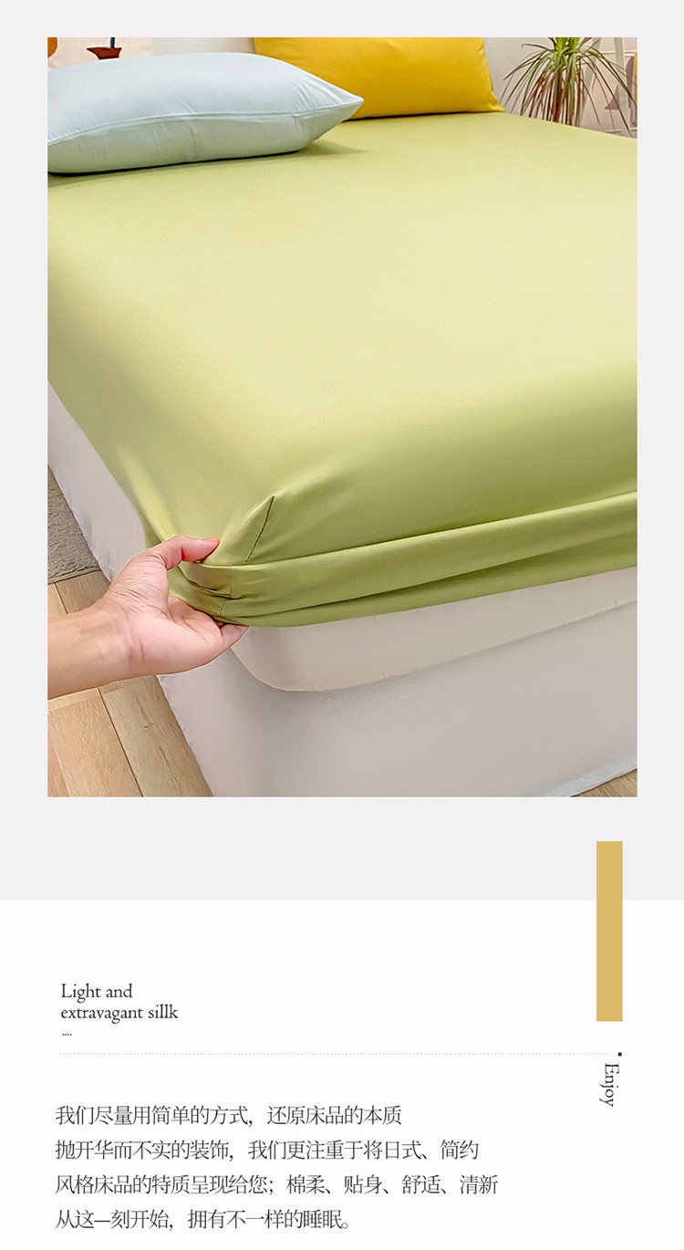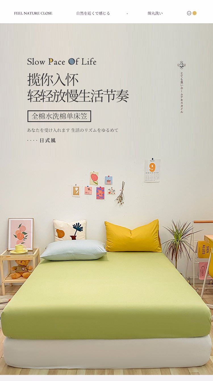 蓝巢 2021新款全棉水洗棉混搭款单床笠抹茶绿