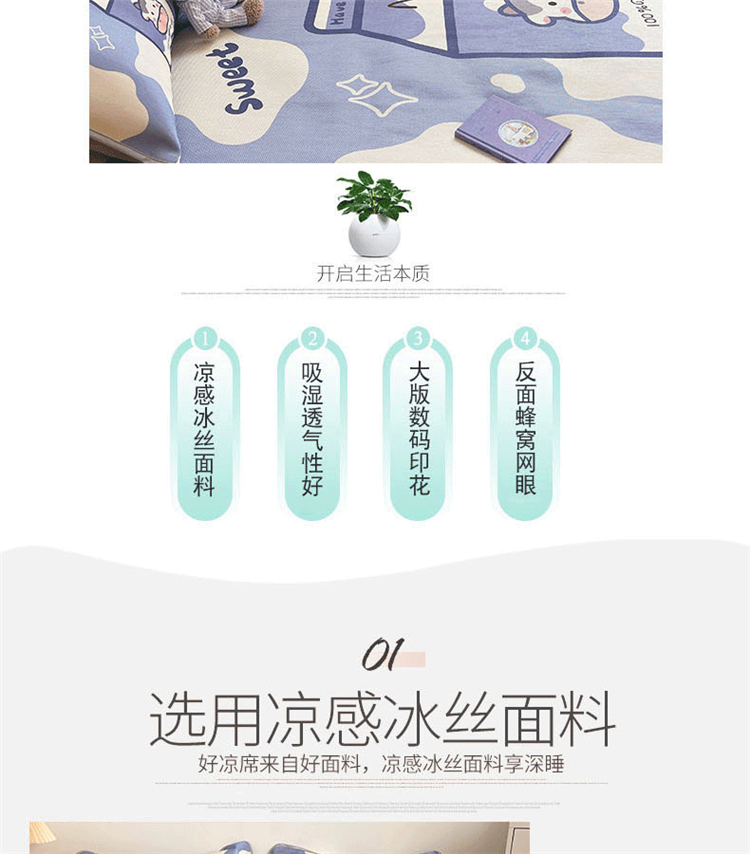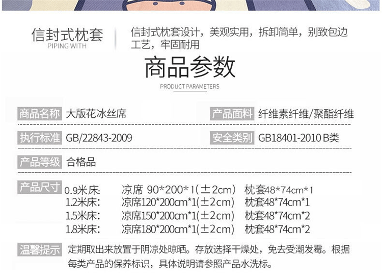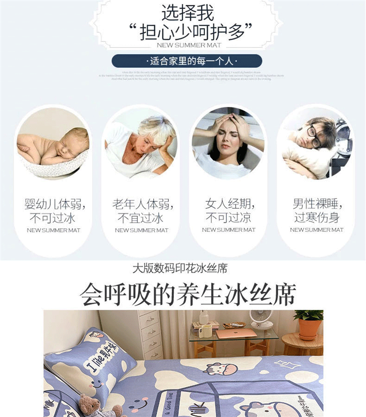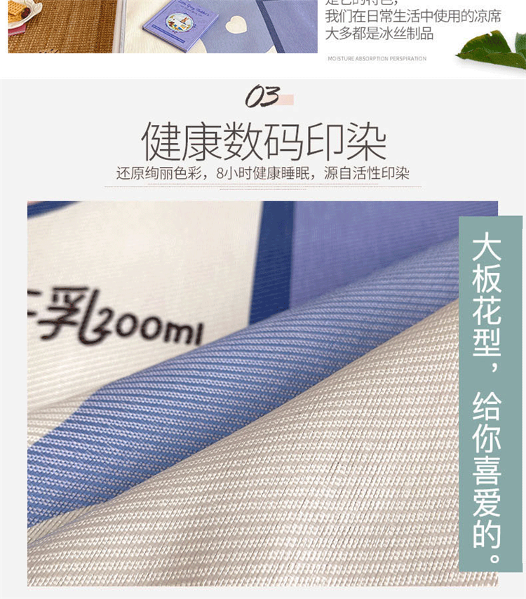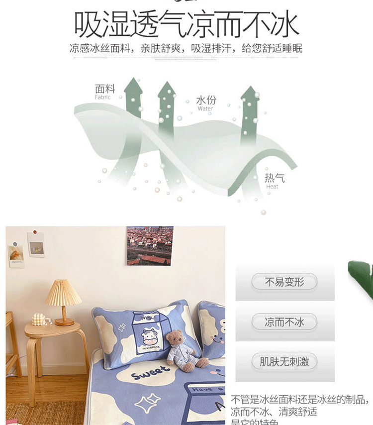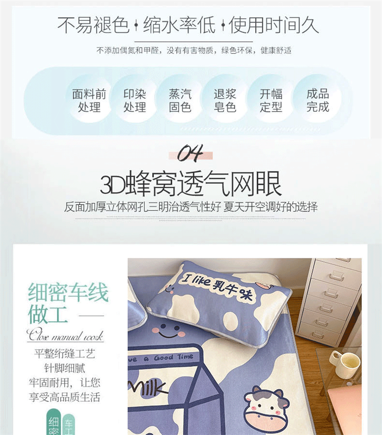 商品名称:川悦生活 直播供货2021新款小清新大版冰丝席卡通凉席三件套美味牛乳