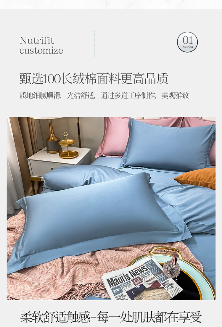 (总)米奈家居 2025新款贴边拼角100支新疆长绒棉四件套-诺拉,冰川蓝,豆蔻紫,落霞粉,奶杏棕,山茶红,松雾灰