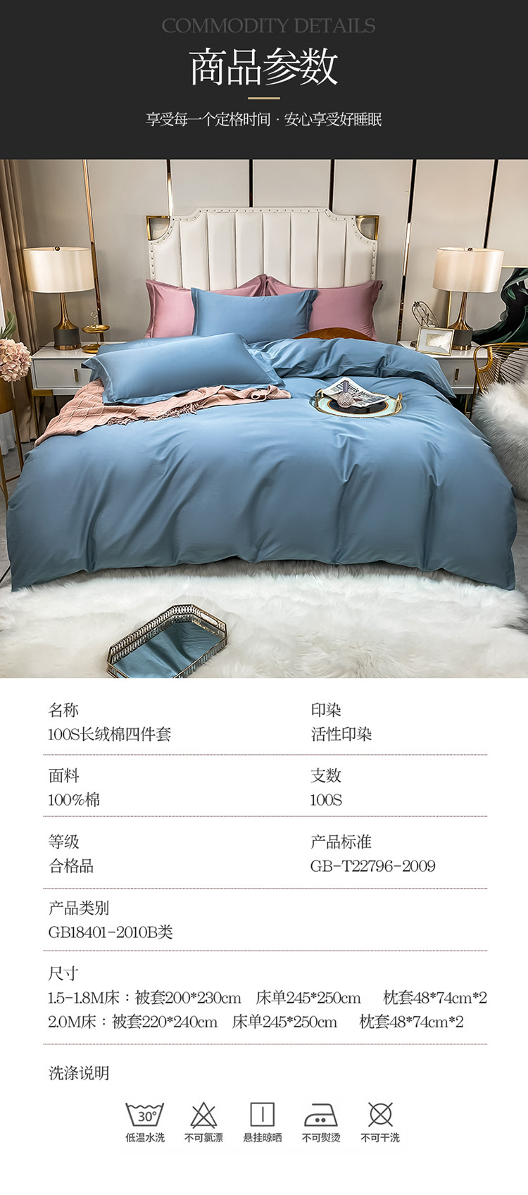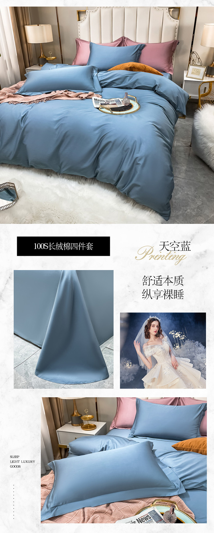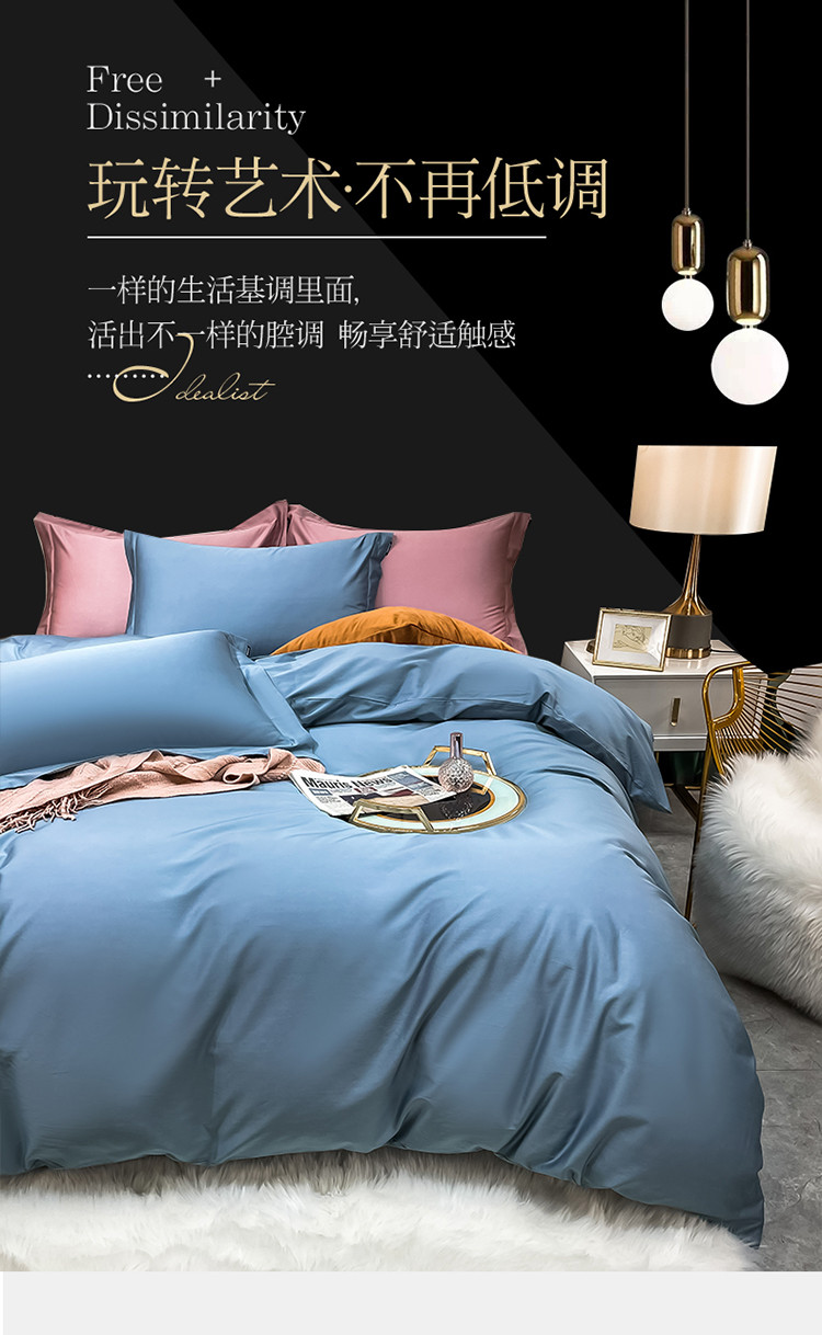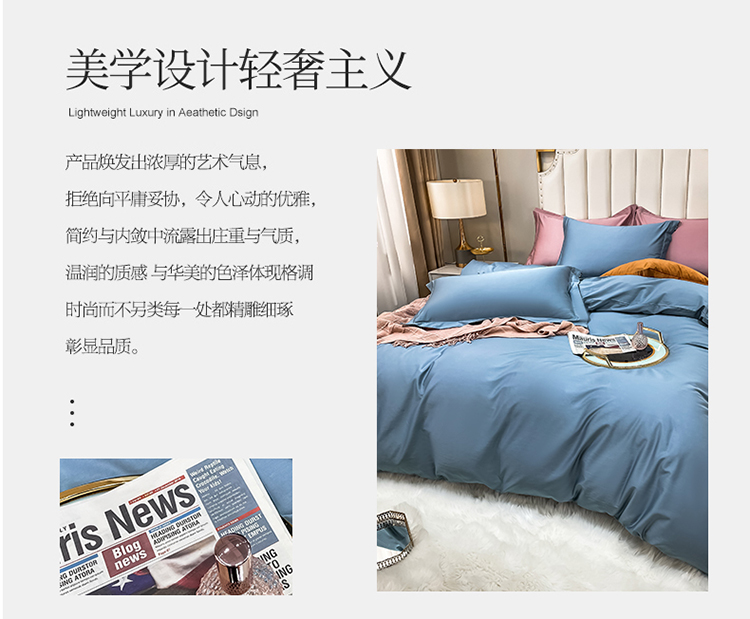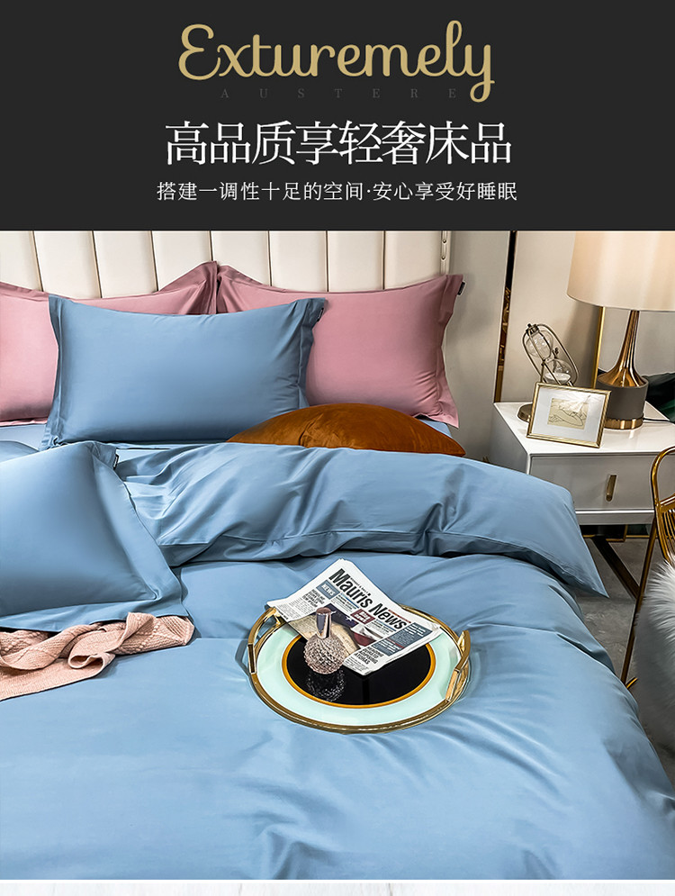 商品名称:米奈 2021新款100S长绒棉纯色四件套卡尔系列 天空蓝