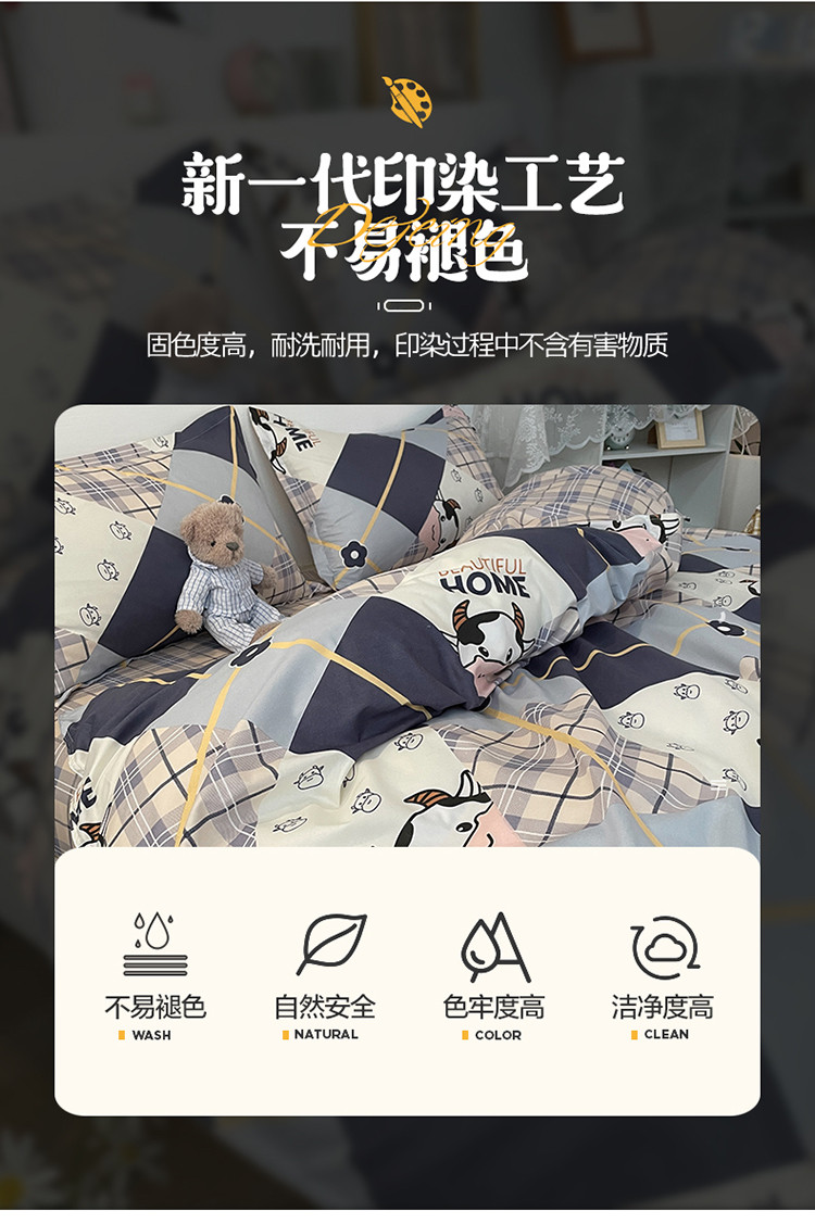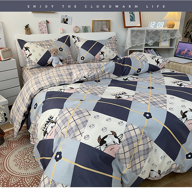 宏源家纺 2022新款芦荟棉四件套 格子牛