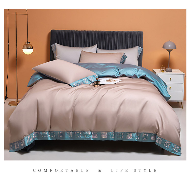 (总)爱缦 新款60支莱赛尔四件套-至真系列,蓝米驼,米白粉,浅紫,玉粉