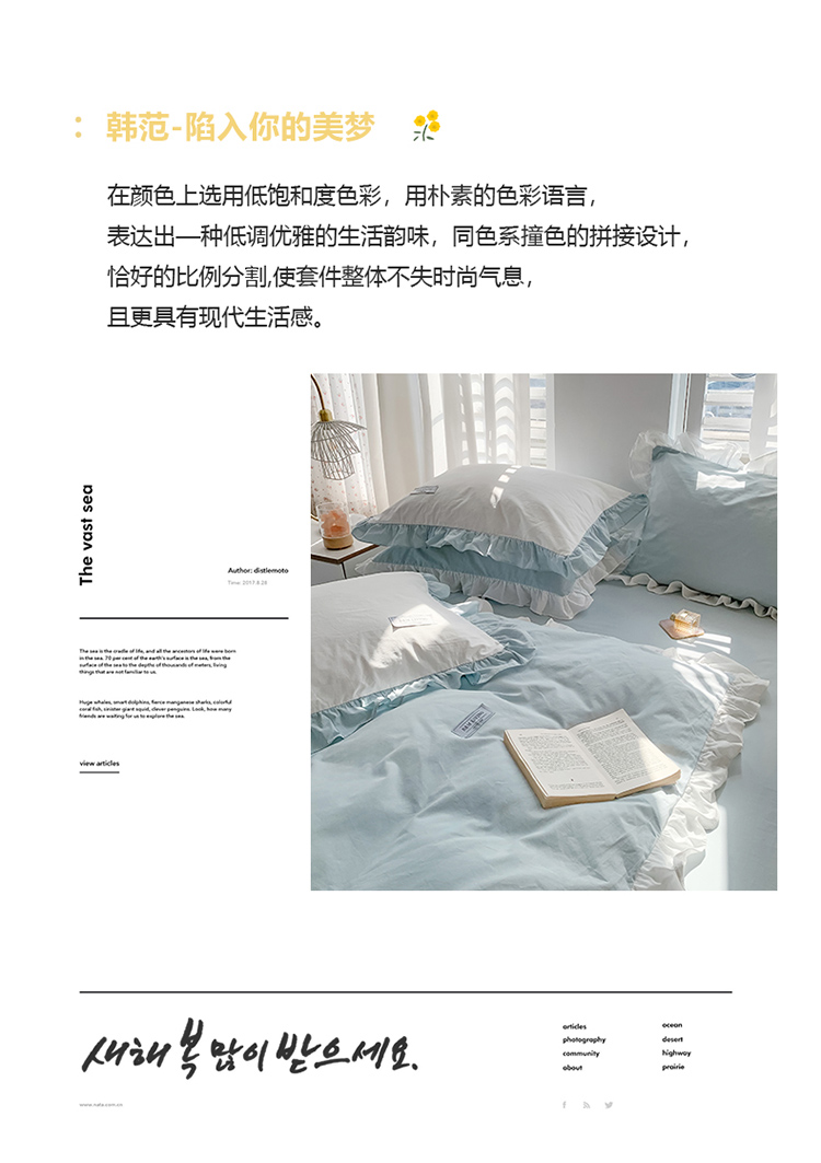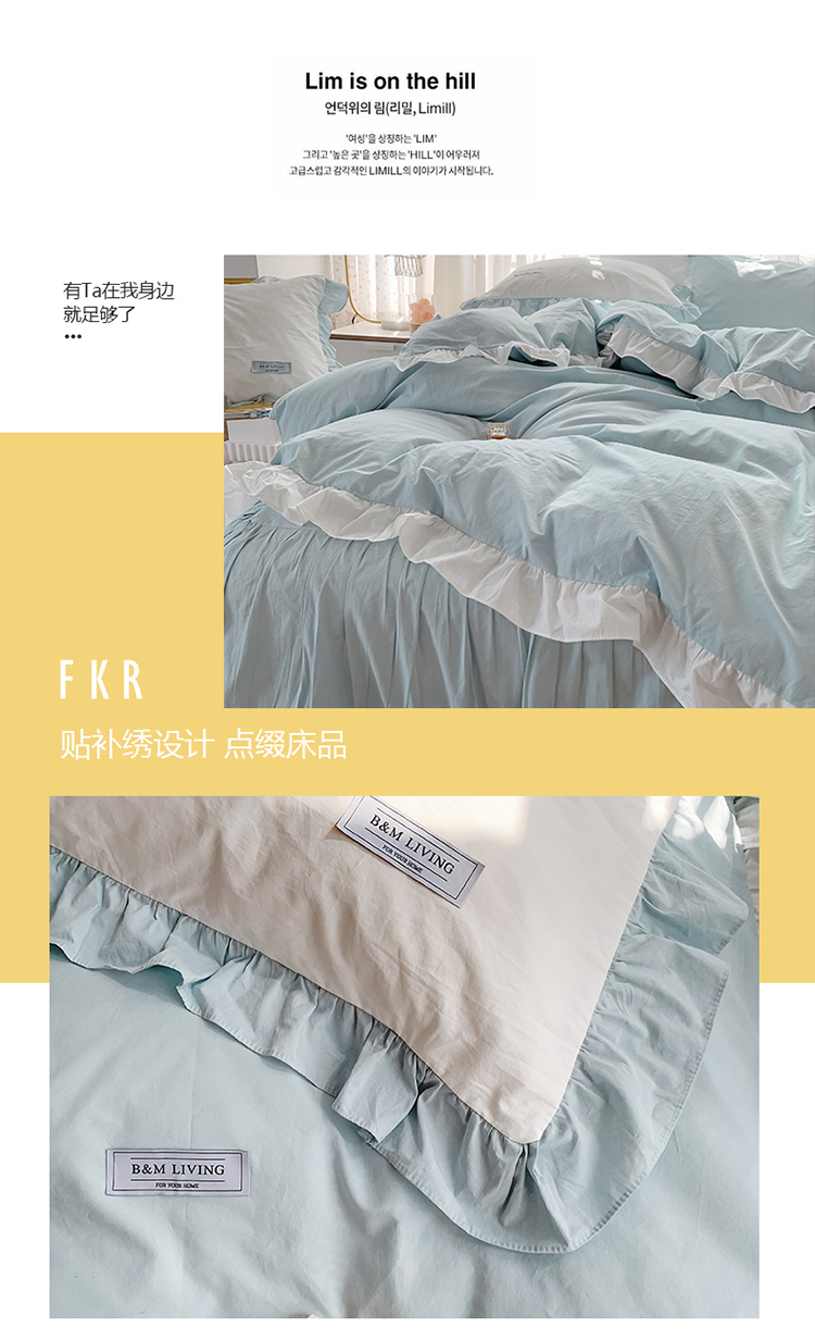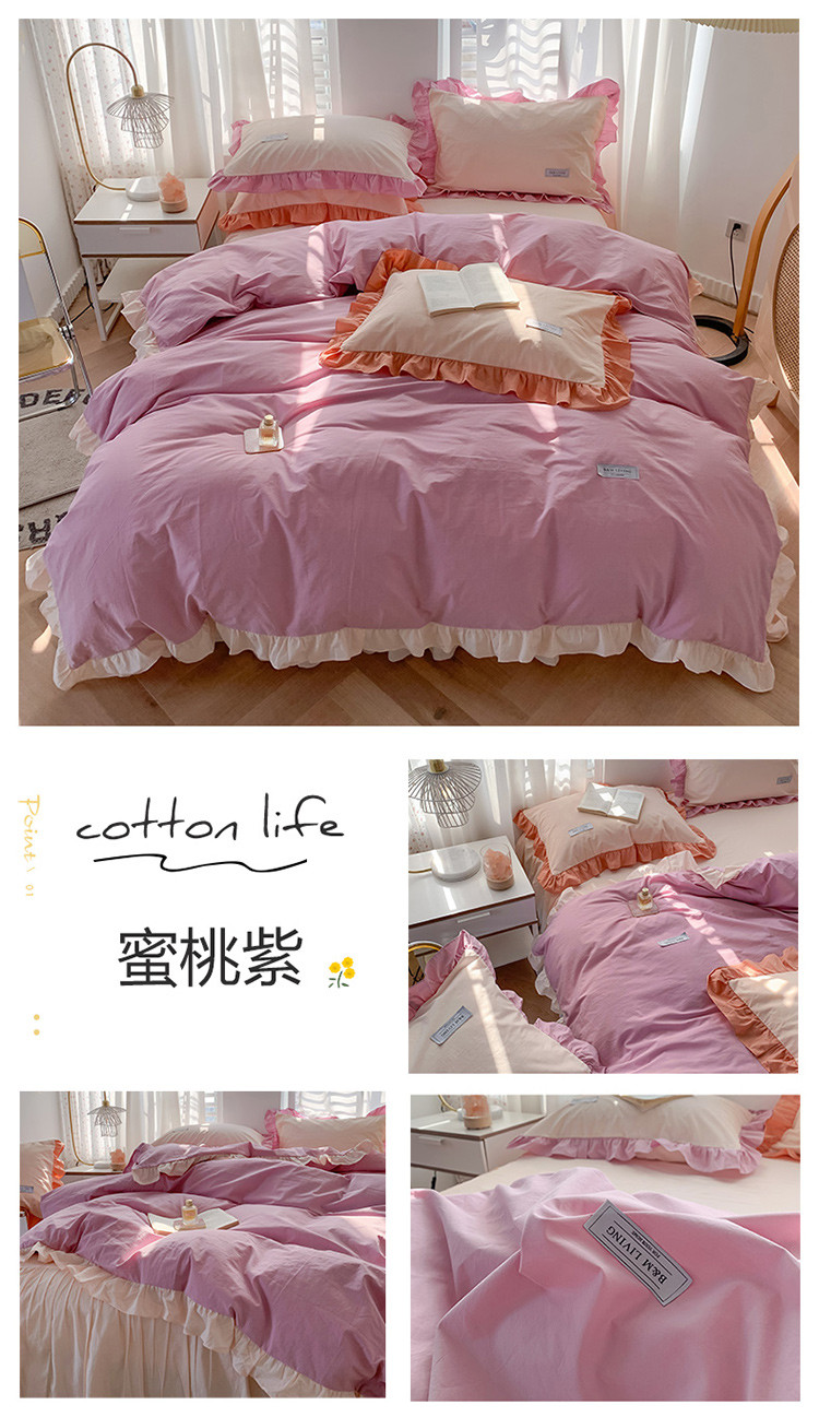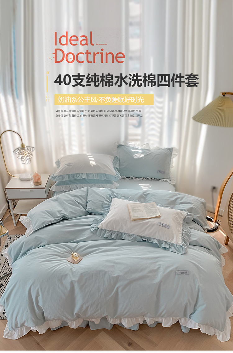 (总)笔墨家居 奶油系公主风撞色40支纯棉水洗棉四件套实拍