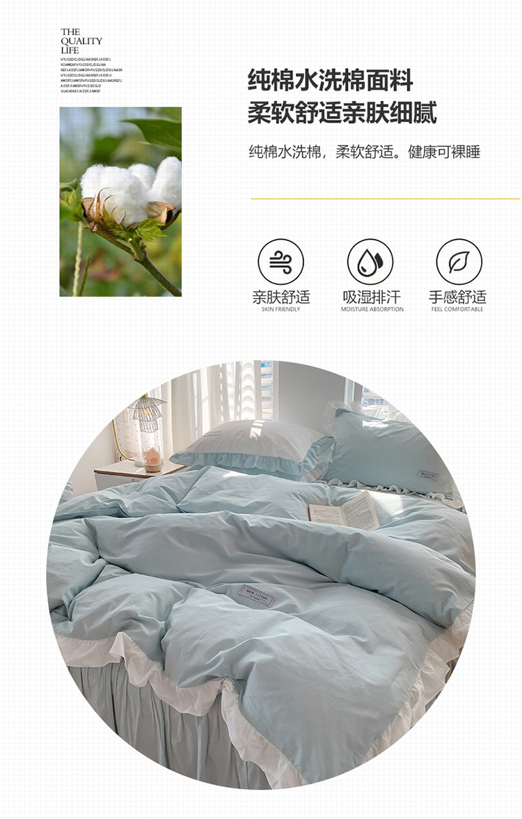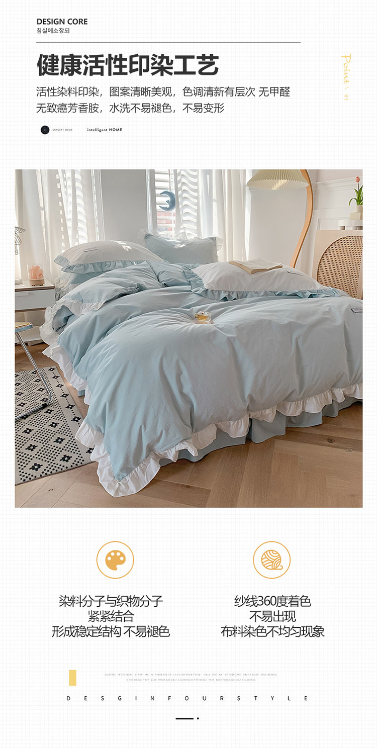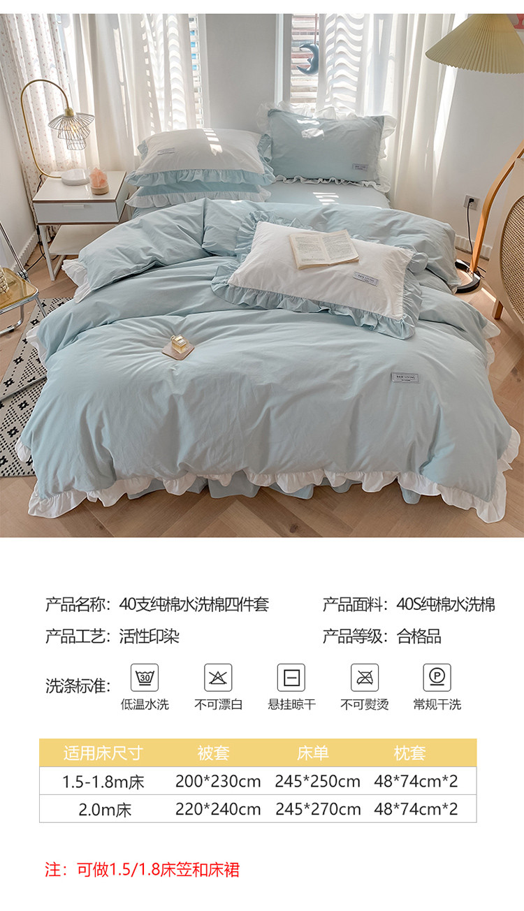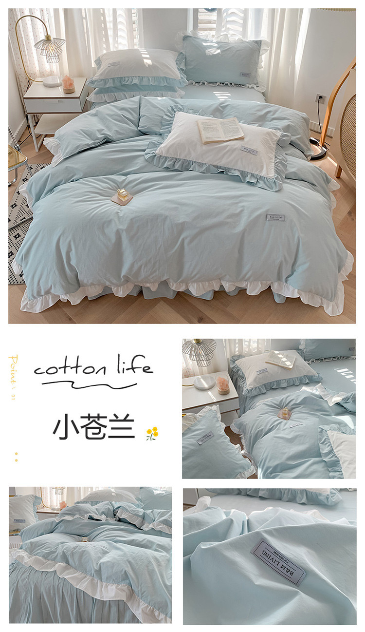 (总)笔墨家居 奶油系公主风撞色40支纯棉水洗棉四件套实拍,小苍兰,莫兰迪,青烟蓝,秋香桔,云朵白