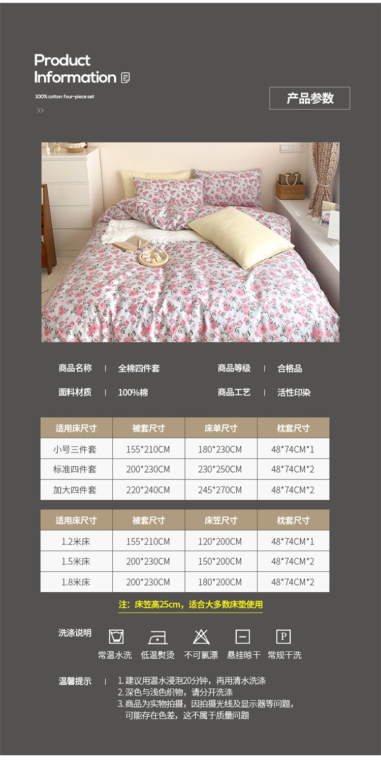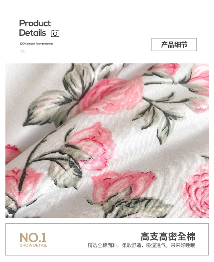 商品名称:窝米 2021新款夏季新品13370全棉活性印花四件套 蓓蕾