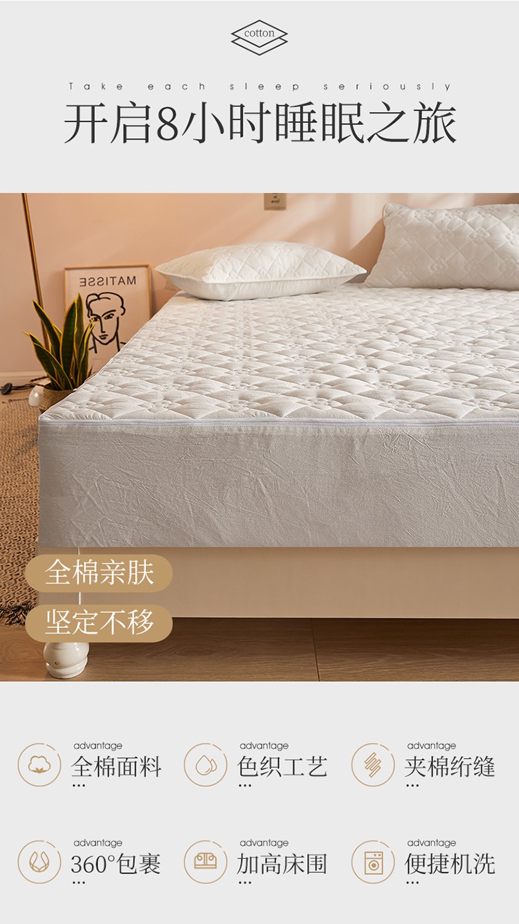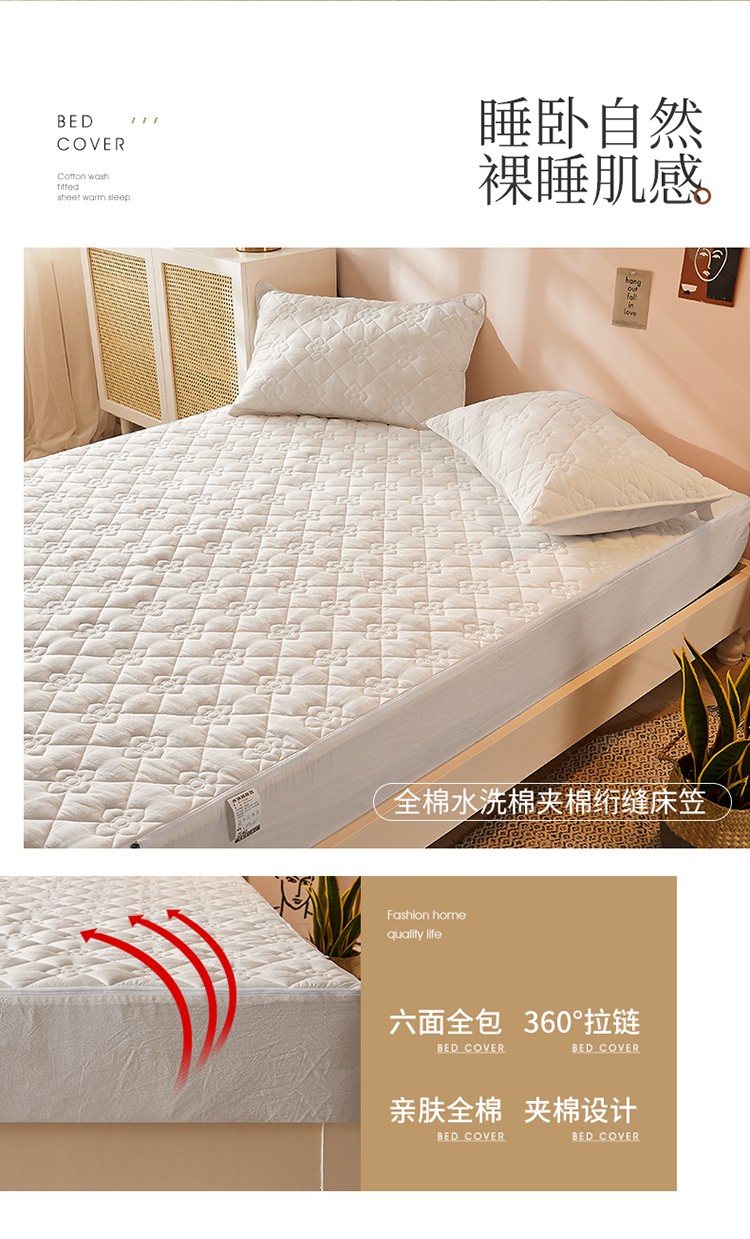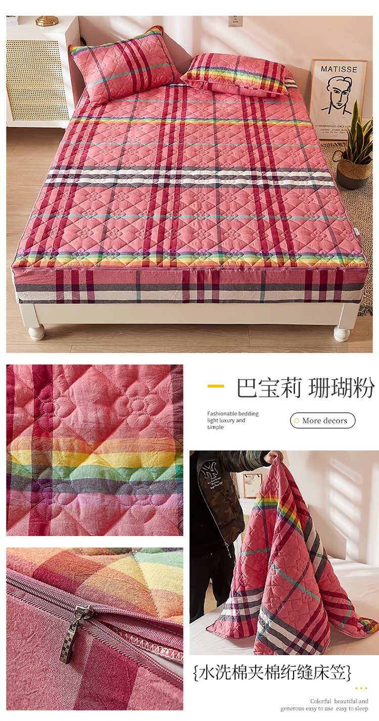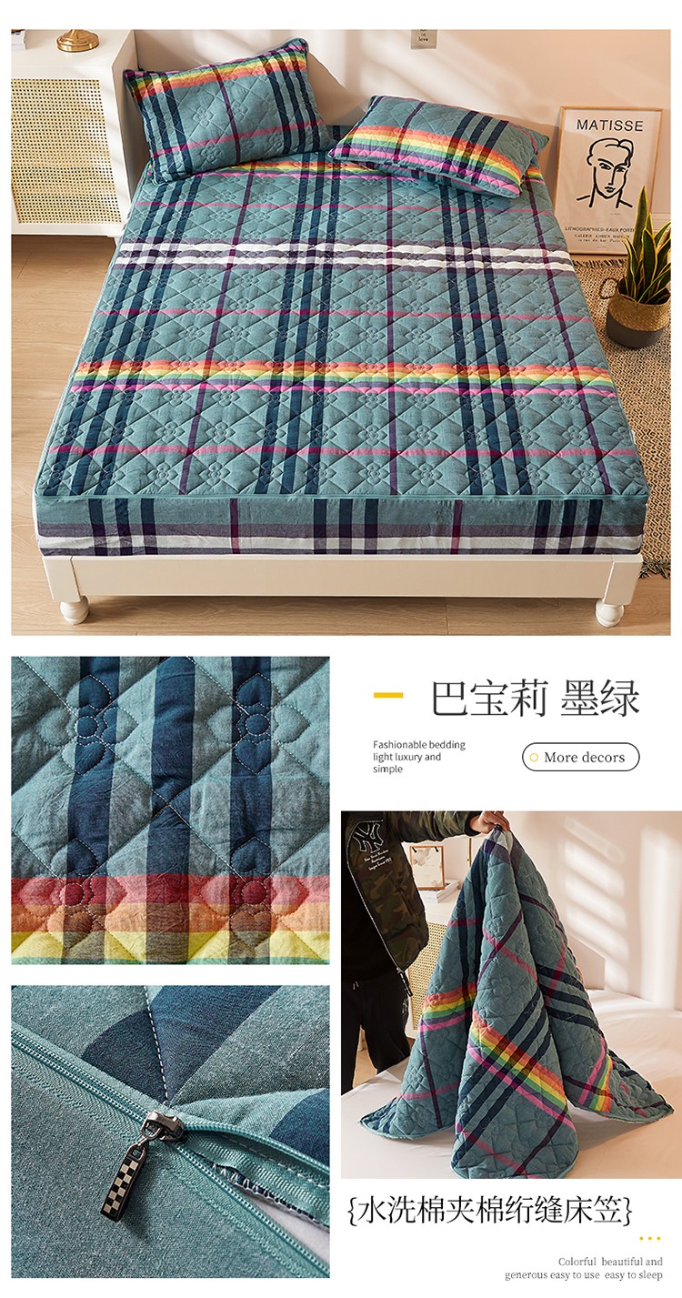 (总)纤雅床笠 2024新款纯棉色织水洗棉夹棉全包床笠