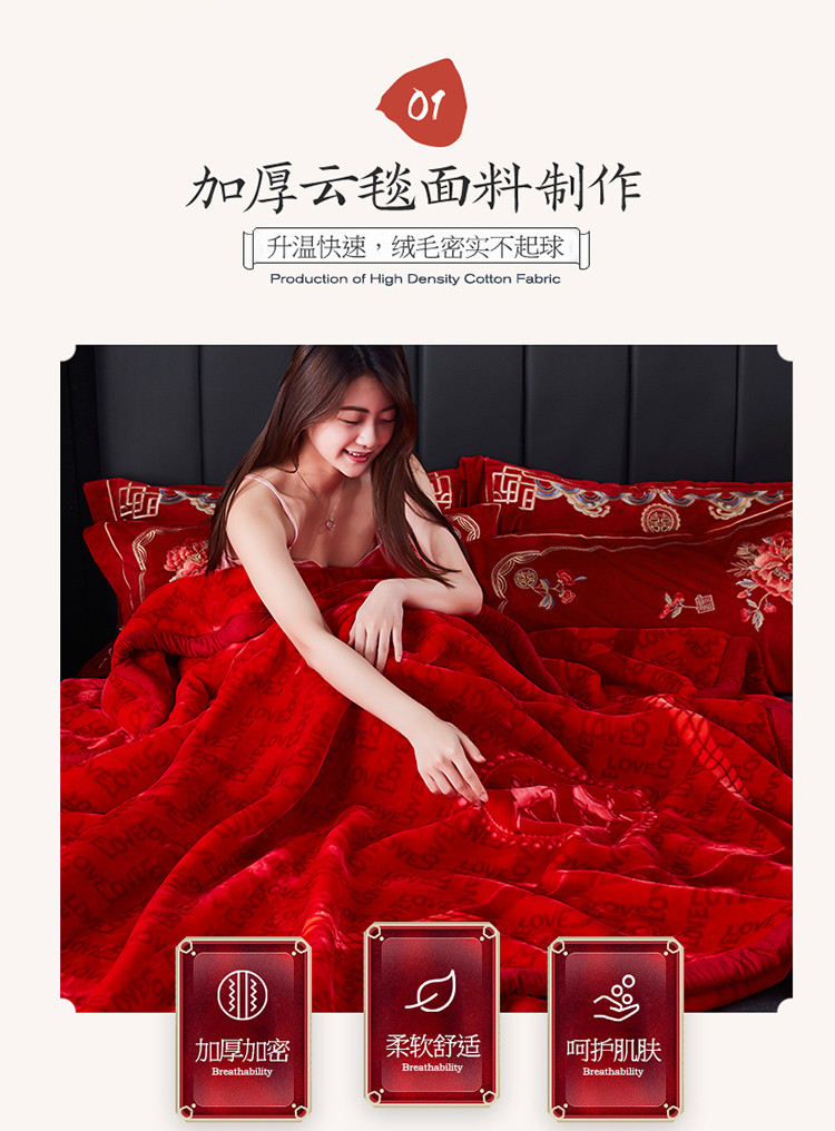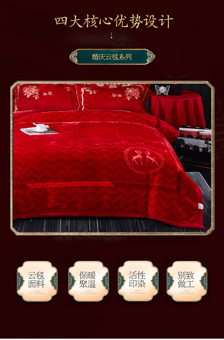 凯轩毛毛毯毯子 2024新款婚庆云毛毯毯子 浪漫情缘