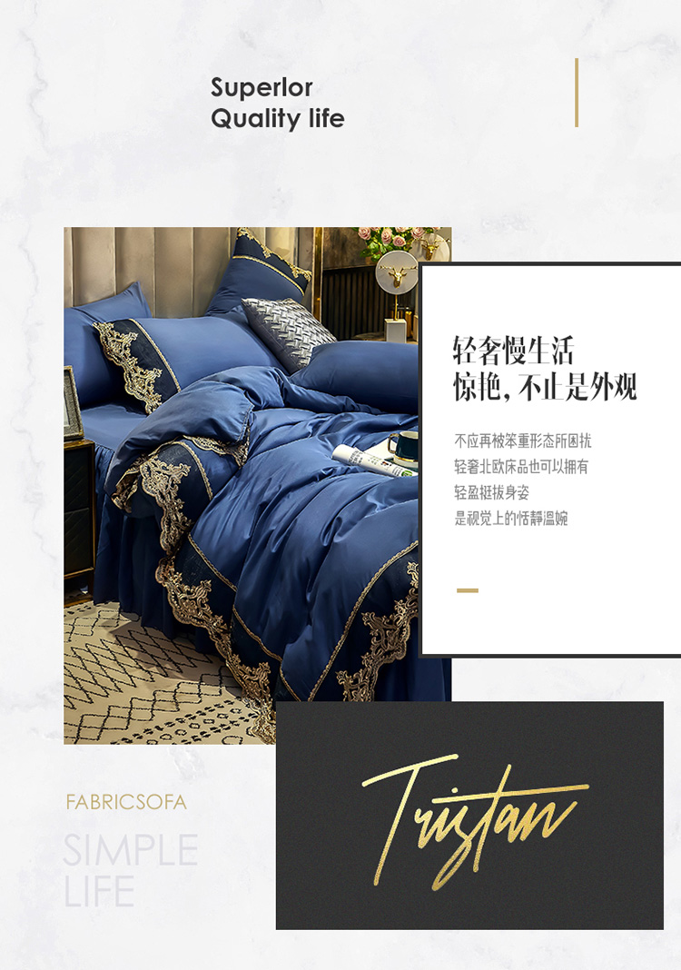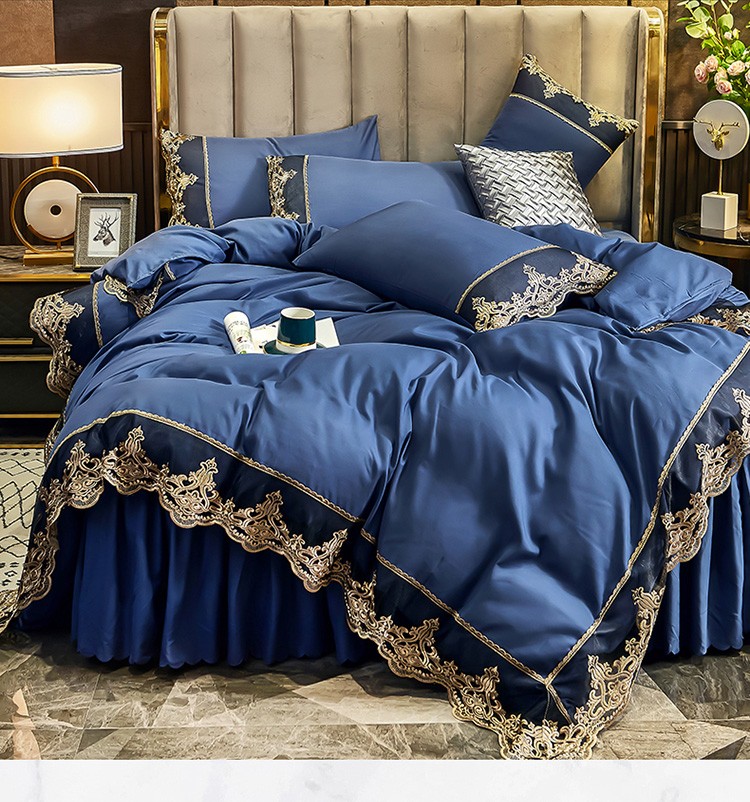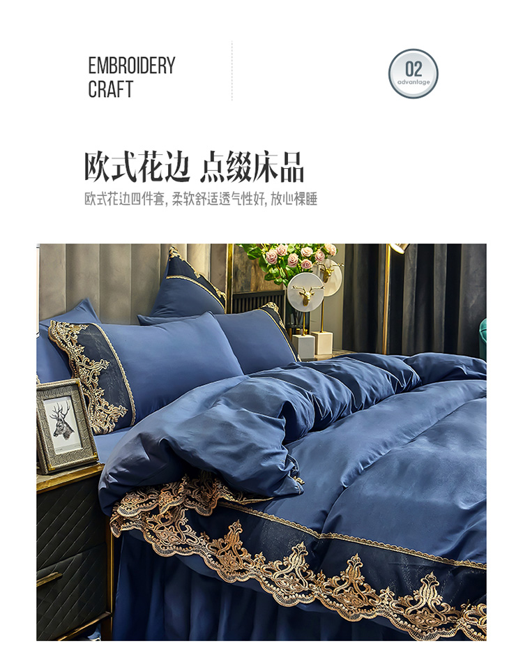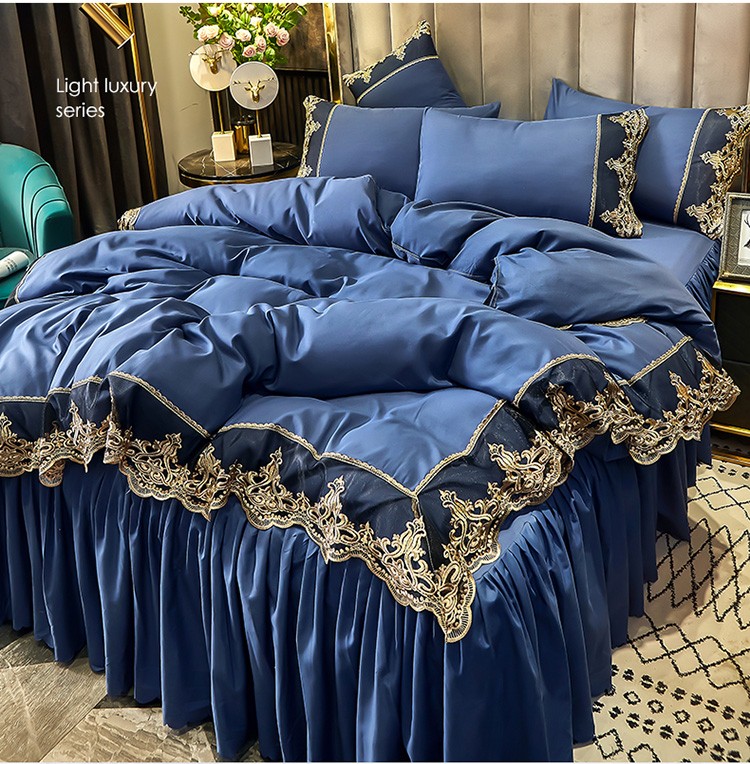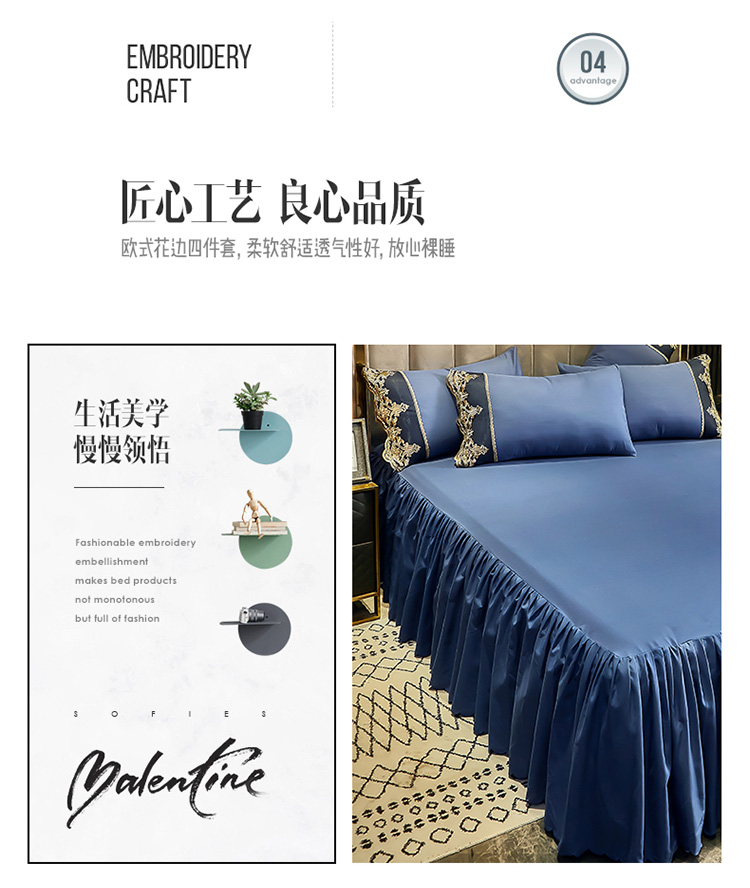商品名称:莉莉安 2025新款亲肤磨毛欧式花边床裙四件套 莫娜-梦之蓝