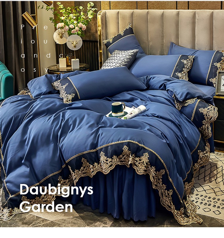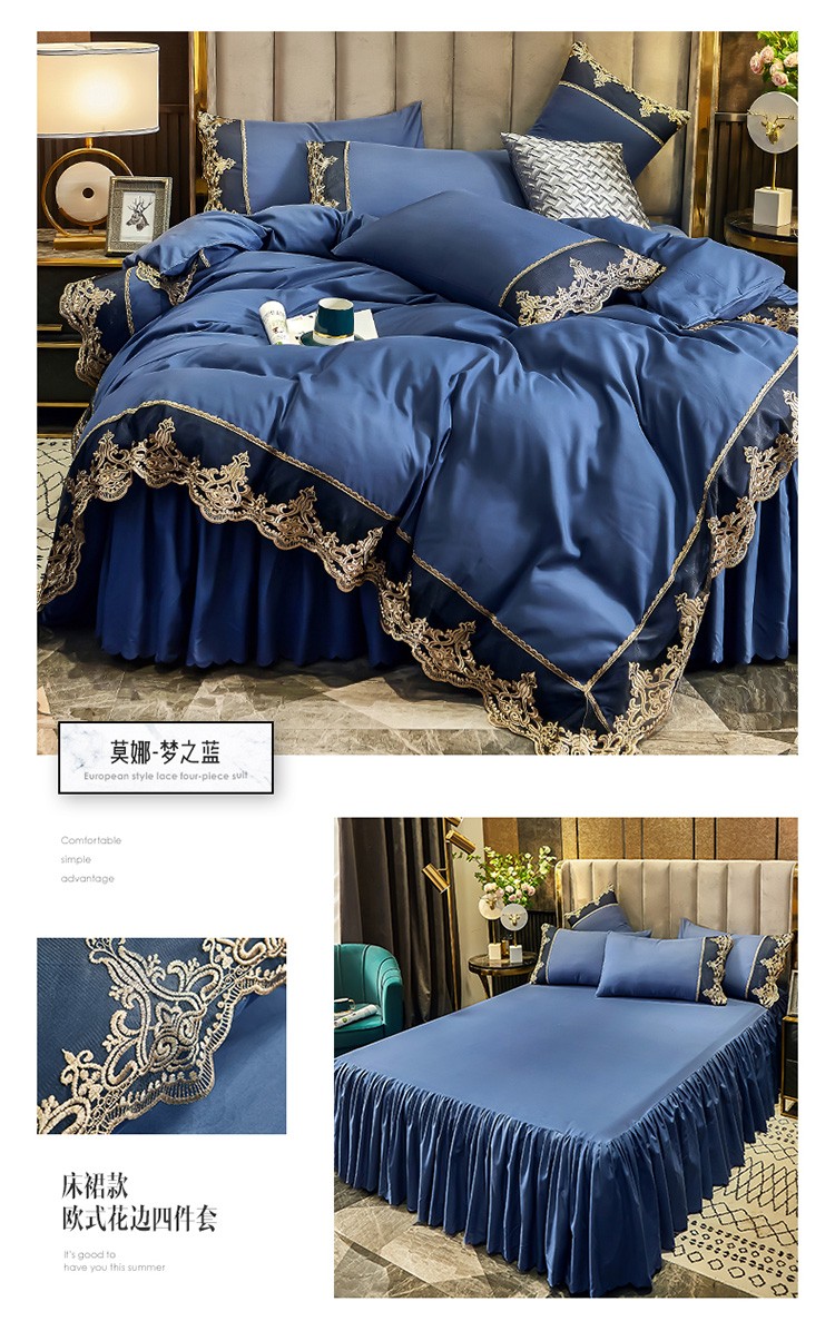 莉莉安 2025新款亲肤磨毛欧式花边床裙四件套 莫娜-梦之蓝