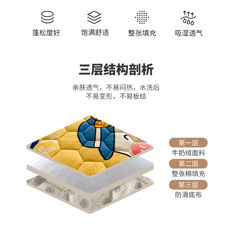 (总)缦卡琳 2023新款夹棉牛奶绒薄床垫