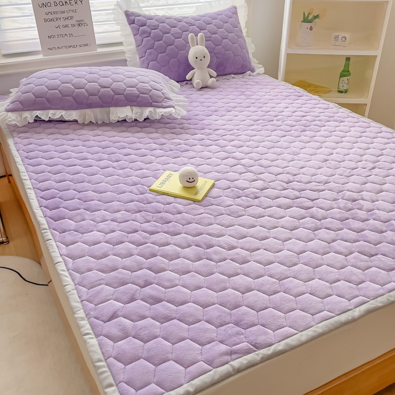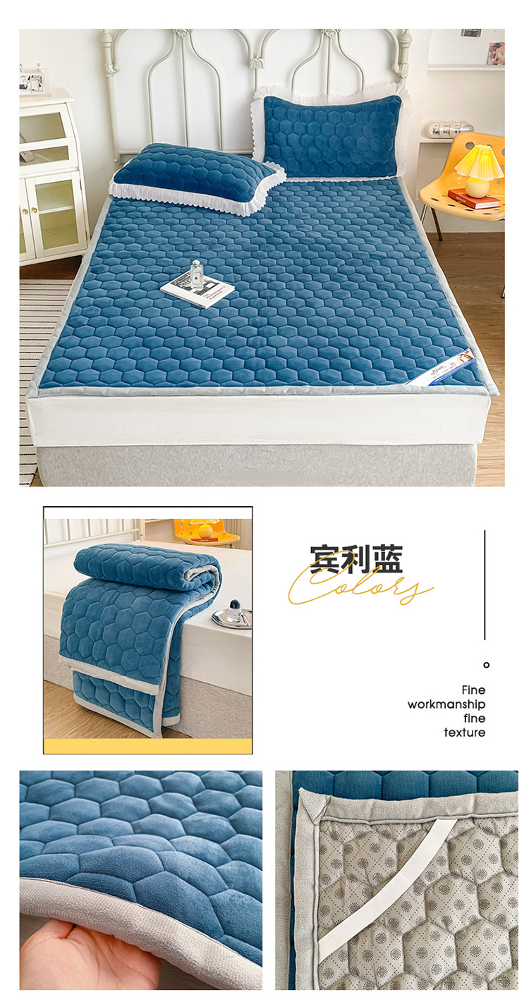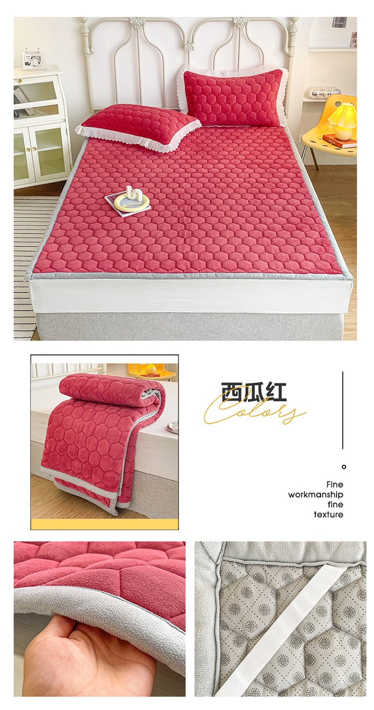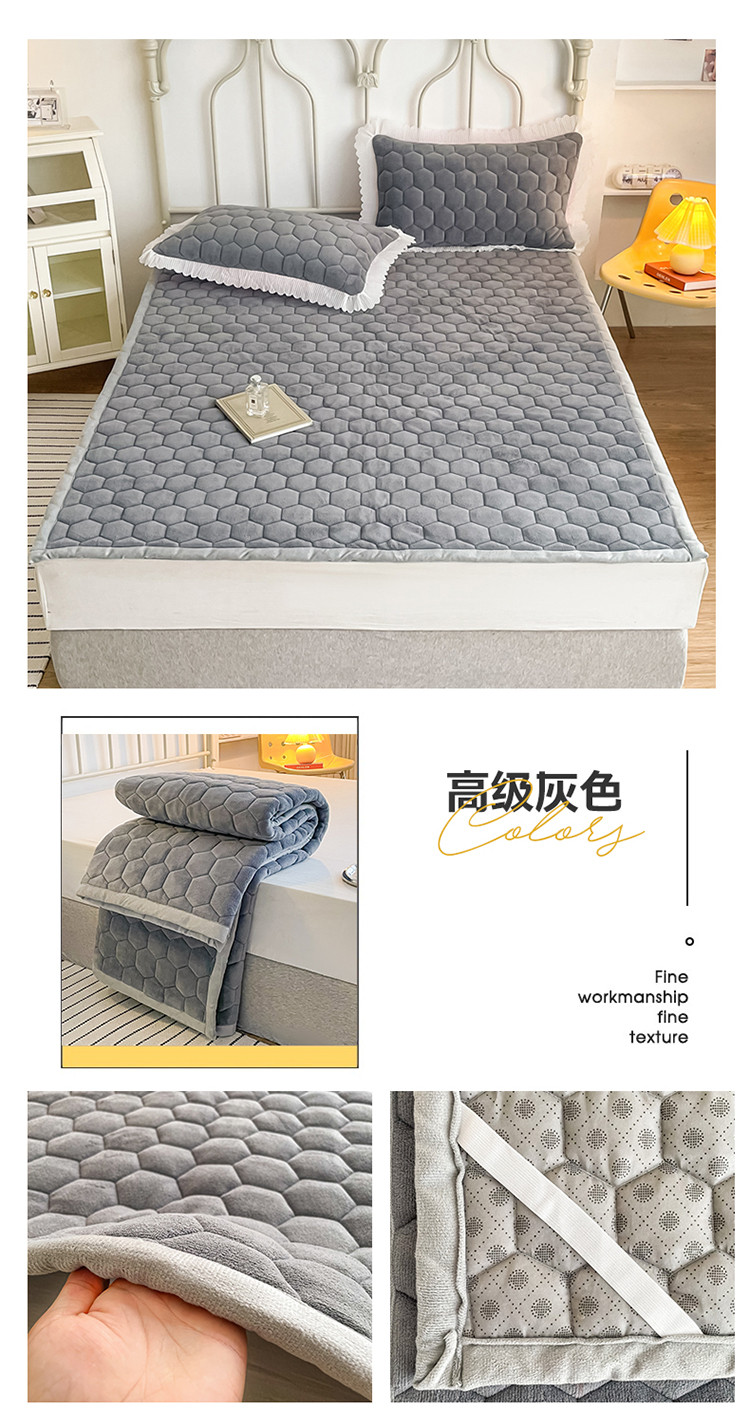 (总)缦卡琳 2023新款夹棉牛奶绒薄床垫,卡其色,米黄色,轻奢紫,天空蓝,宾利蓝,高级灰色,牛油果绿,西瓜红