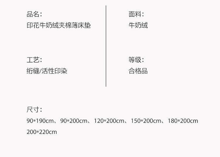 商品名称:(总)缦卡琳 2023新款夹棉牛奶绒薄床垫