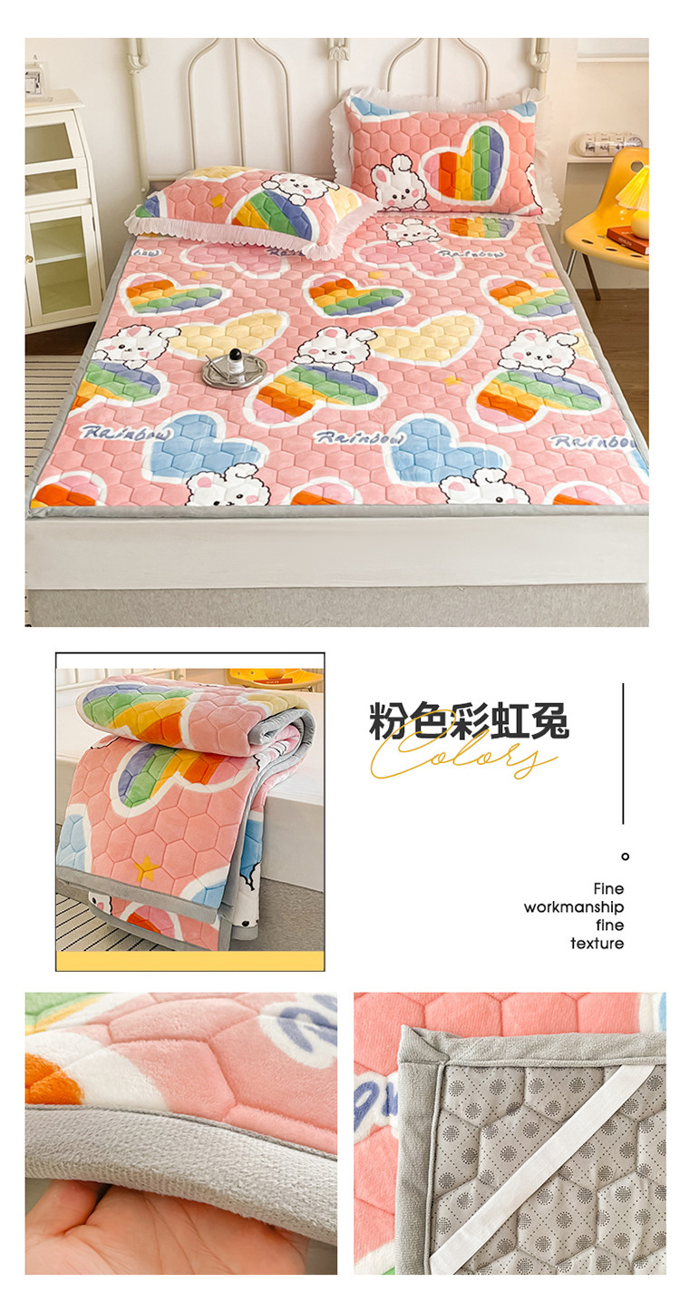 (总)缦卡琳家纺 2024新款A类牛奶绒羽丝棉床垫,爱情兔粉,爱心蝴蝶结,爱心兔,恐龙宝贝,向阳花开,小南瓜,小情调蓝,小情调米白,阳光心情,郁金香