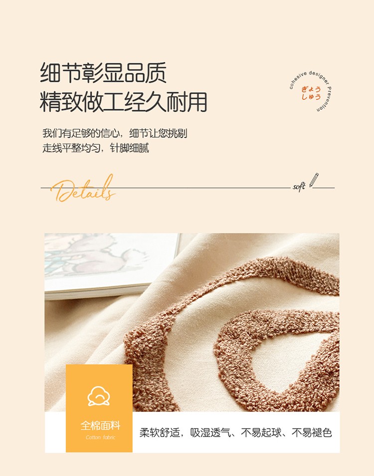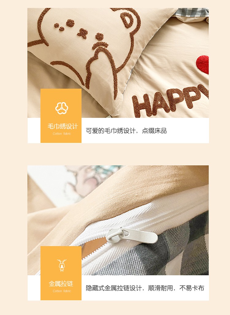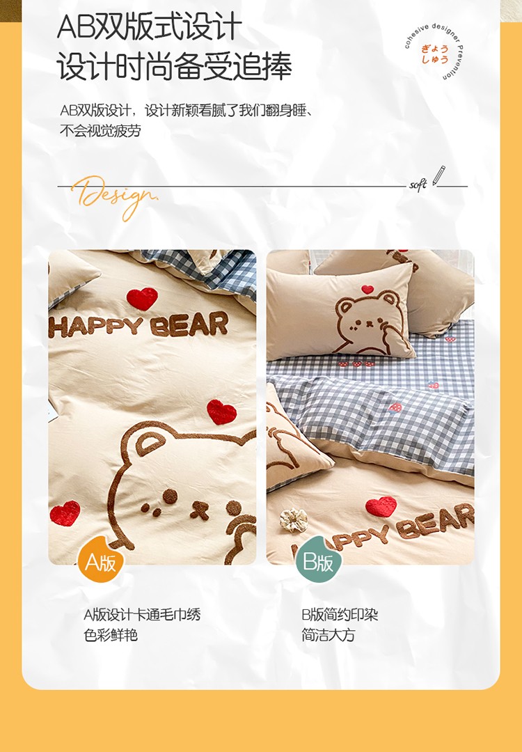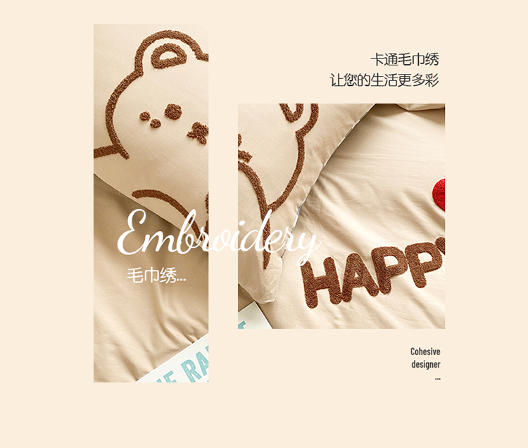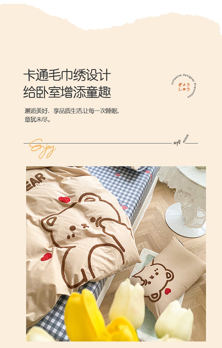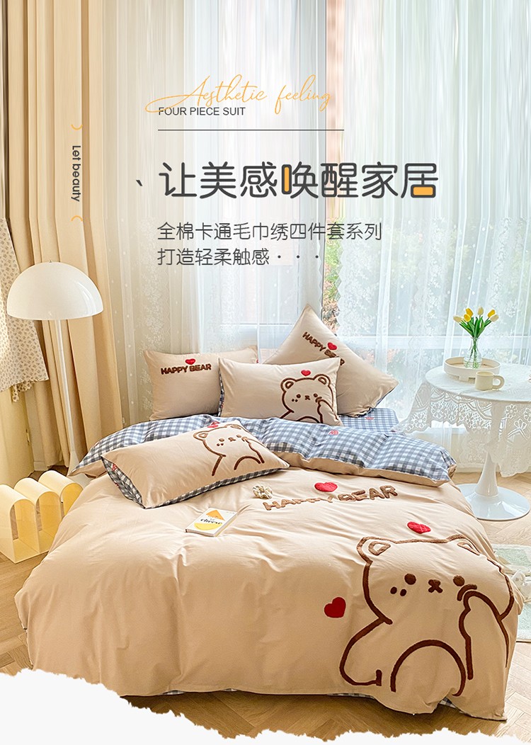 商品名称:澳梵家居 2021新款全棉卡通大版毛巾绣四件套 害羞熊-卡其