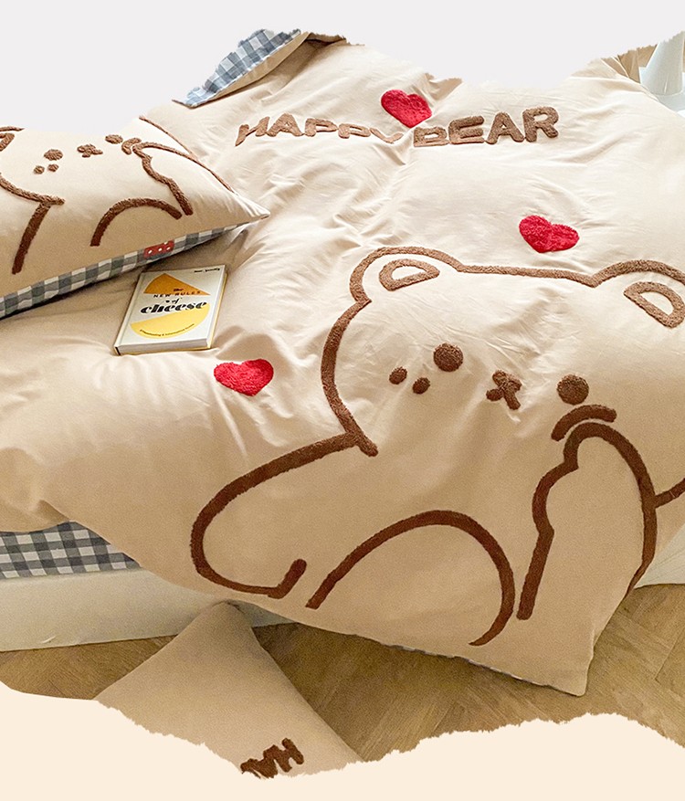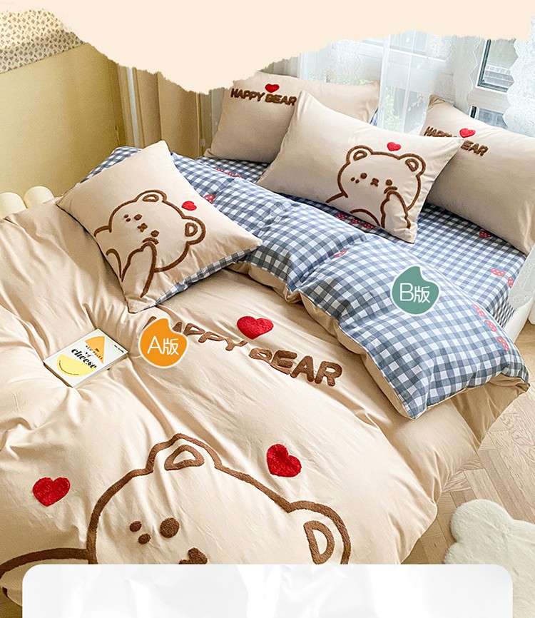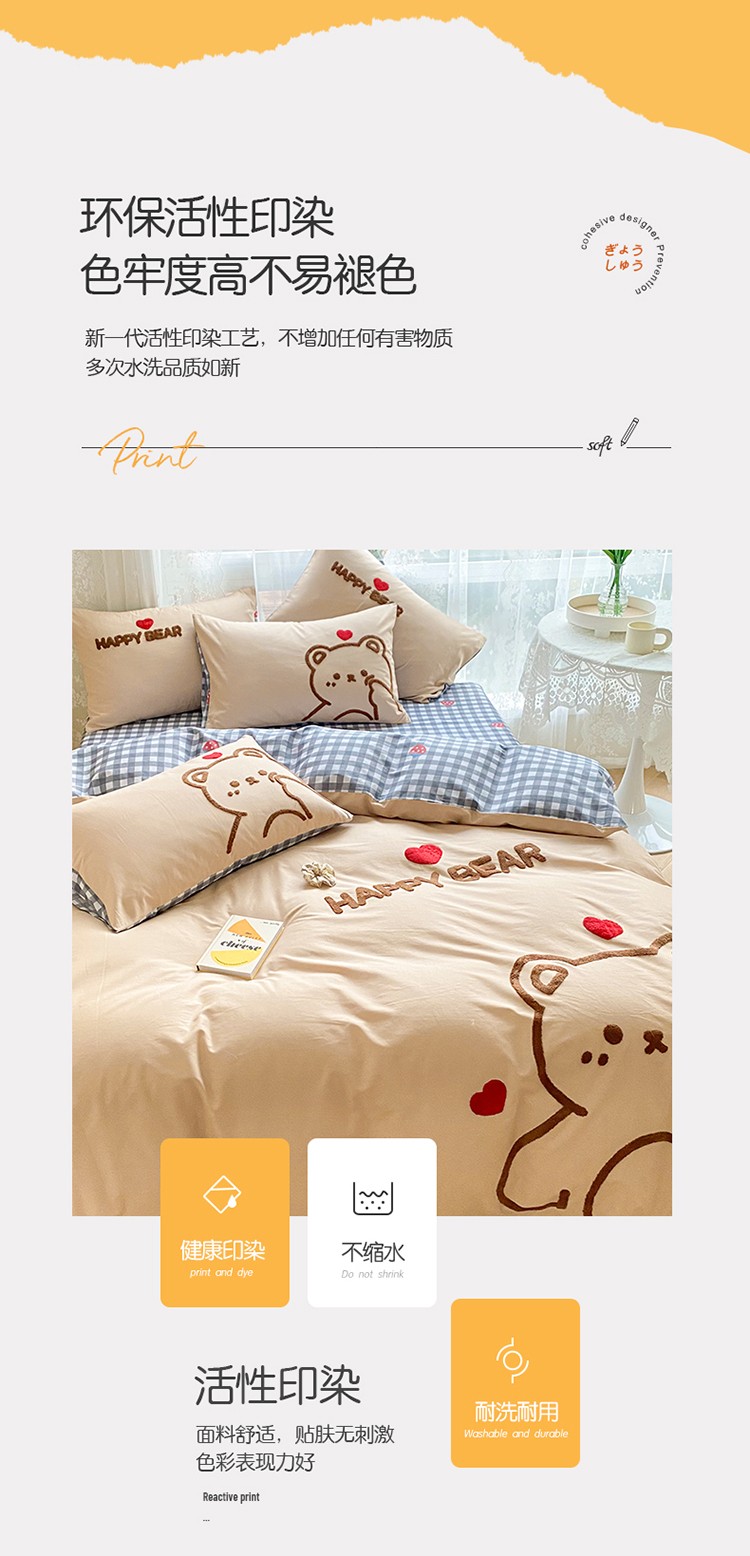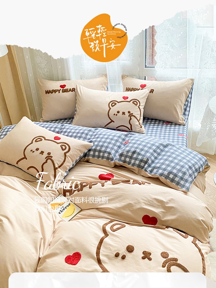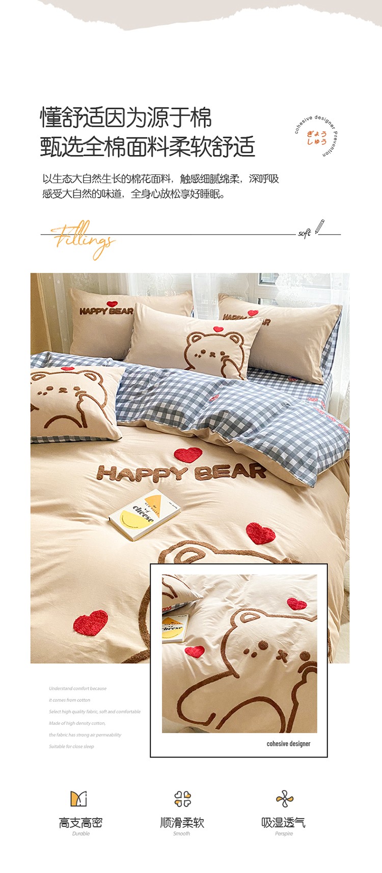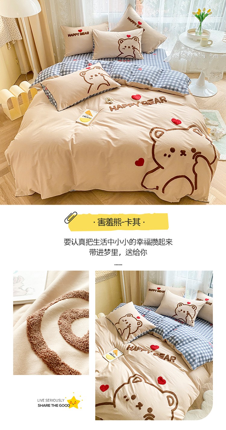 商品名称:澳梵家居 2021新款全棉卡通大版毛巾绣四件套 害羞熊-卡其