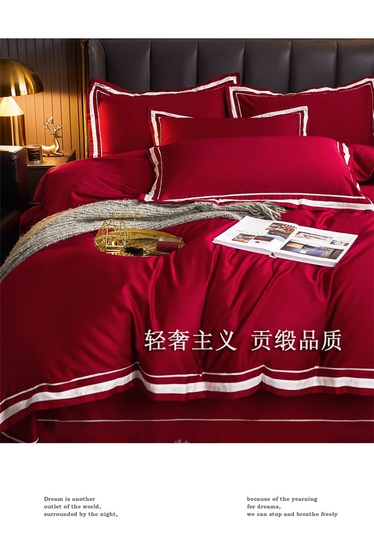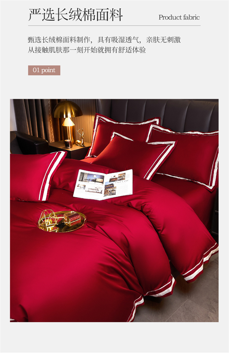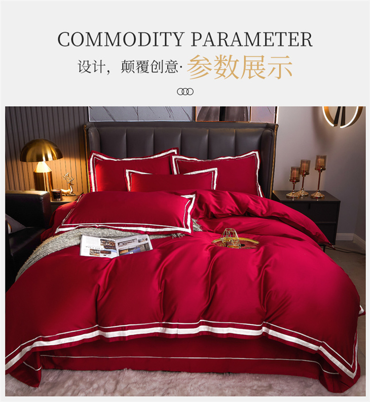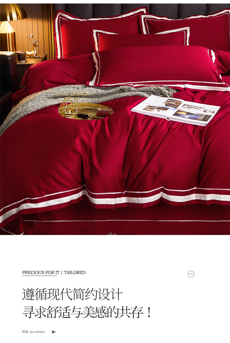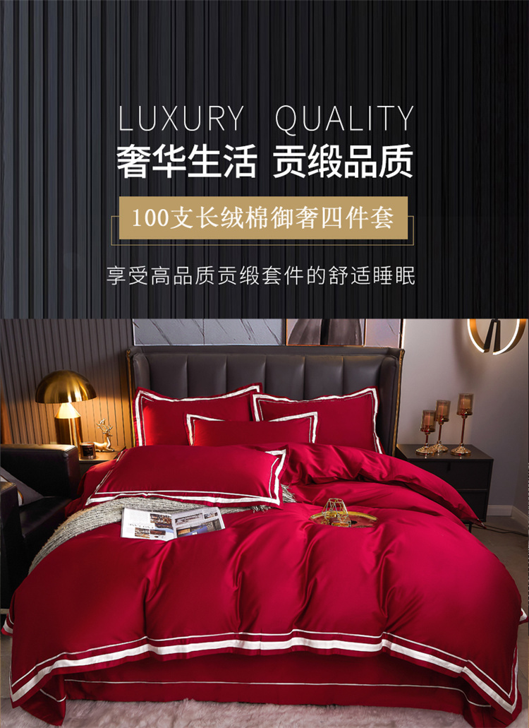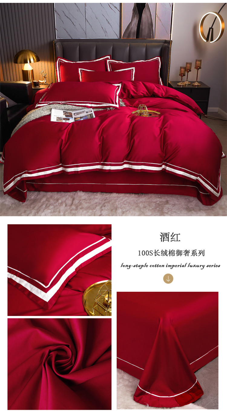 商品名称:芊寻家居 2024新款100支长绒棉御奢系列四件套 酒红