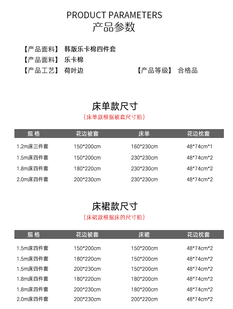 1.5床裙款四件套(被套180*220cm) | ¥48.00 |