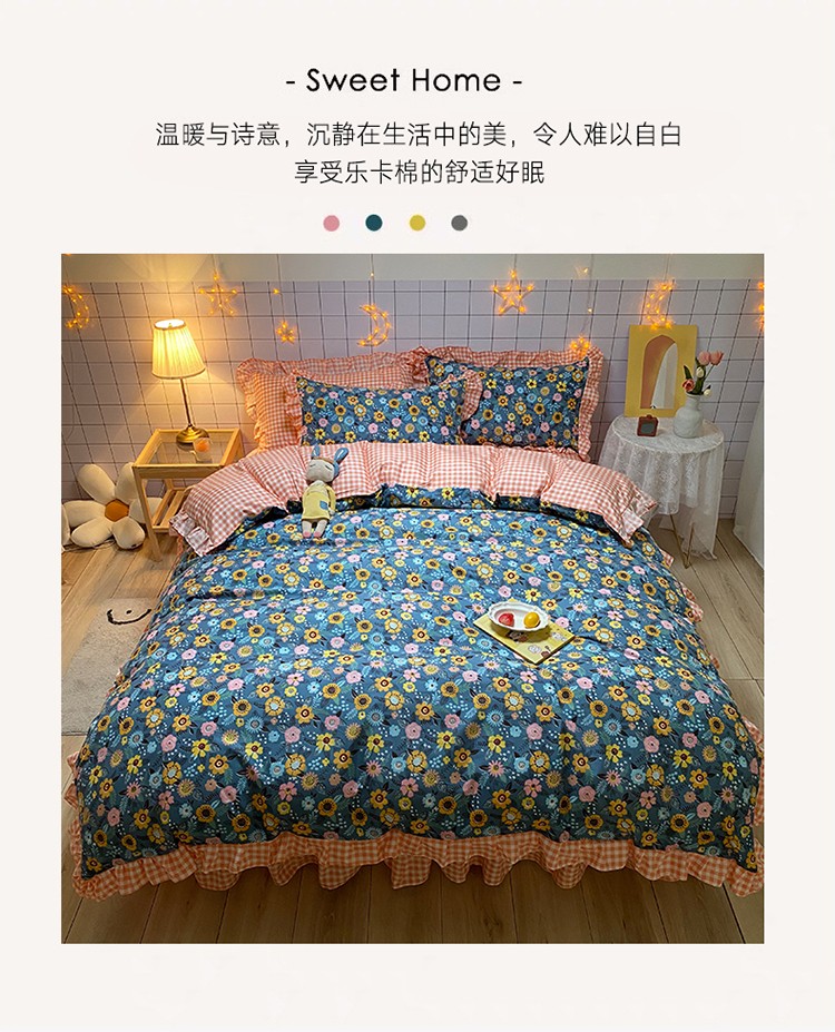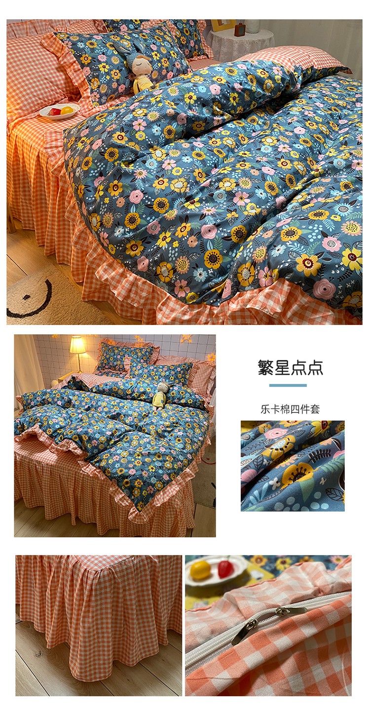当前位置: 91家纺网 > 商品网购 > 床品套件 > 四件套 > 化纤普通四件套 > 艾裙海床笠 2025新款乐卡棉亲肤韩版小清新四件套繁星点点