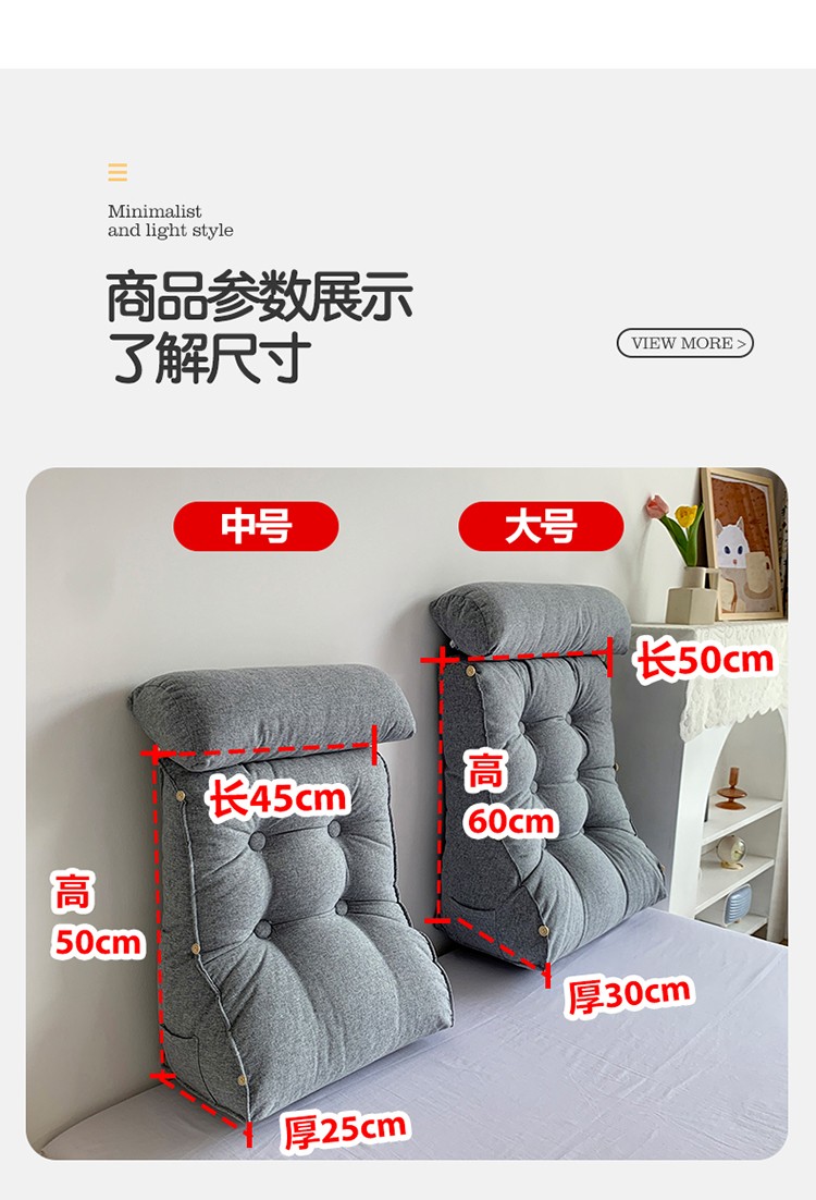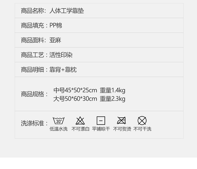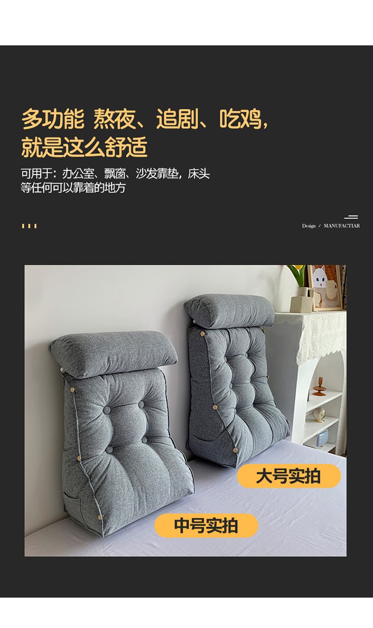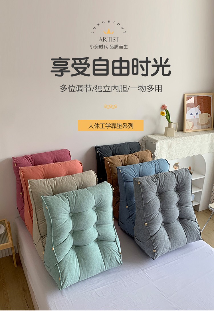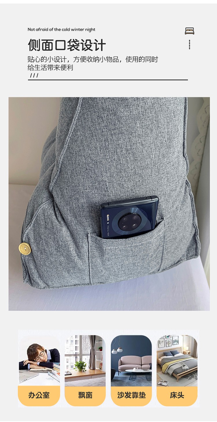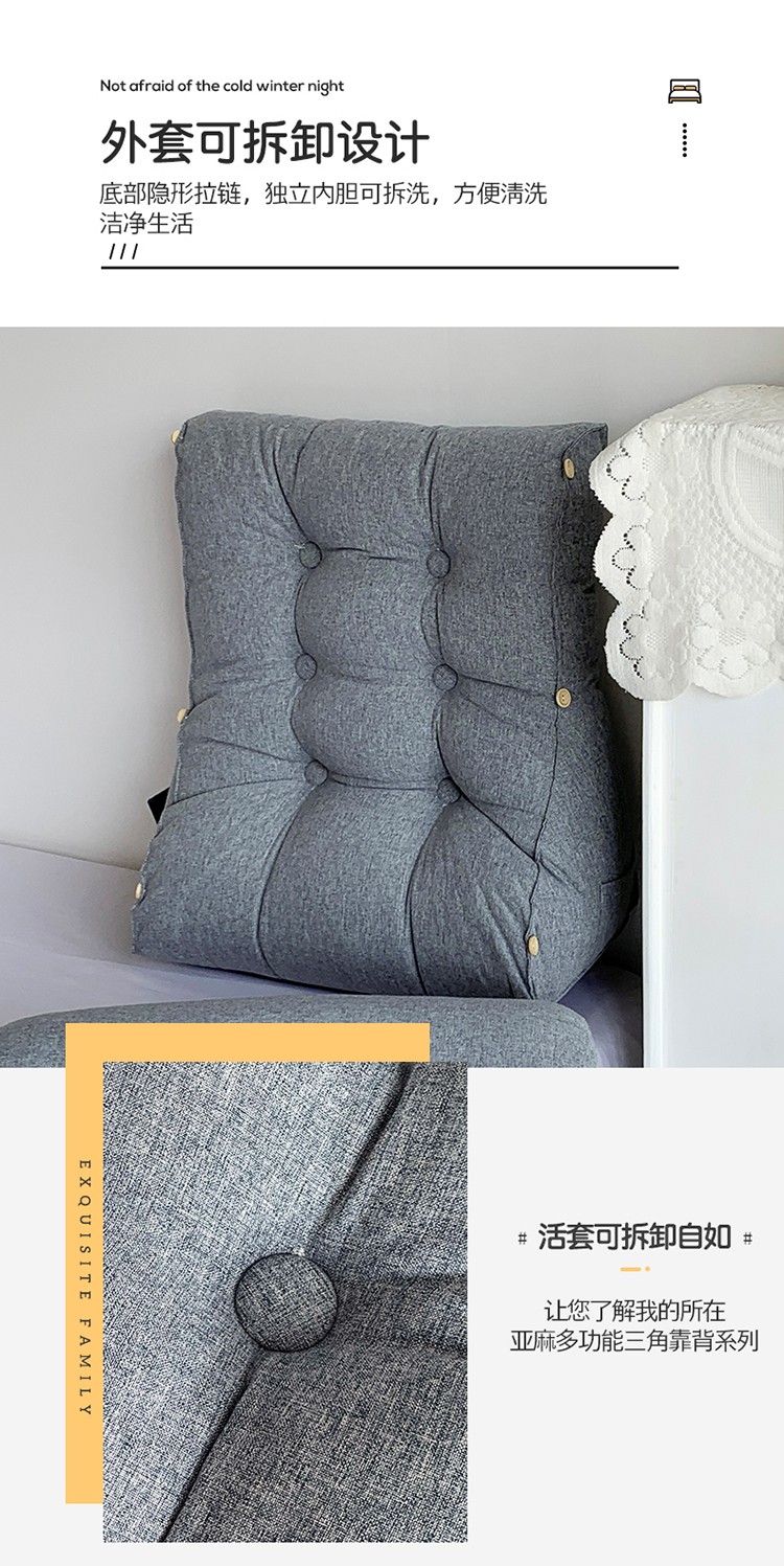 商品名称:永光家居 亚麻工学靠垫 床头靠垫抱枕 卧室腰枕大靠垫生石灰