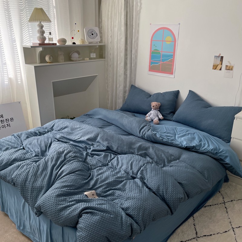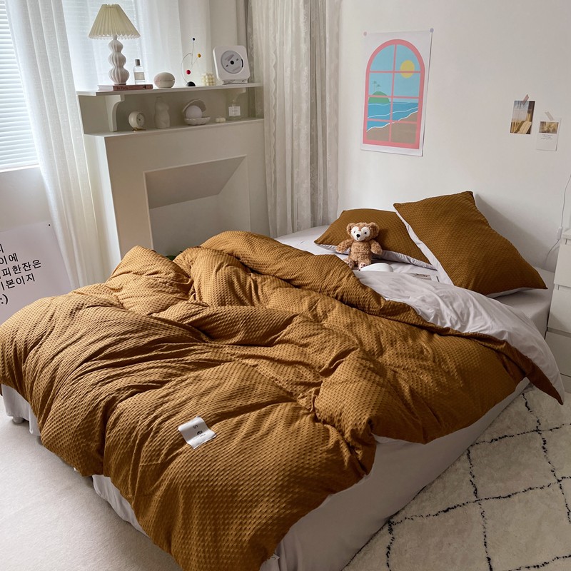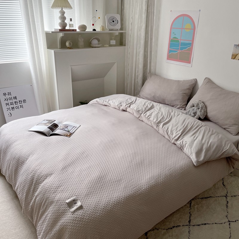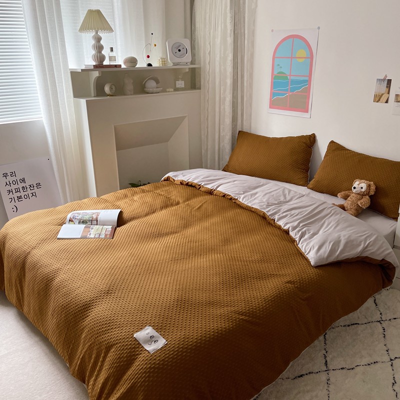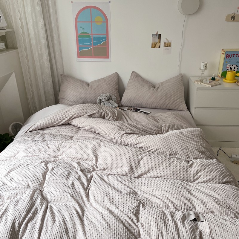 (总)星期八 2021年新款纯色华夫格系列四件套