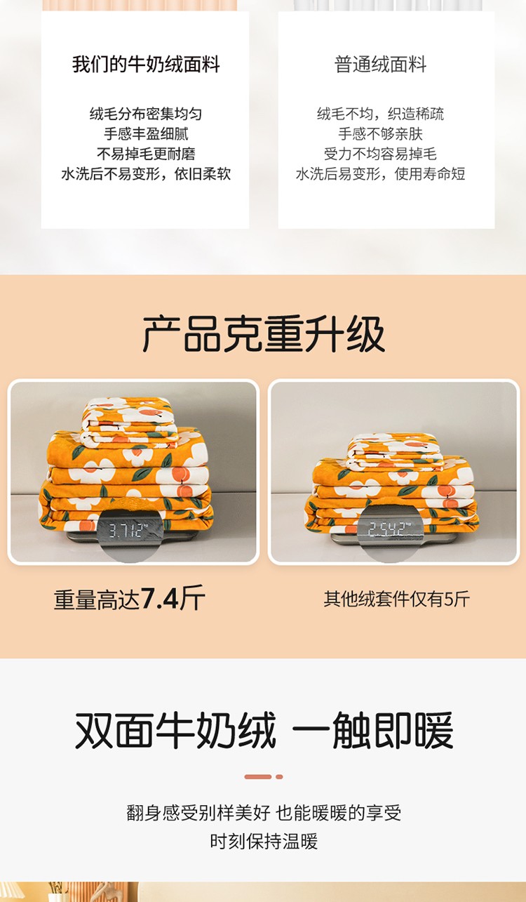 凡客2021秋冬总重3.8kg高克重牛奶绒印花四件套情定加州