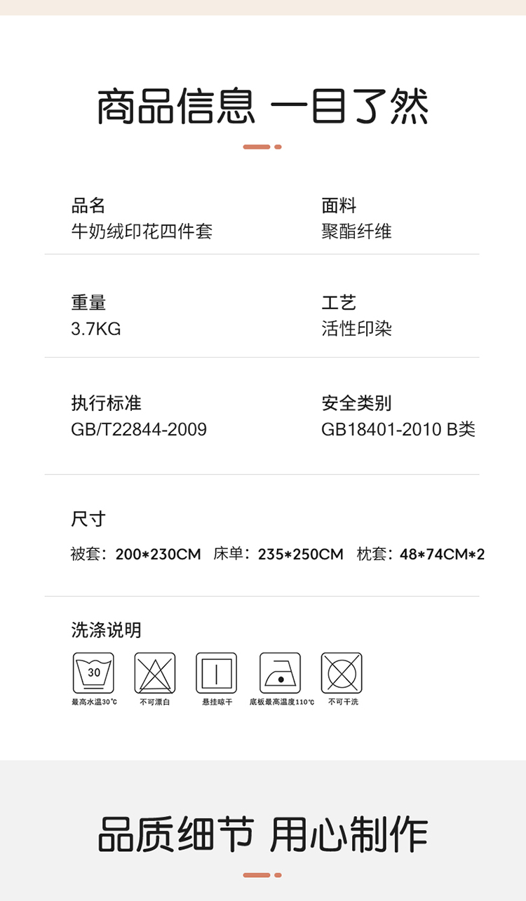 商品名称:凡客2021秋冬总重3.8kg高克重牛奶绒印花四件套情定加州