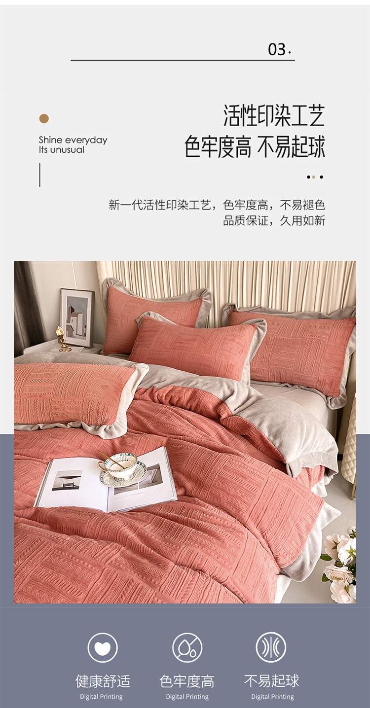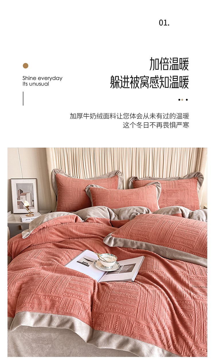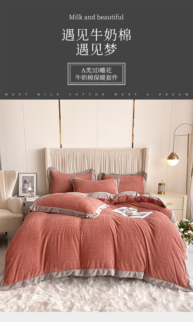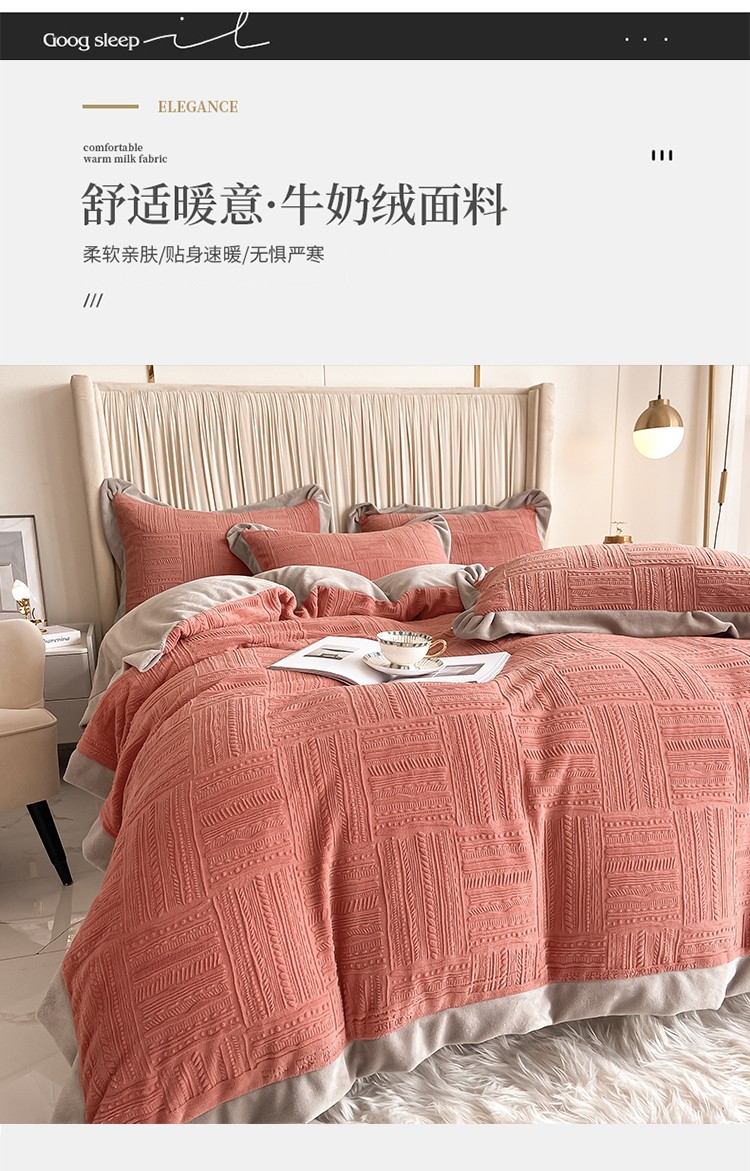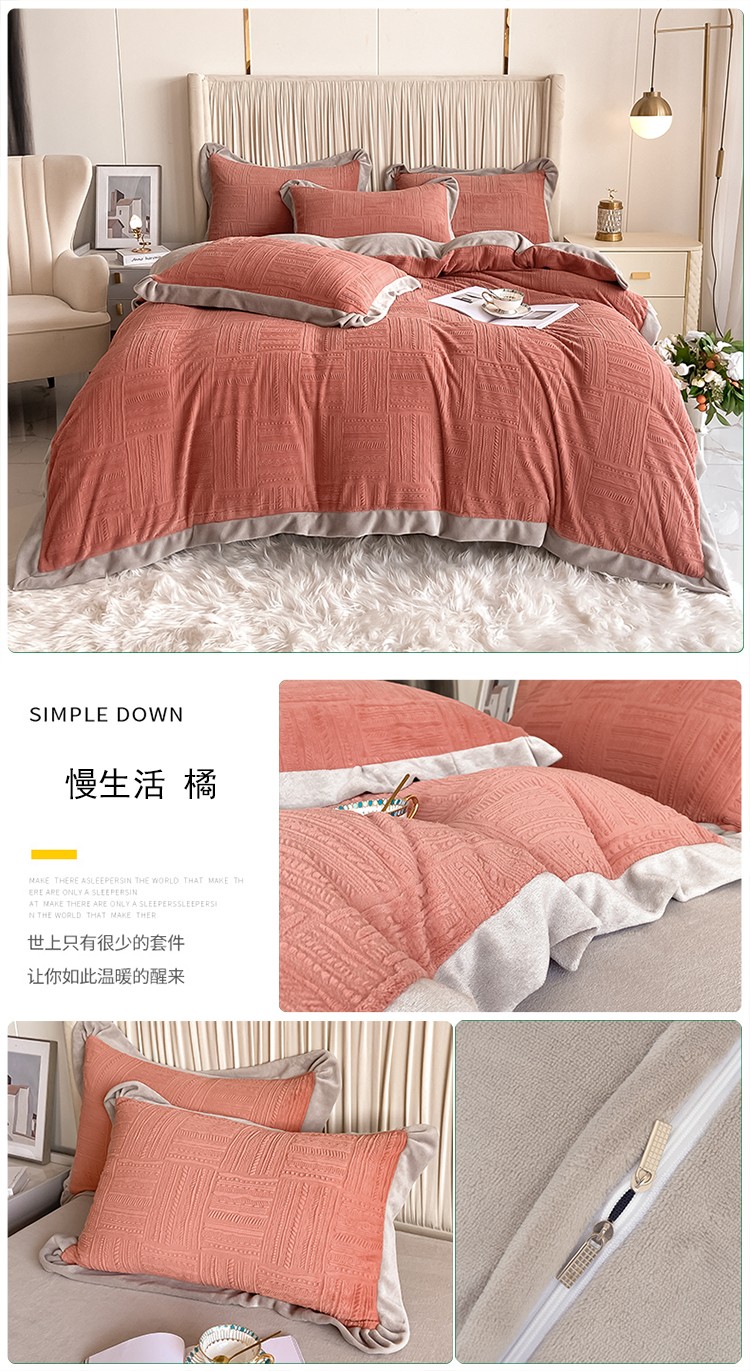 商品名称:花漾 2023新款雕花提花牛奶绒宽边四件套 慢生活橘