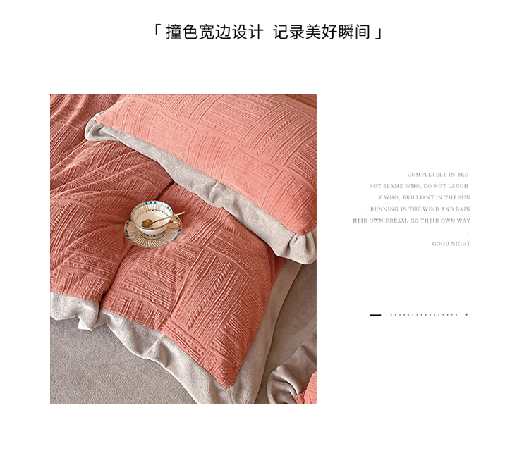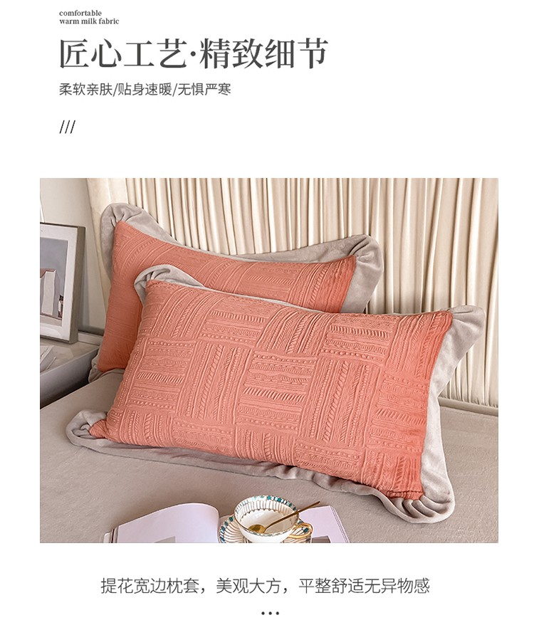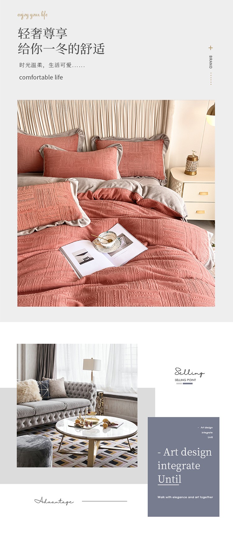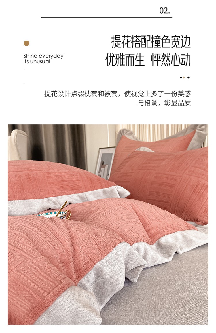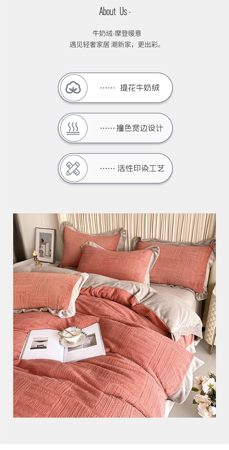 商品名称:花漾 2023新款雕花提花牛奶绒宽边四件套 慢生活橘