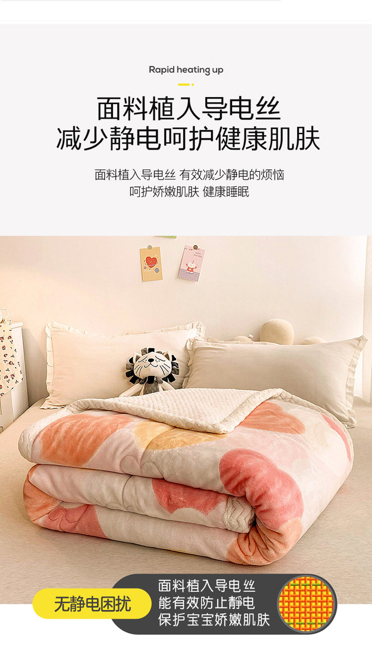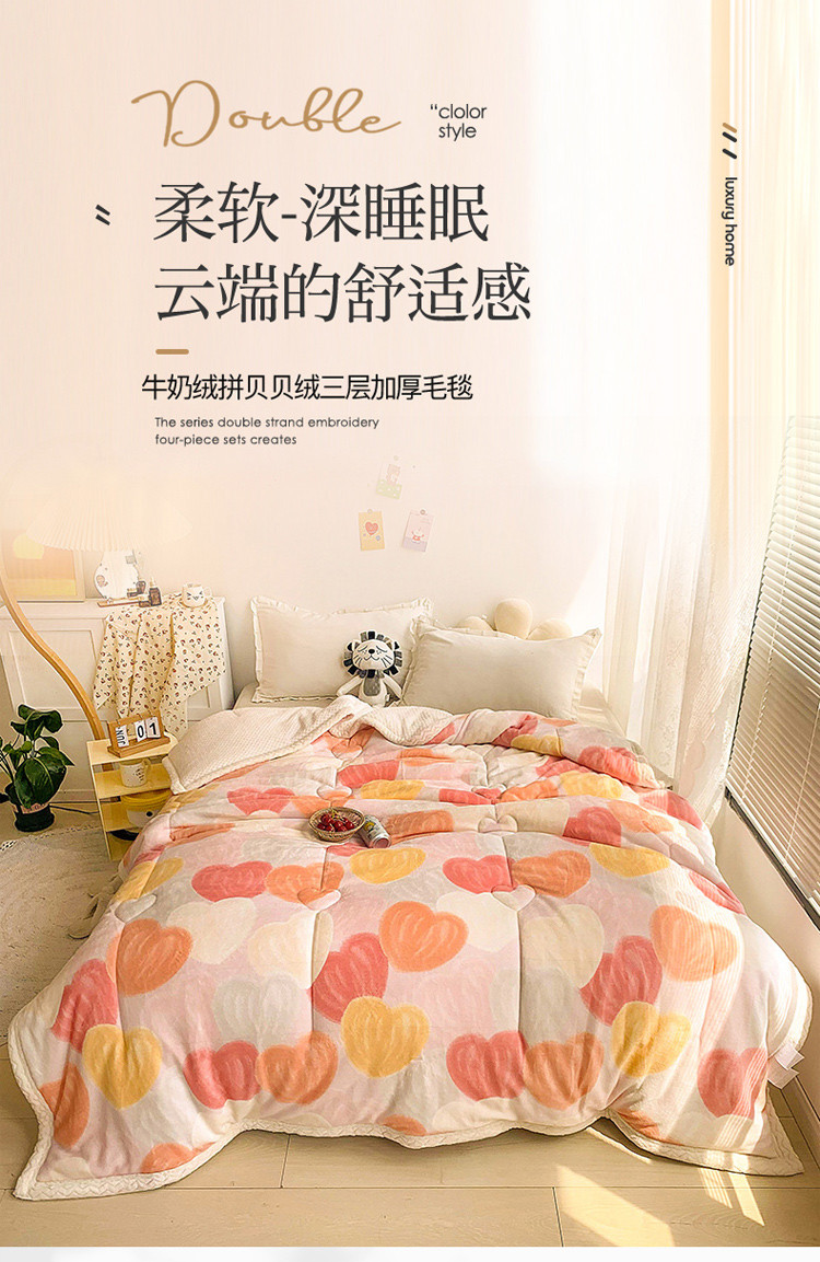 慕尚家纺2022新款牛奶绒贝贝绒三层加厚毛毯加厚毯-桃桃