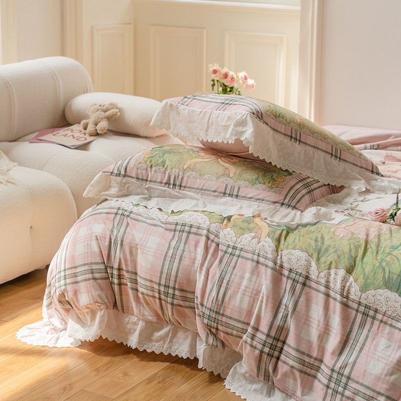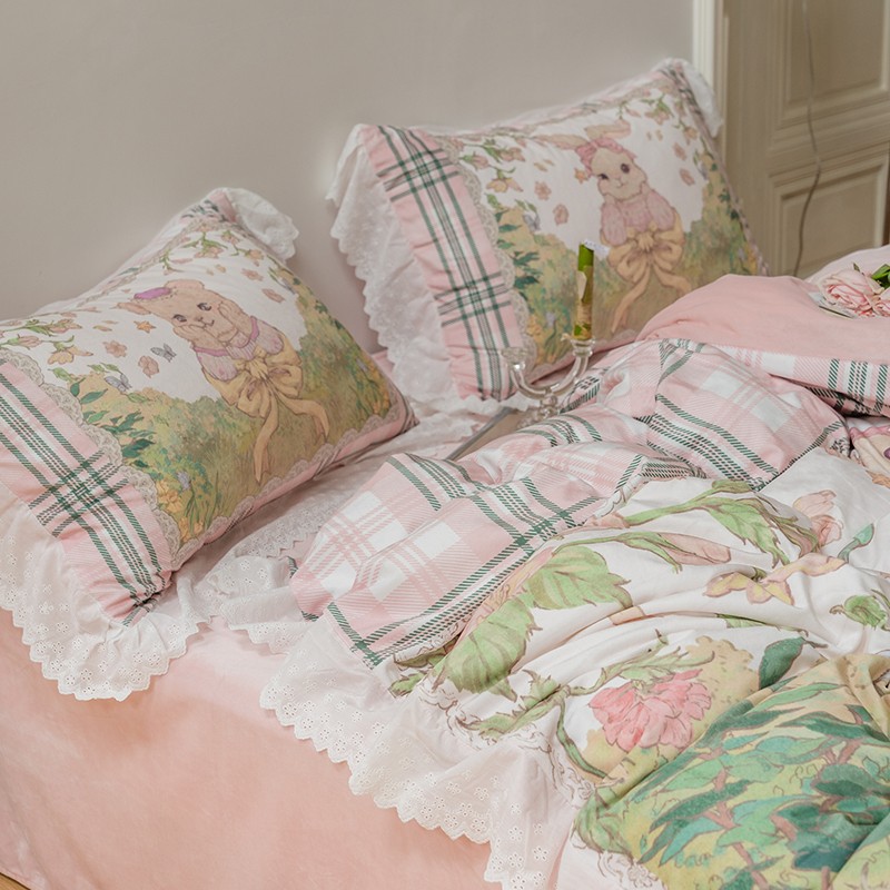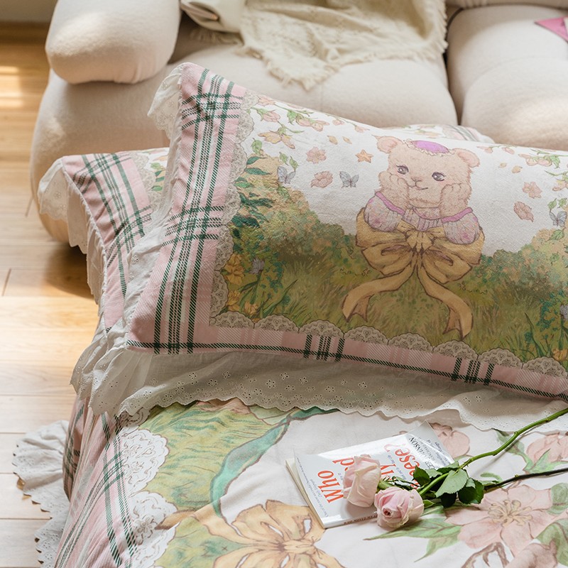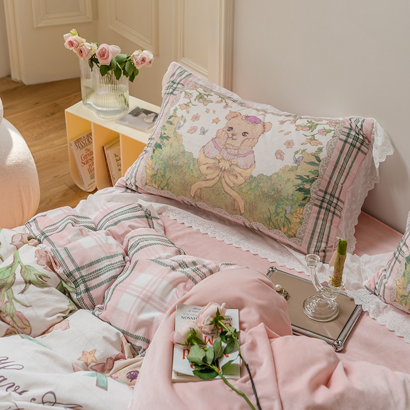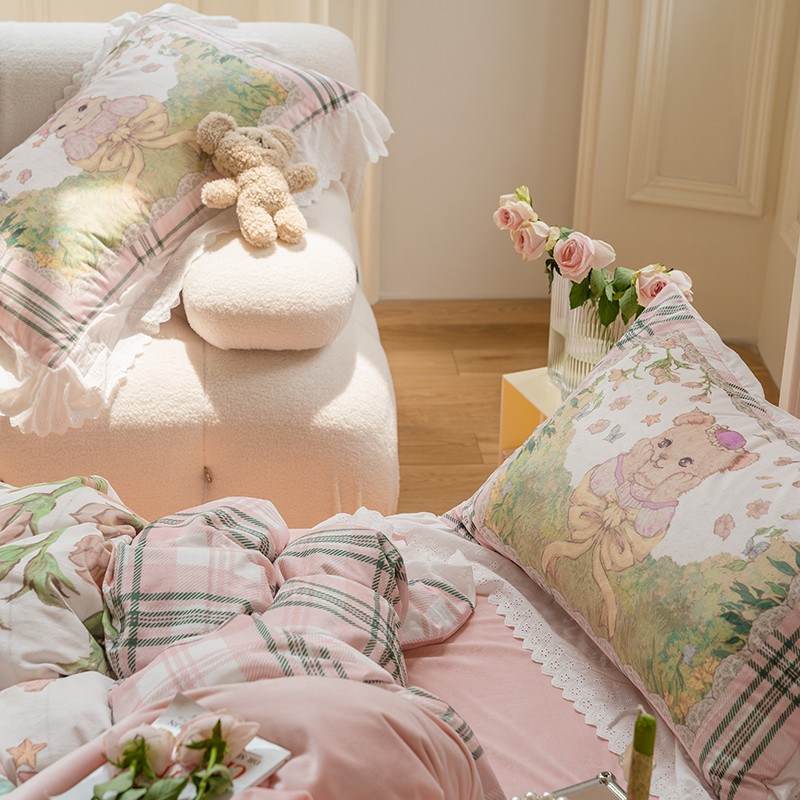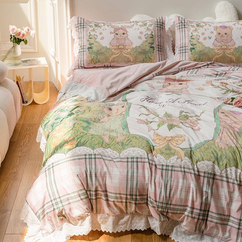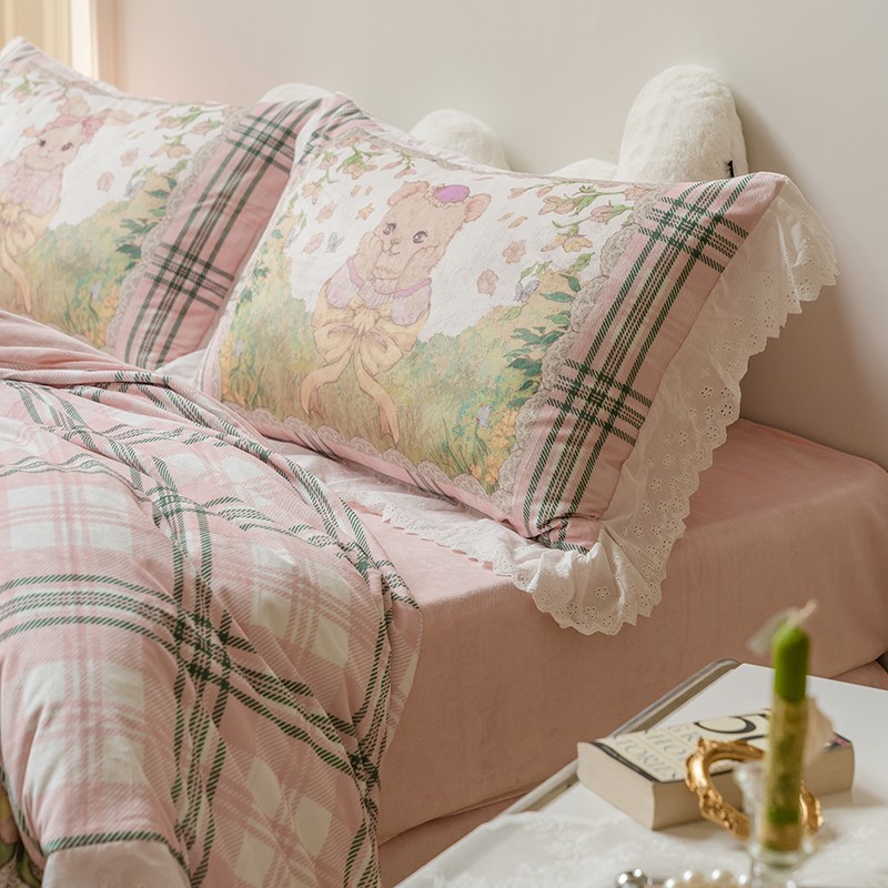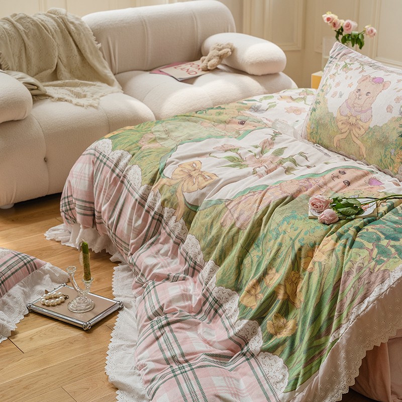 圆岛家纺新款冬季森系新款高档婴儿绒花边款加厚四件套 仙境森林