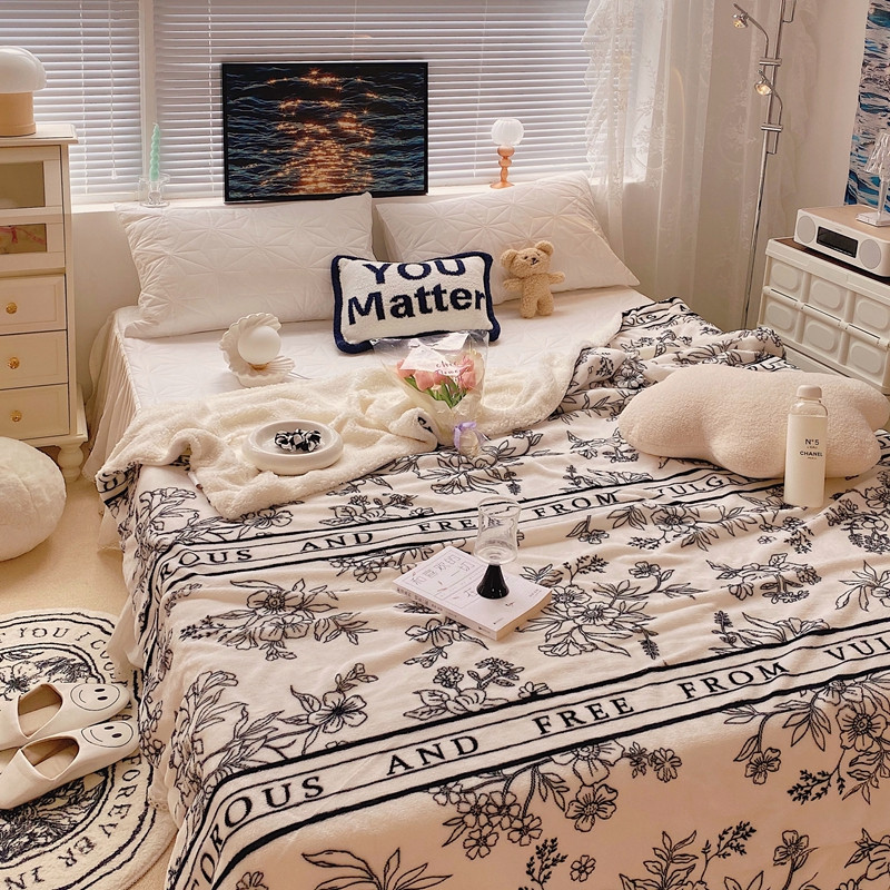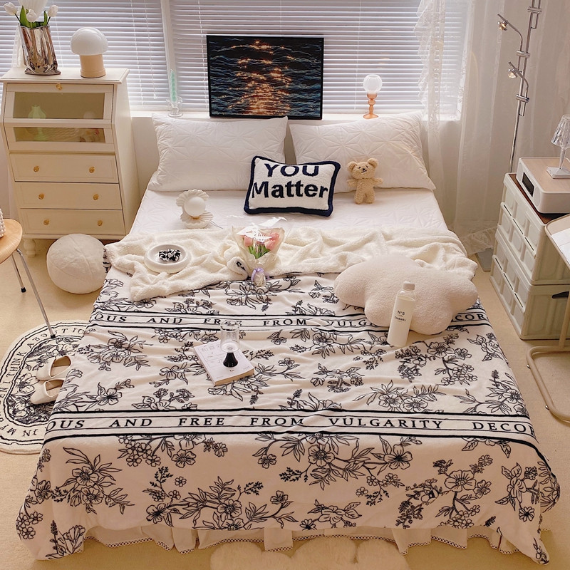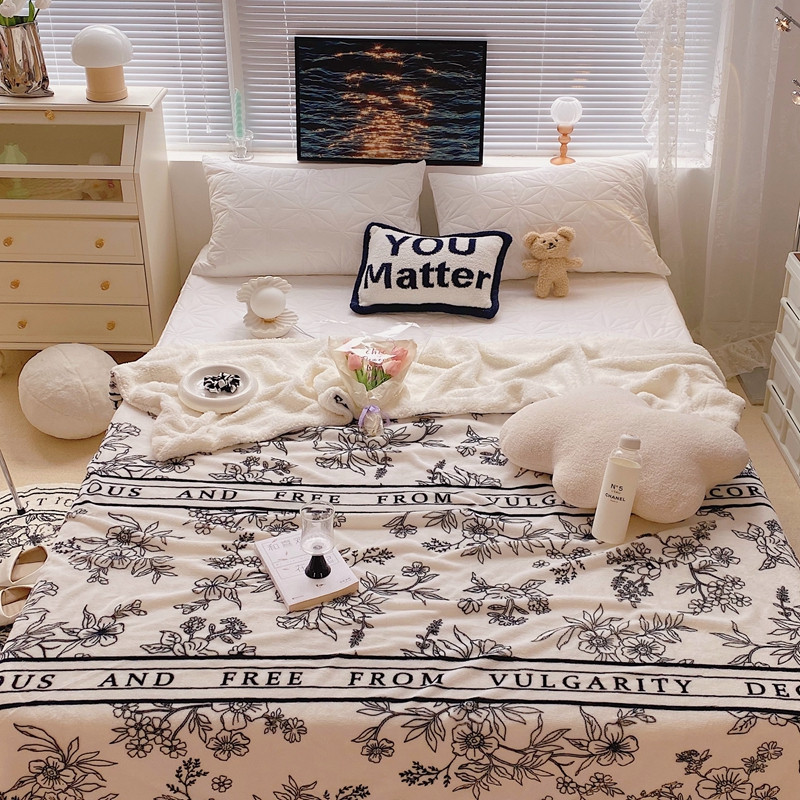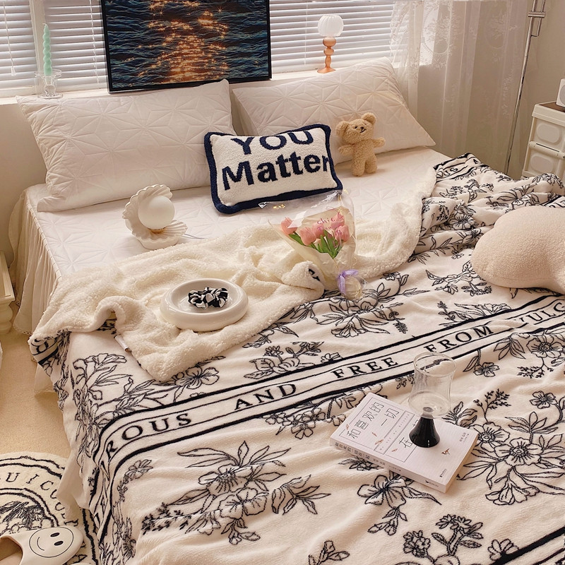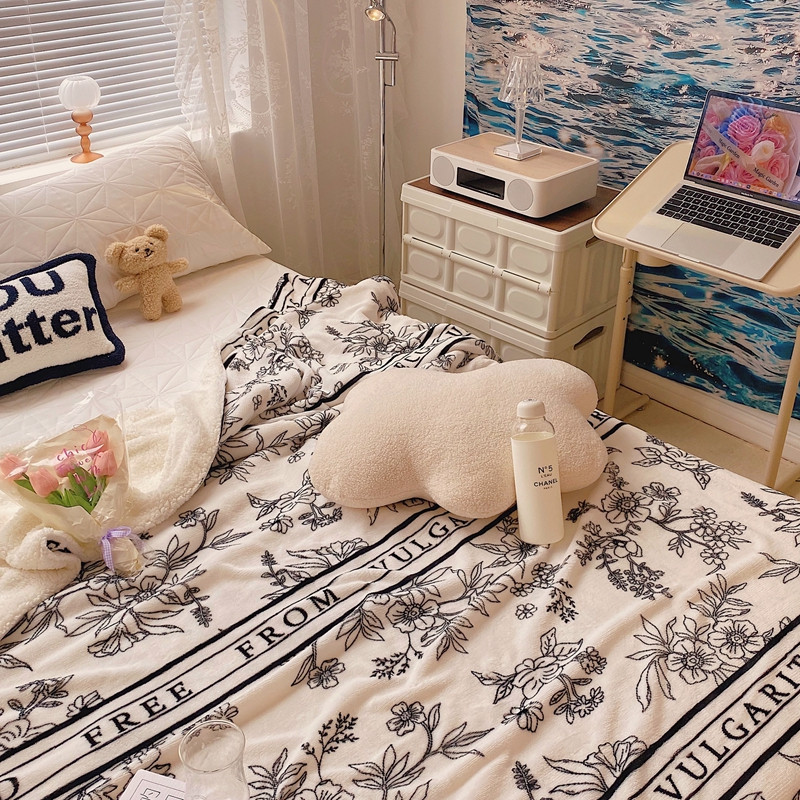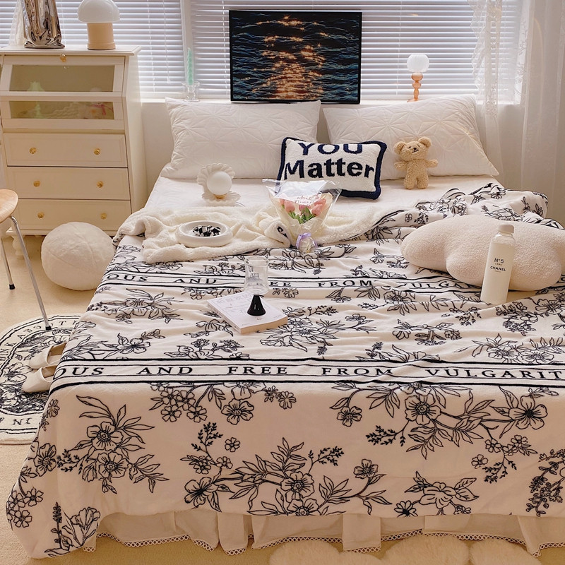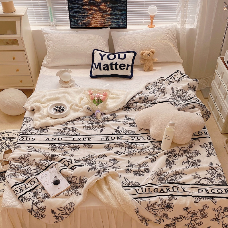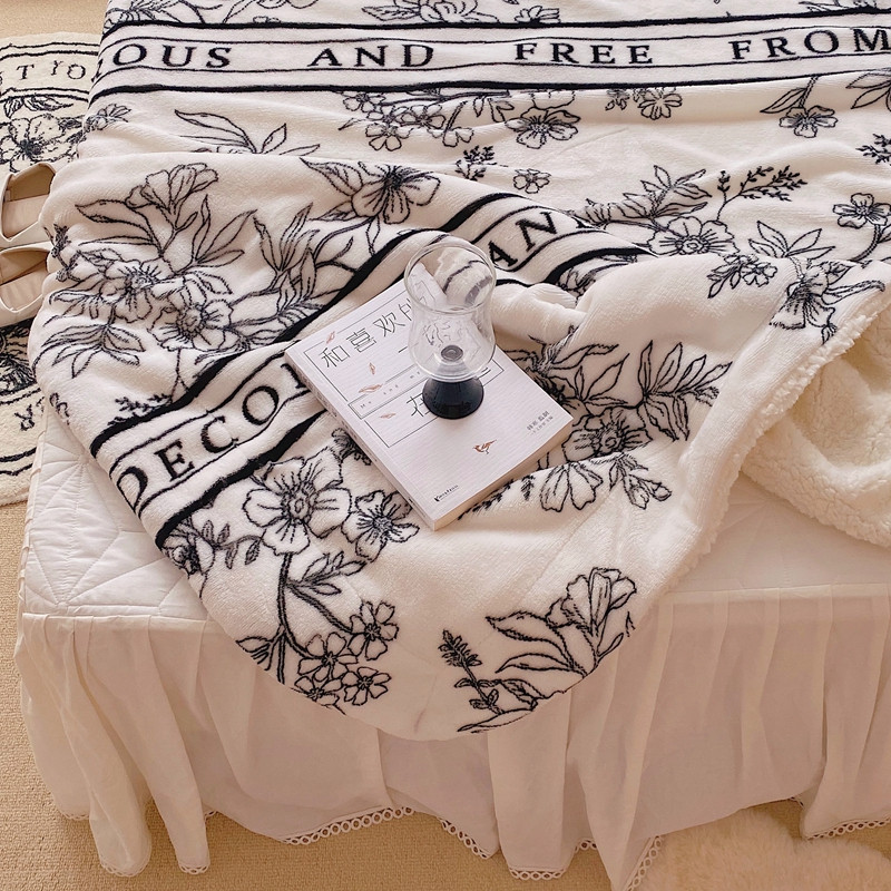 商品名称:顾里 2021新款ins网红少女心暖肤羊羔绒毯实拍图优雅小花
