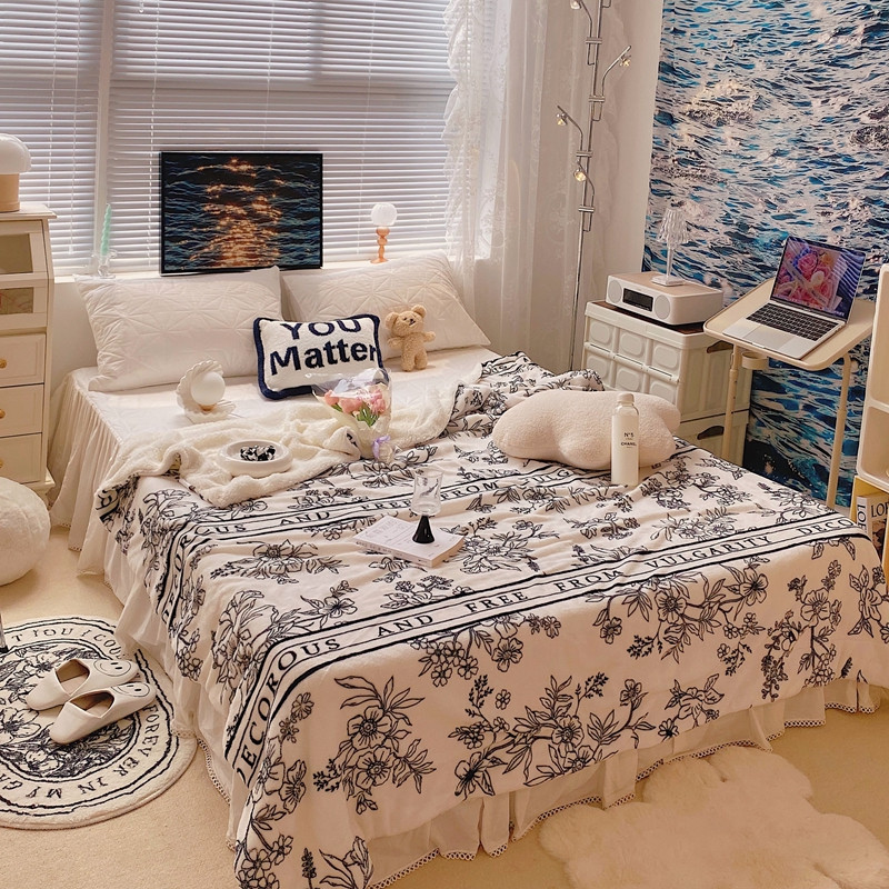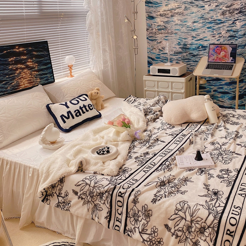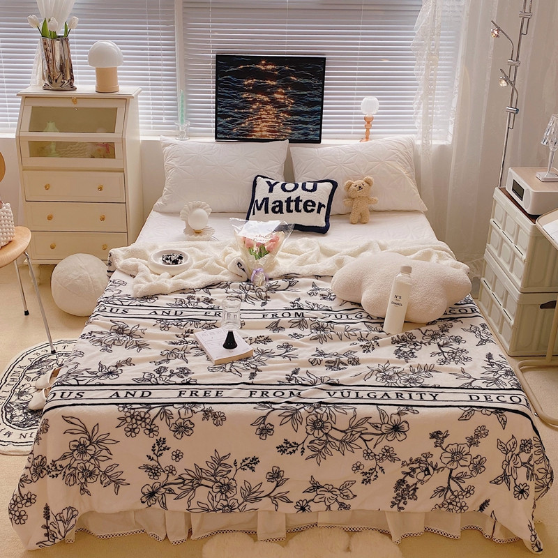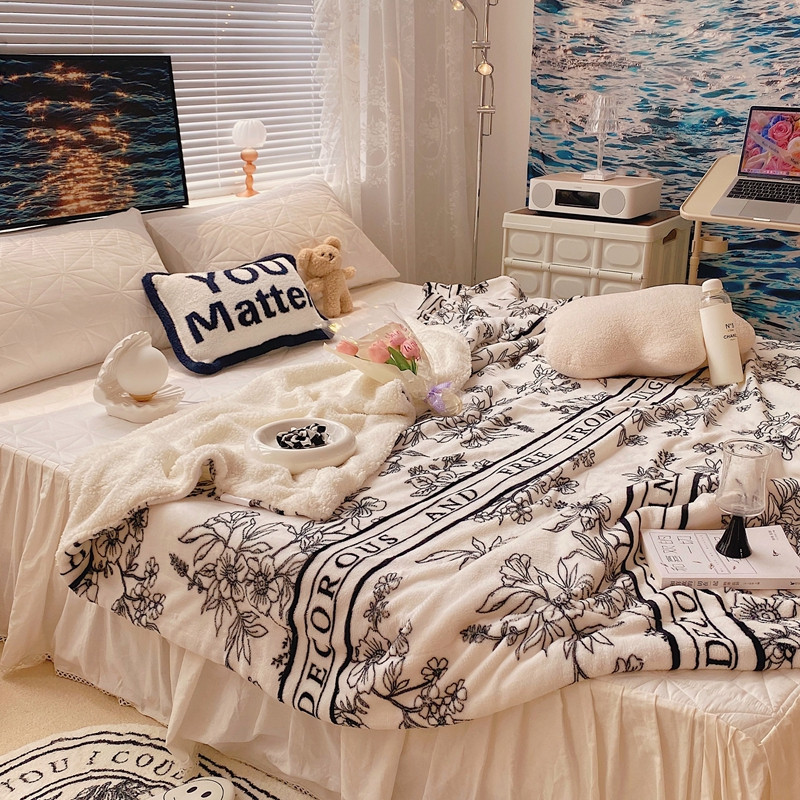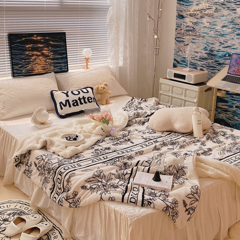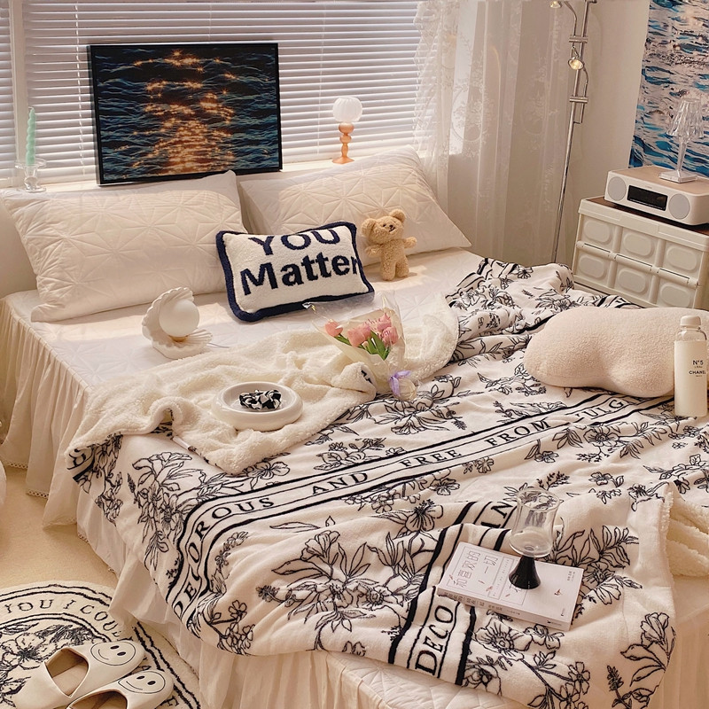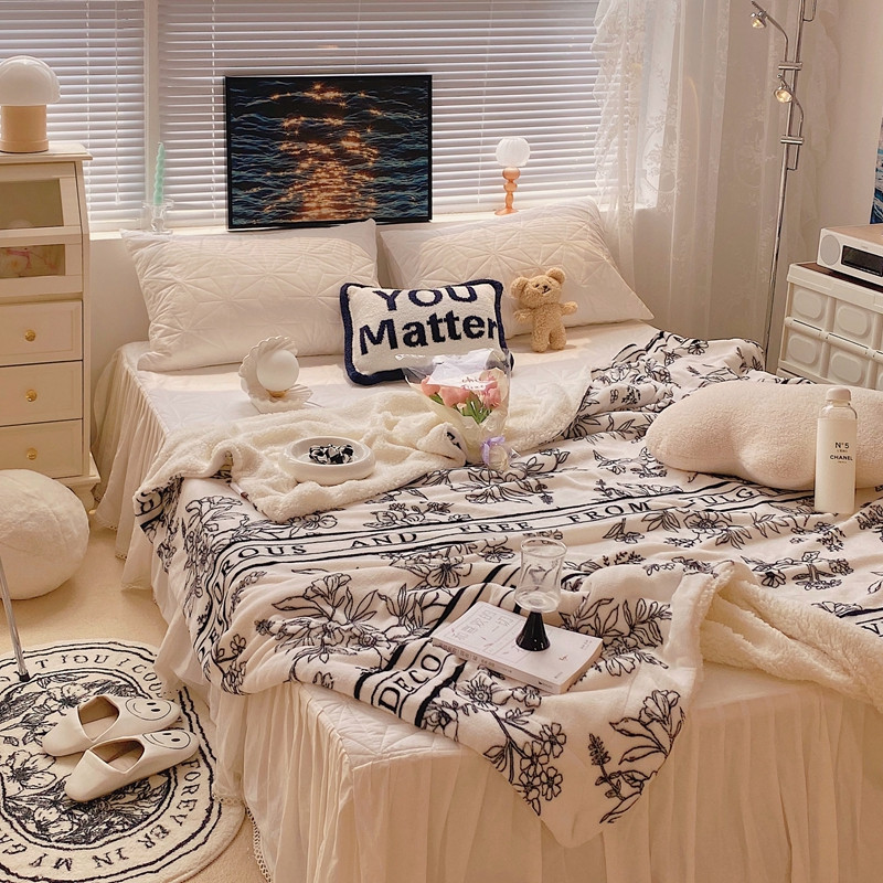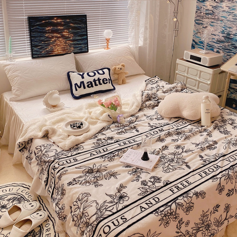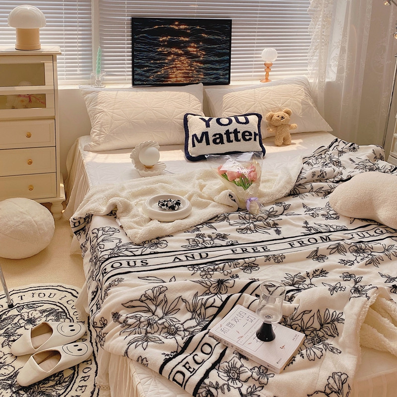商品名称:顾里 2021新款ins网红少女心暖肤羊羔绒毯实拍图优雅小花