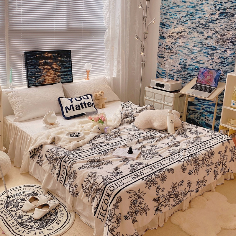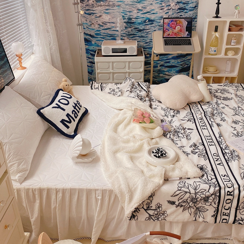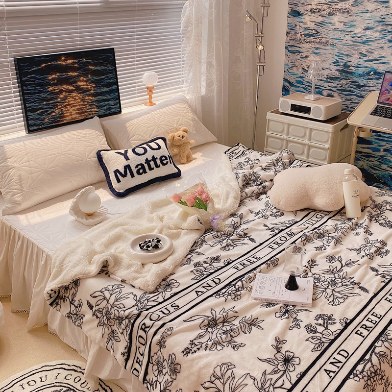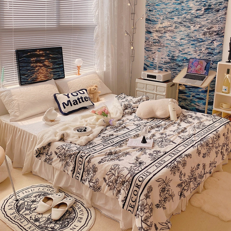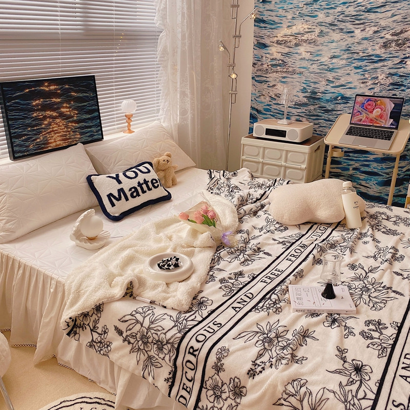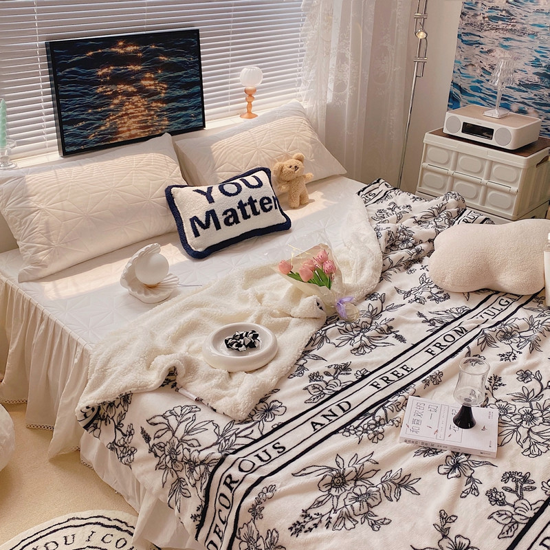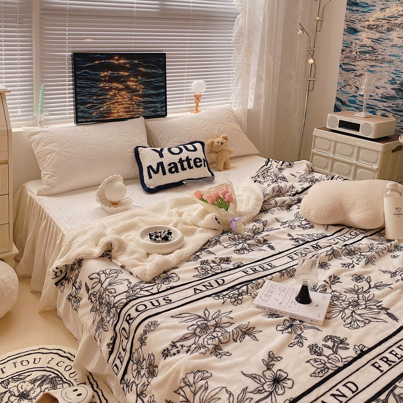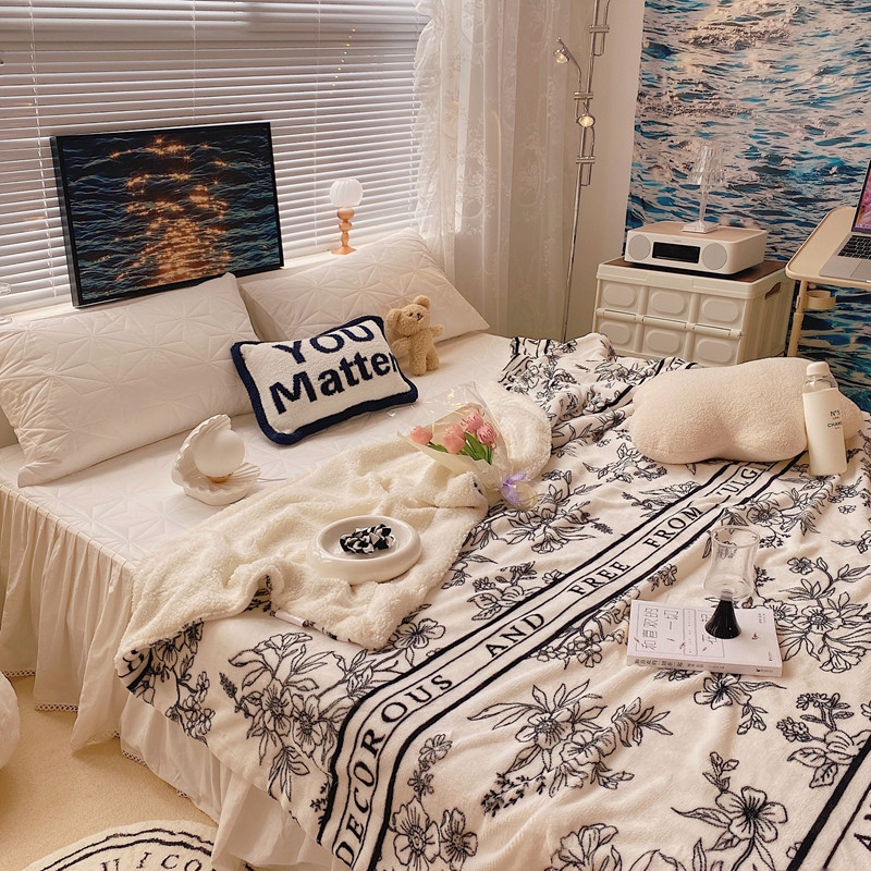 商品名称:顾里 2021新款ins网红少女心暖肤羊羔绒毯实拍图优雅小花