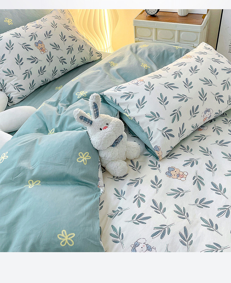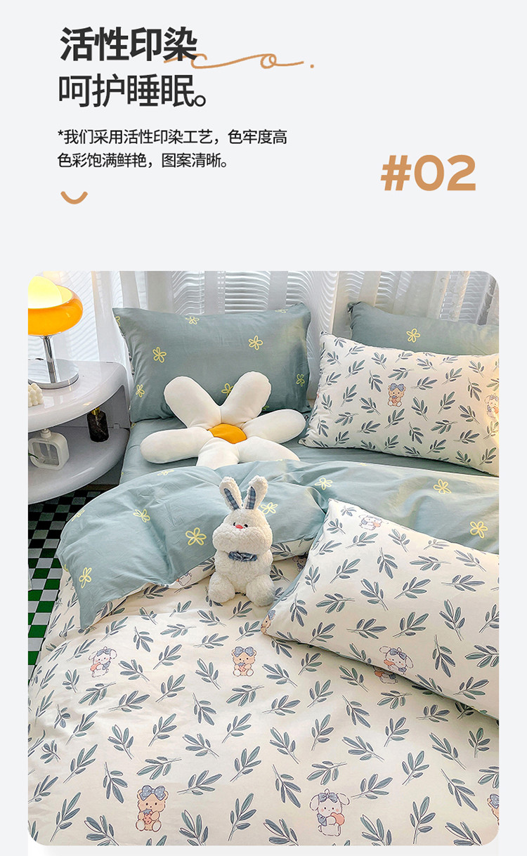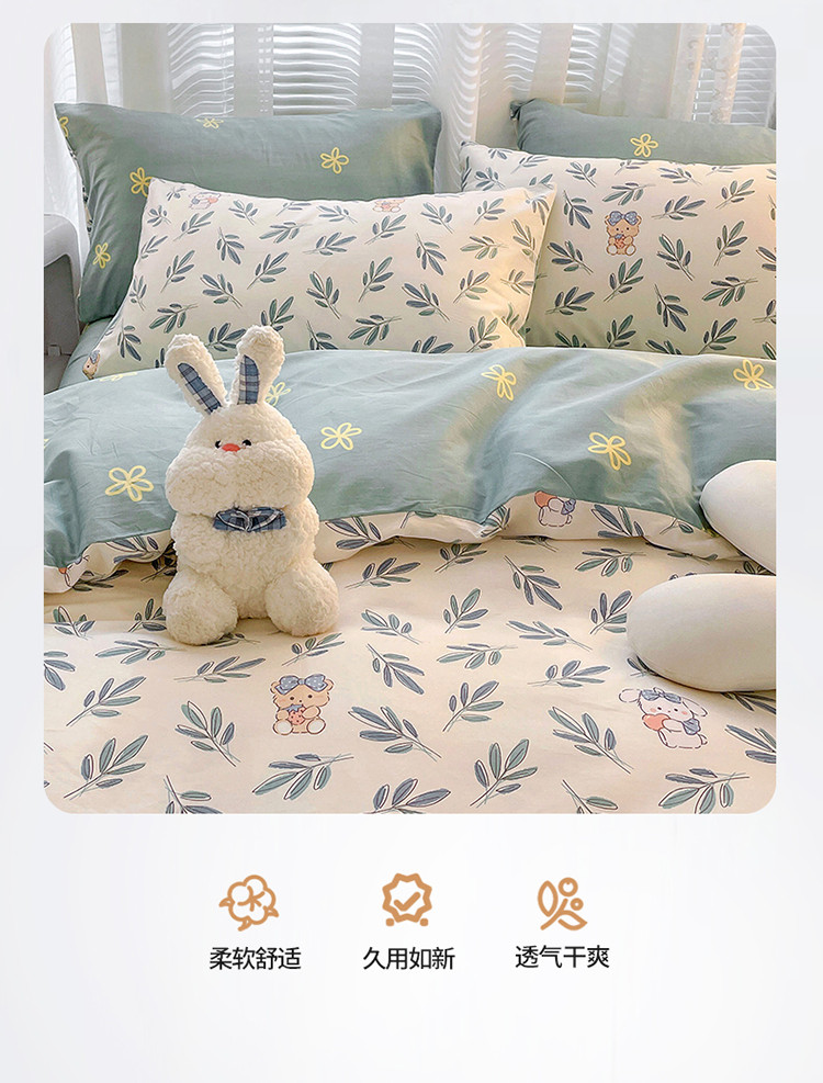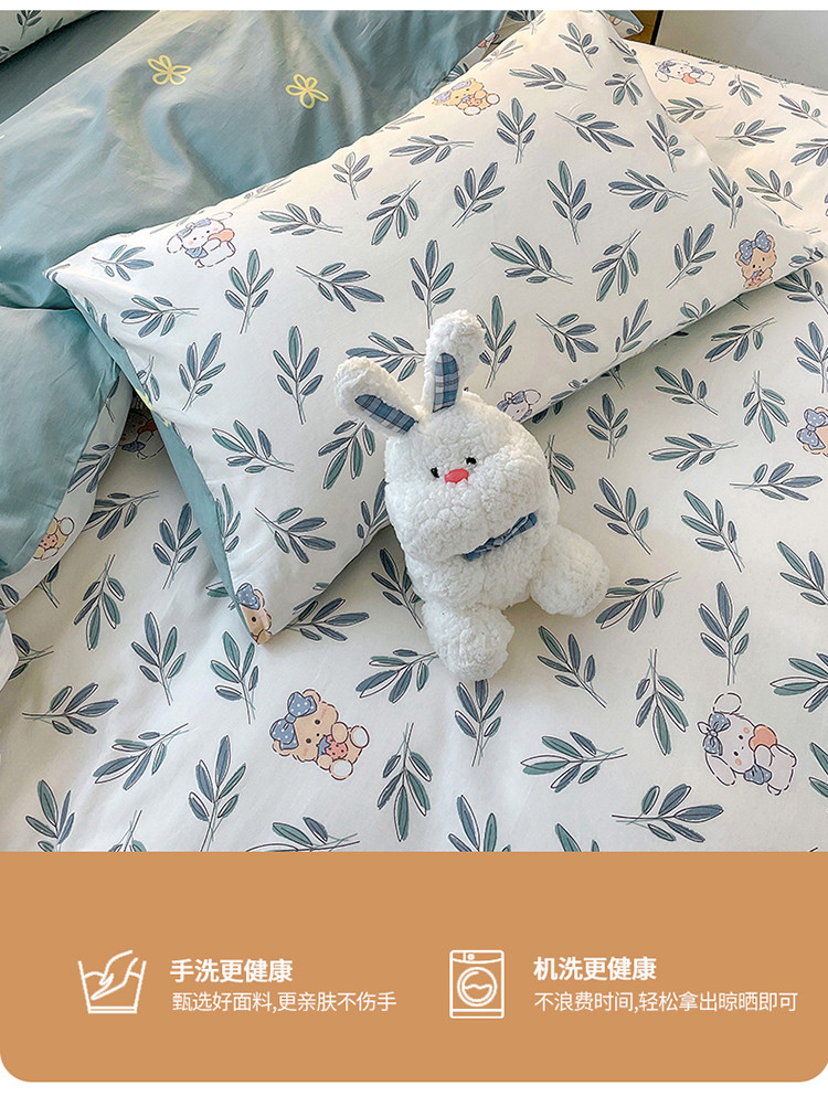 (总)名兮 2023新款全棉印花卡通风四件套,抱抱熊,波波熊,菲菲兔,机器小新,可爱萌宠,可爱兔