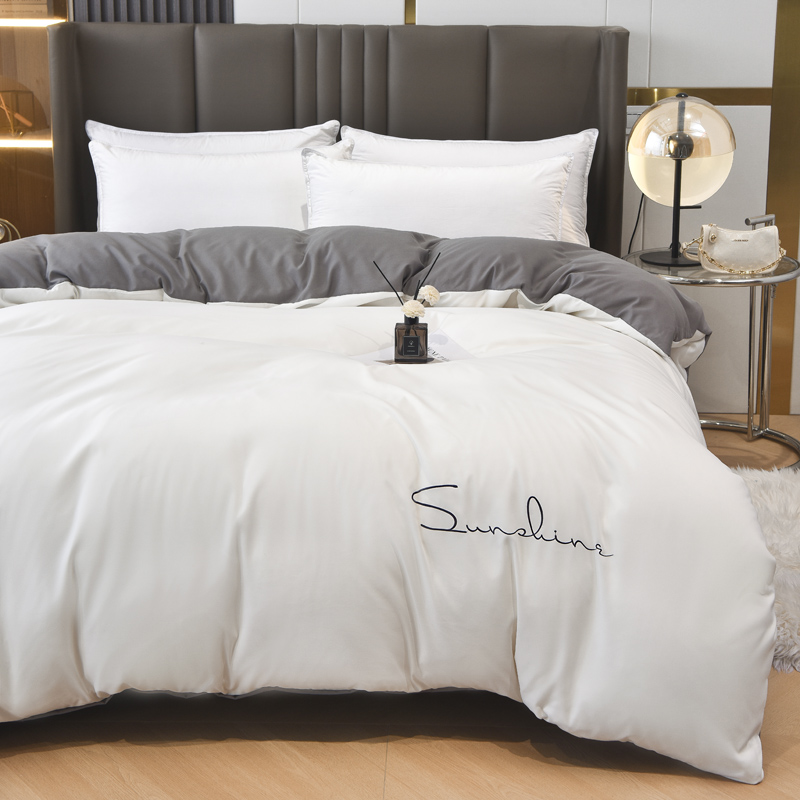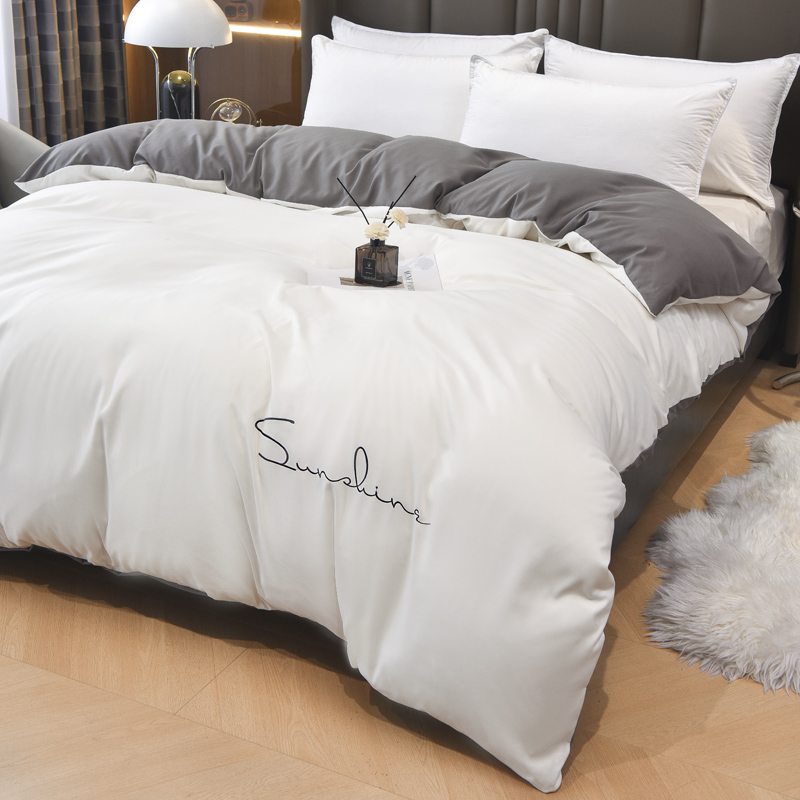 七仙女家纺 2025新款亲肤磨毛绣花款单被套直播供货 本白+浅灰