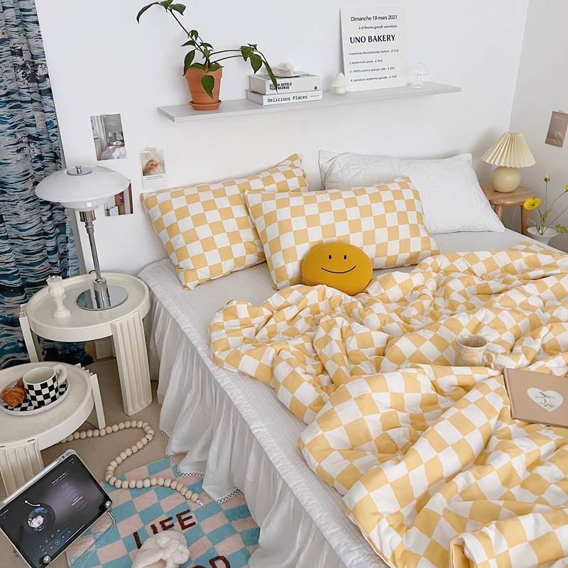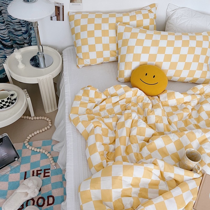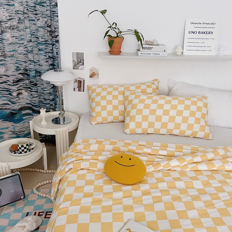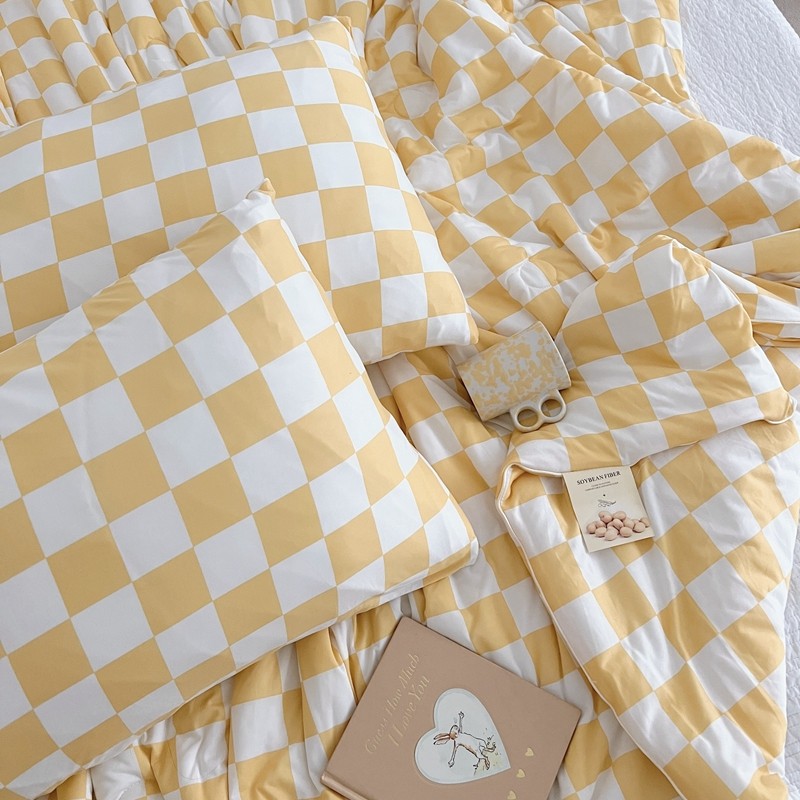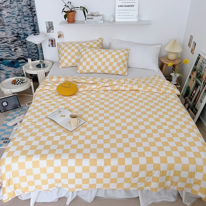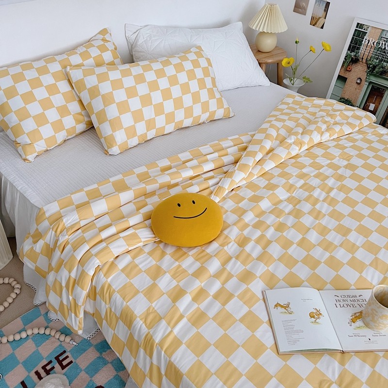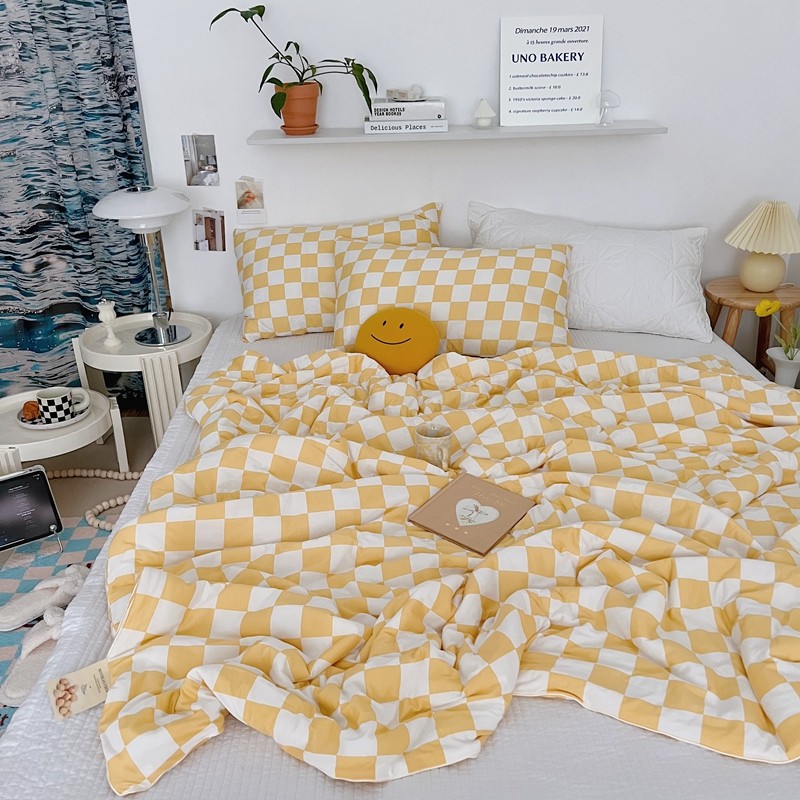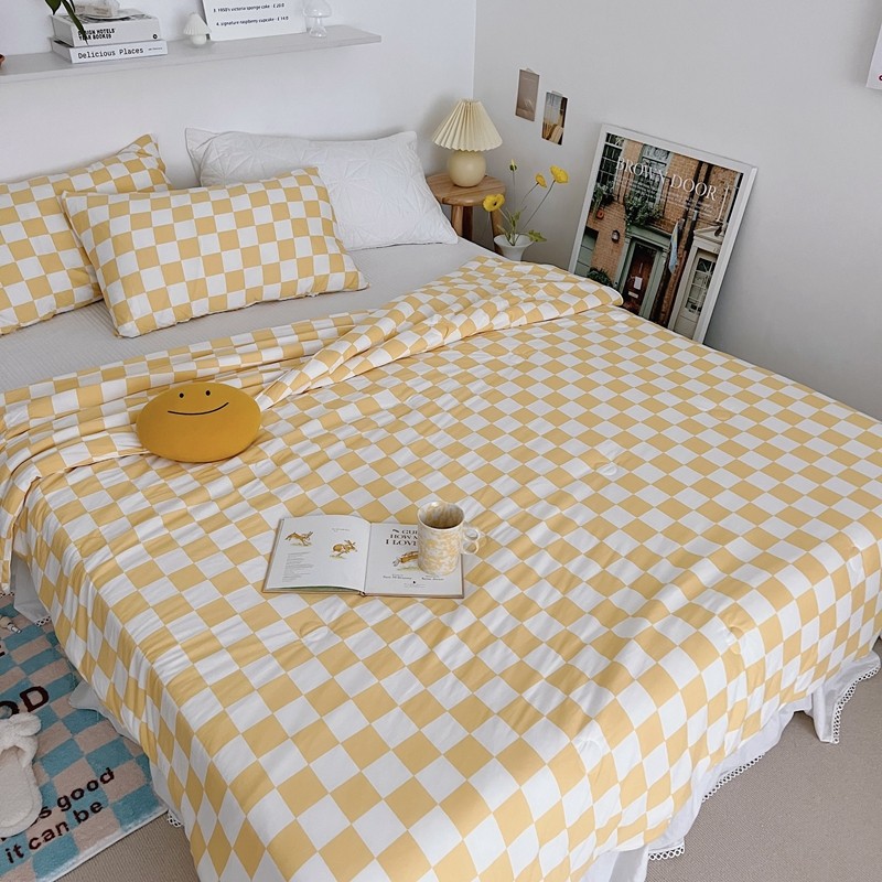 星期八 2022新款棋盘格针织棉夏被 黄格