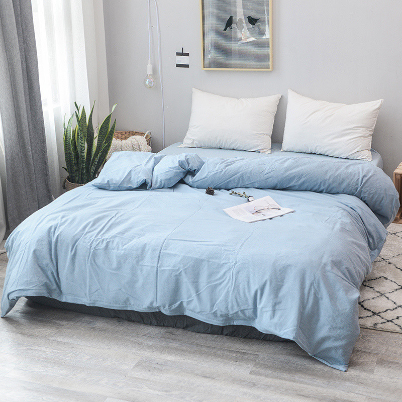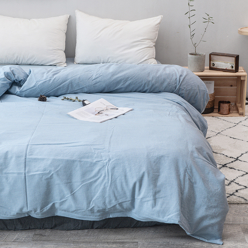 • 91家纺网 家纺一手货源 找家纺 柠萌家居 2022新款无印良品全棉色织水洗棉单被套 浅水蓝