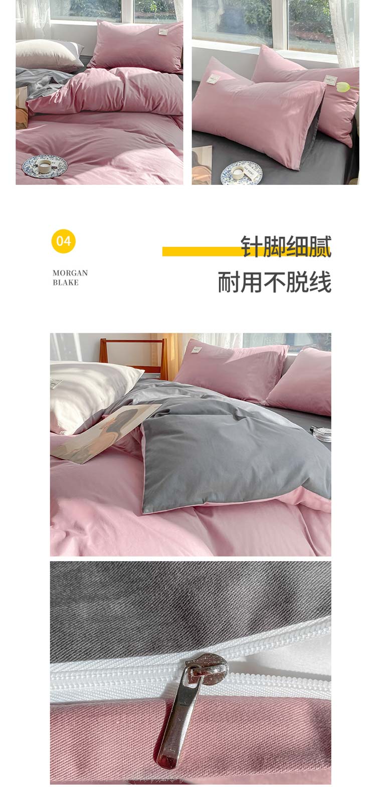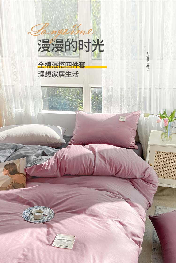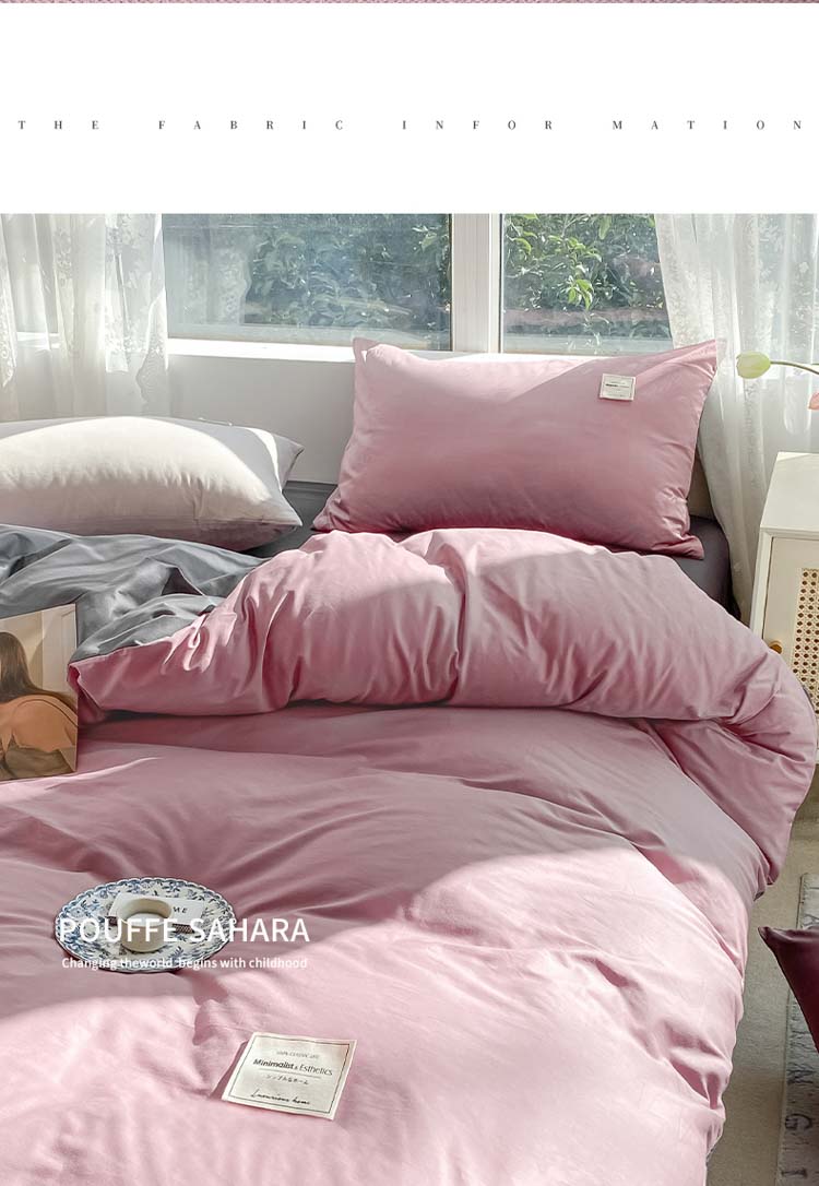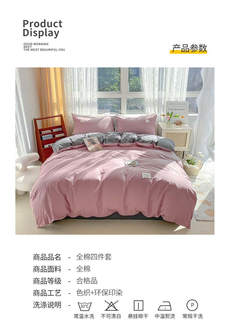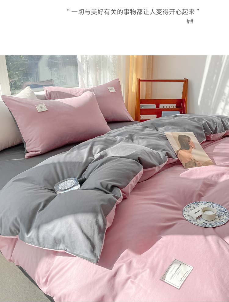 商品名称:秀色2025新款小清新40支水洗全棉纯色双拼四件套ins风 豆沙深灰
