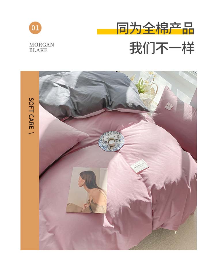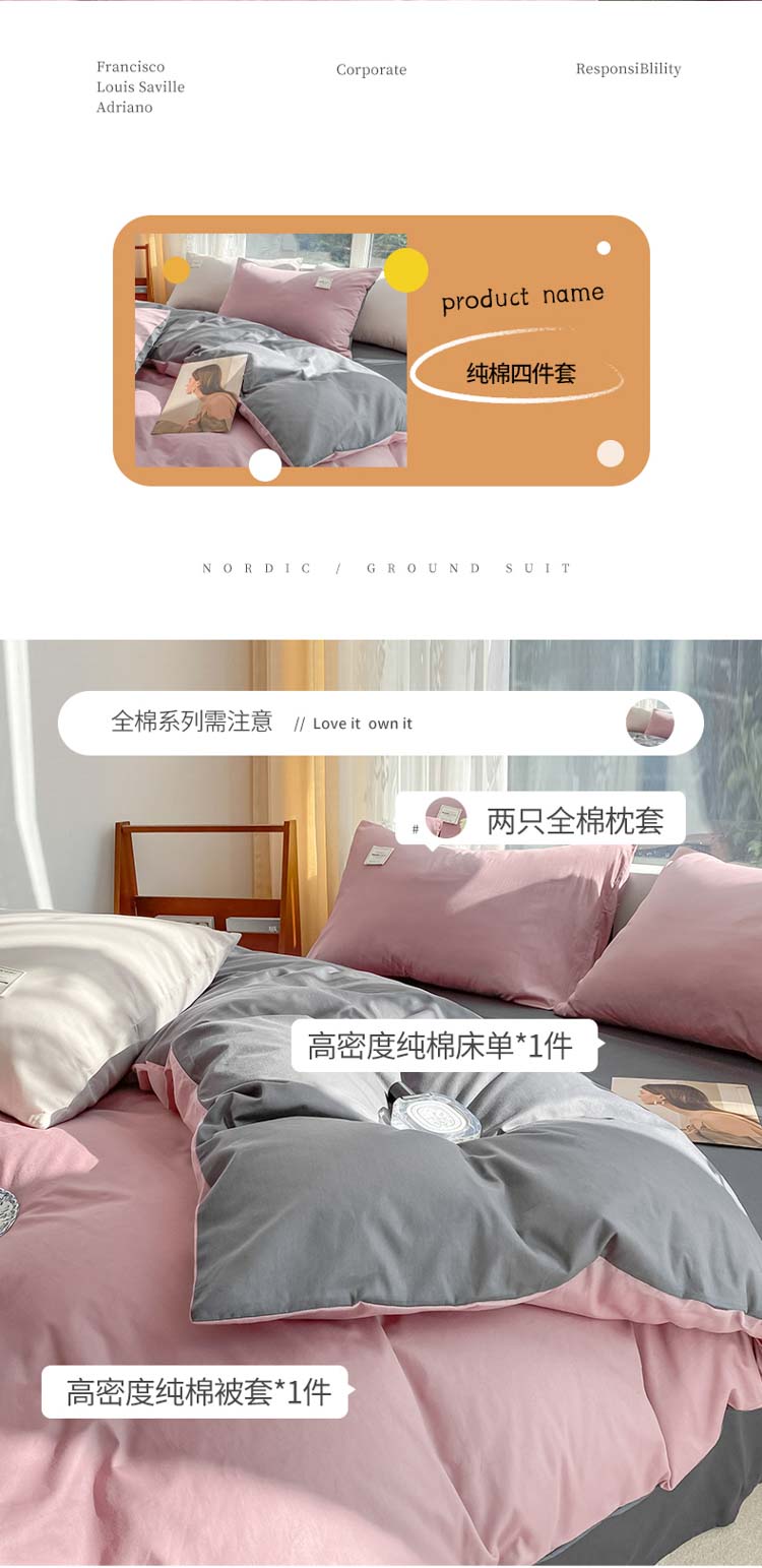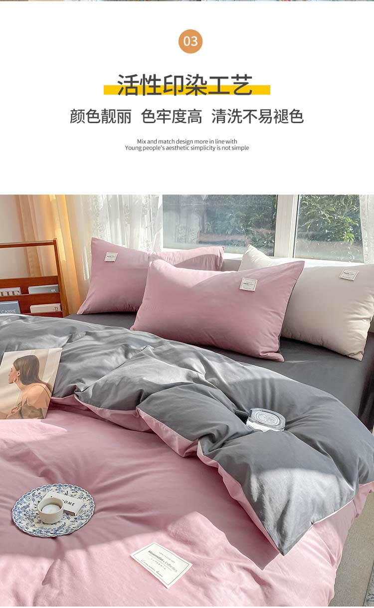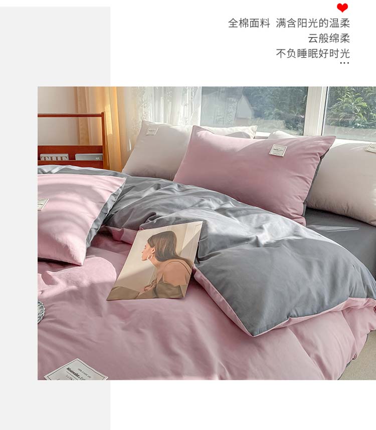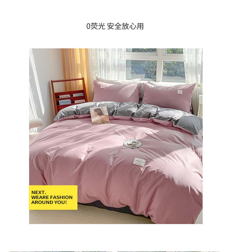 商品名称:秀色2025新款小清新40支水洗全棉纯色双拼四件套ins风 豆沙深灰