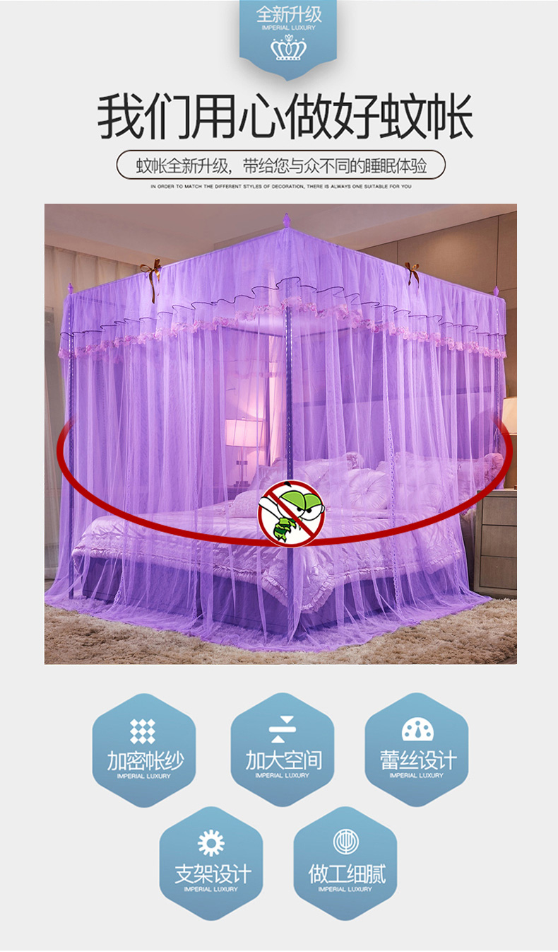 当前位置: 91家纺网 > 商品网购 > 床上用品 > 蚊帐 > 宫廷蚊帐 > 初心 2025新款落地宫廷蚊帐-粉黛佳人紫色